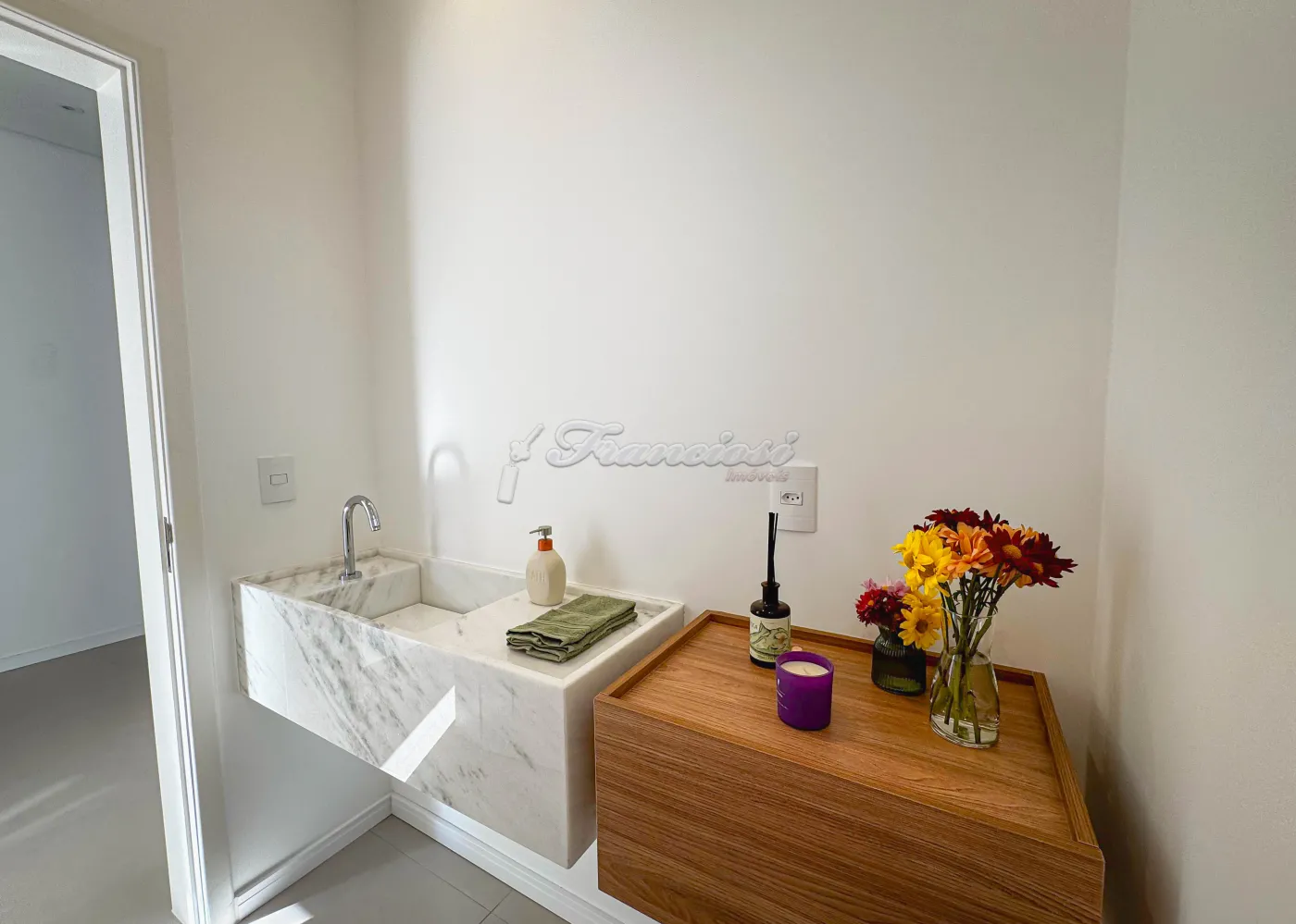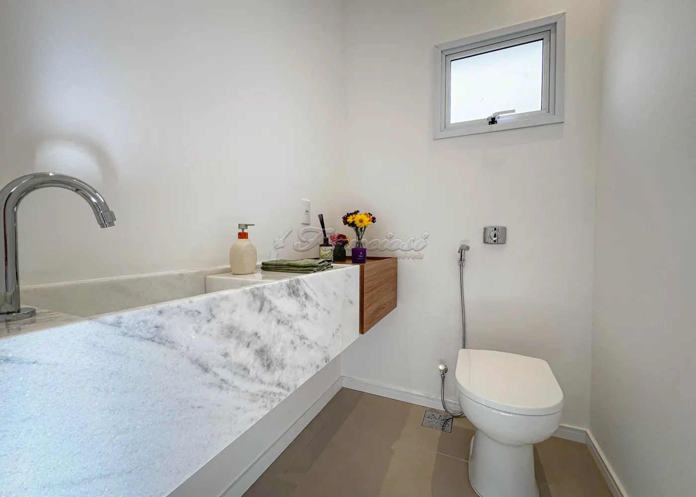 Ao lado da cozinha, encontra-se uma churrasqueira. O lavabo possui pia esculpida e marcenaria planejada. A lavanderia está preparada para acomodar 02 máquinas, e há ainda banheiro externo para atender à área da piscina, além de depósito.