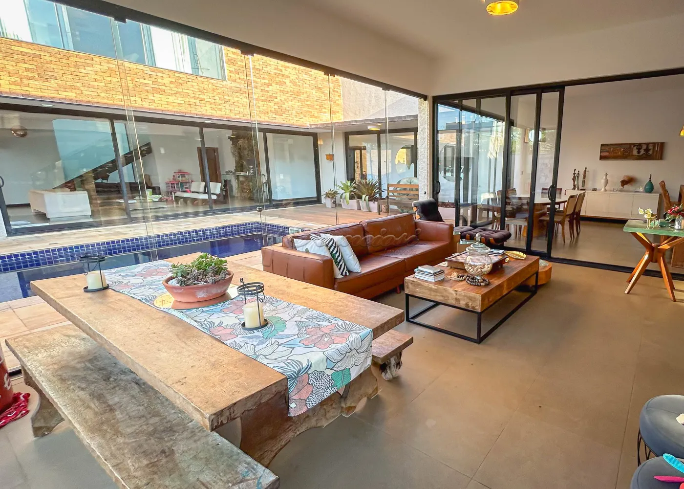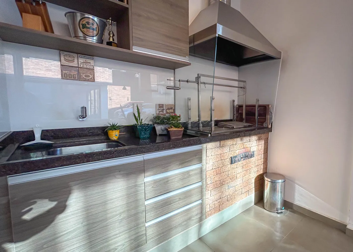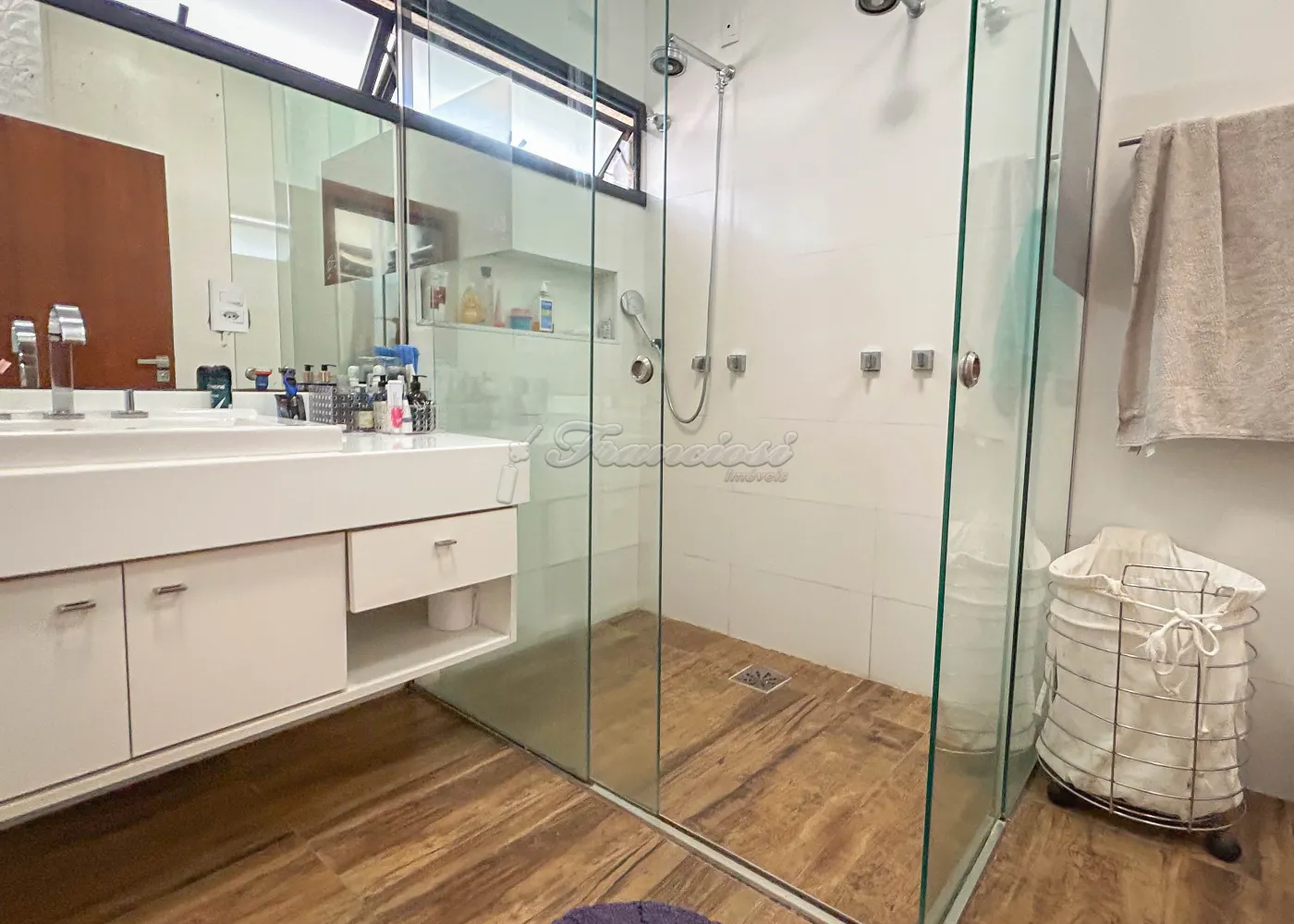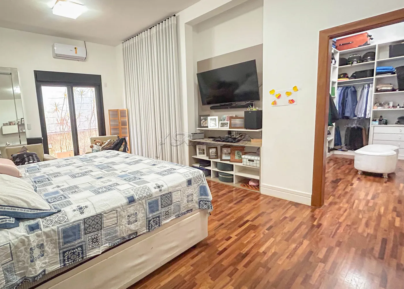 Possui 4 dormitórios sendo 1 suíte master, com closet e hidro, 2 dormitórios são suíte americana, 2 chuveiros, lavabo, sala de estar toda de vidro, sala de jantar, cozinha planejada, área gourmet com churrasqueira, piscina preparada para receber aquecimento solar, hidro com aquecimento a gás, sauna, despensa, lavanderia, dependência de empregada, 1 banheiro social, 1 banheiro externo, 1 home na parte superior com banheiro, sala de jogos, garagem para 2 carros.