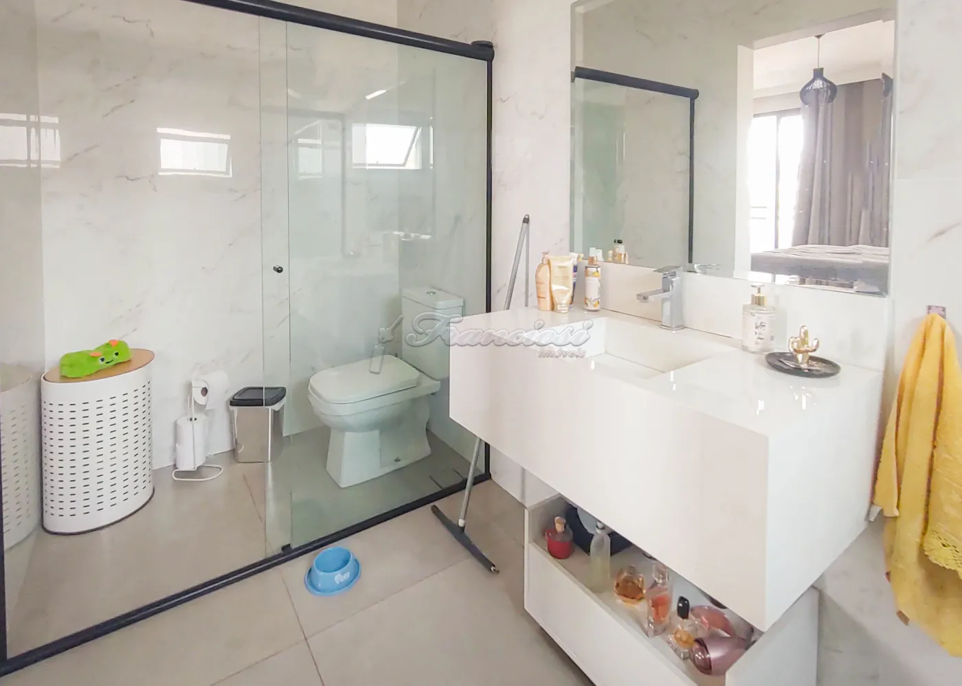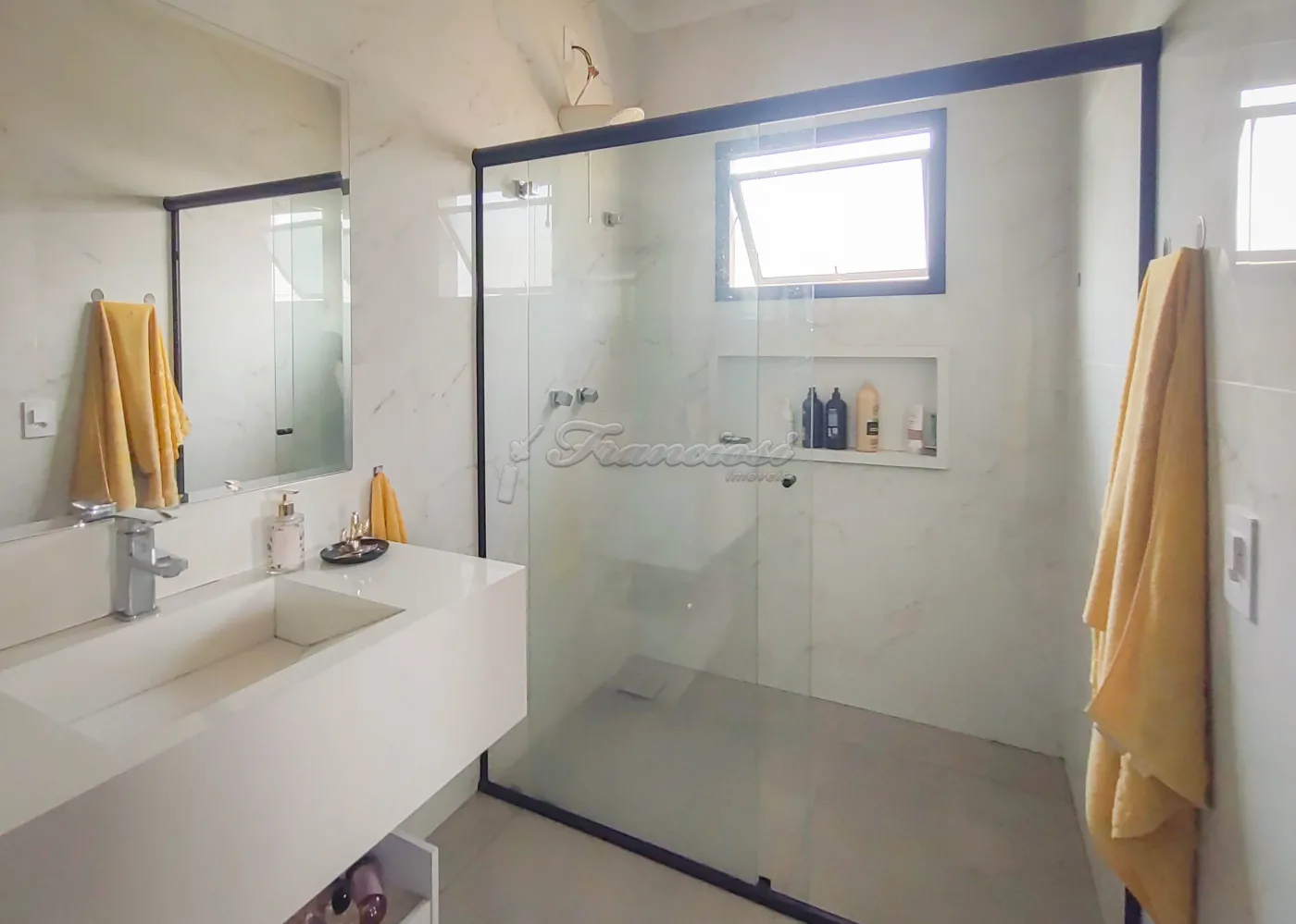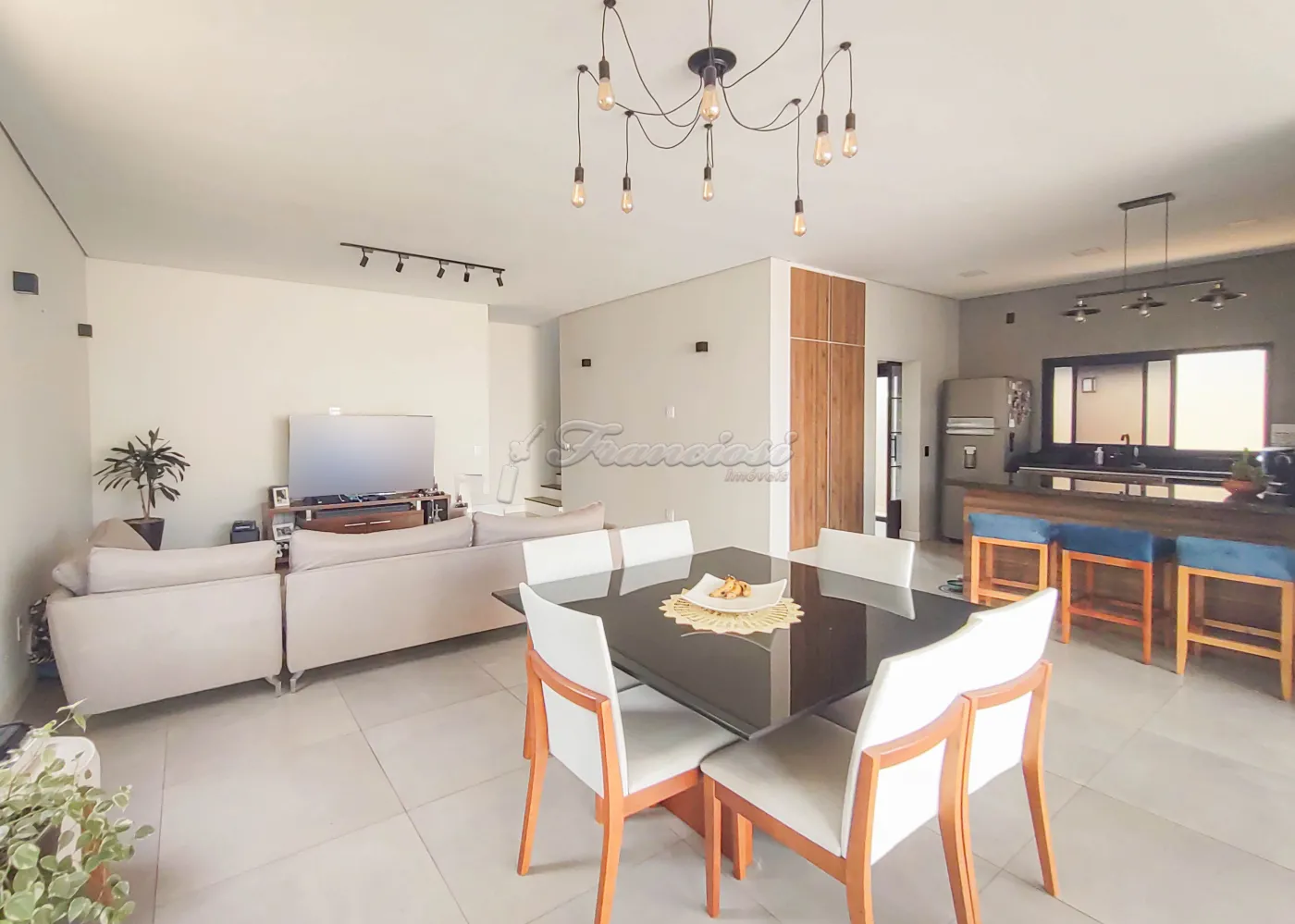 Sobrado localizado no Residencial Spazio Verde, composto por 03 dormitórios, sendo 02 suítes com closet e varanda em todos os dormitórios. O piso inferior oferece lavabo, sala de estar e jantar integradas, cozinha modulada, lavanderia e espaço para despejo. A área externa conta com piscina aquecida por sistema solar, banheiro, vestiário, torneiras elétricas e garagem para 02 veículos.