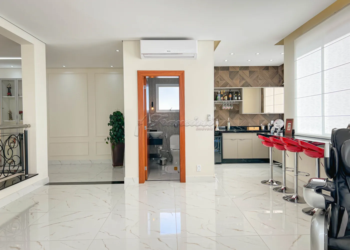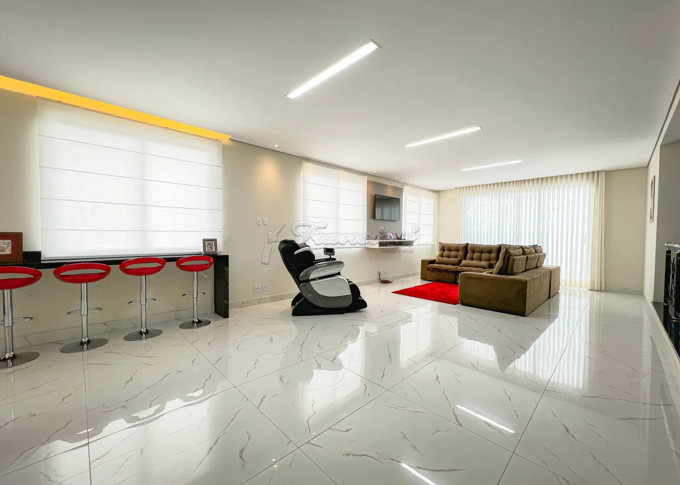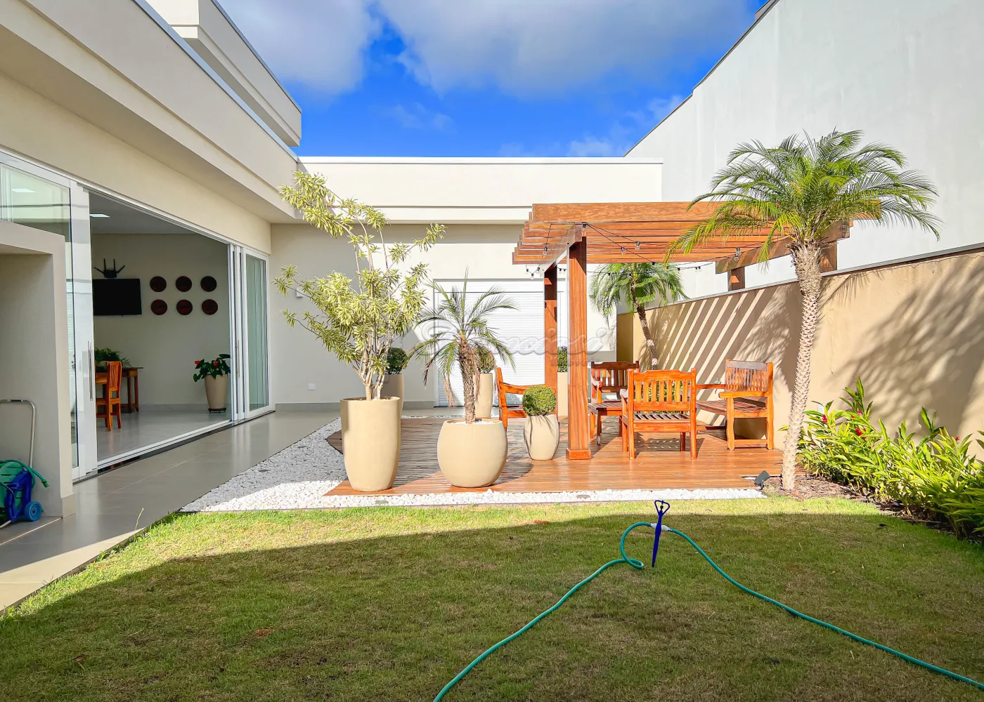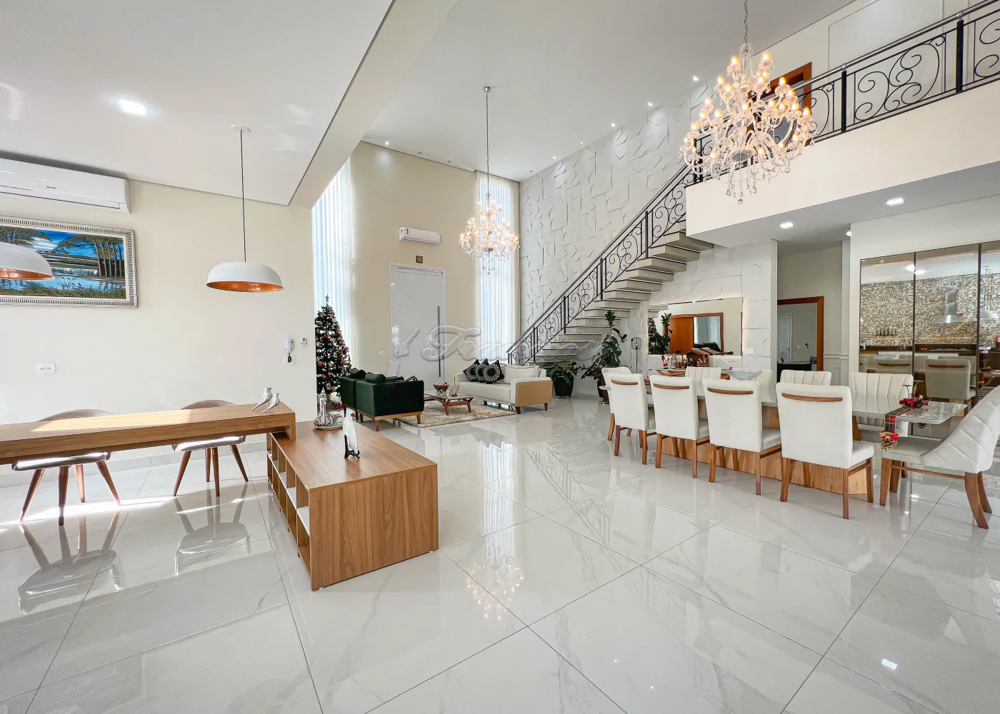 Imóvel localizado no Spazio Verde II, com 02 suítes na parte superior, sendo 01 suíte master com varanda, mezanino, lavabo, bar e sala de jogos. Na parte inferior conta 03 suítes com closet, hall, salas de estar, TV e jantar, cozinha, despensa, lavabo, roupeiro, lavanderia, área gourmet, quintal com jardim e garagem para 03 veículos.