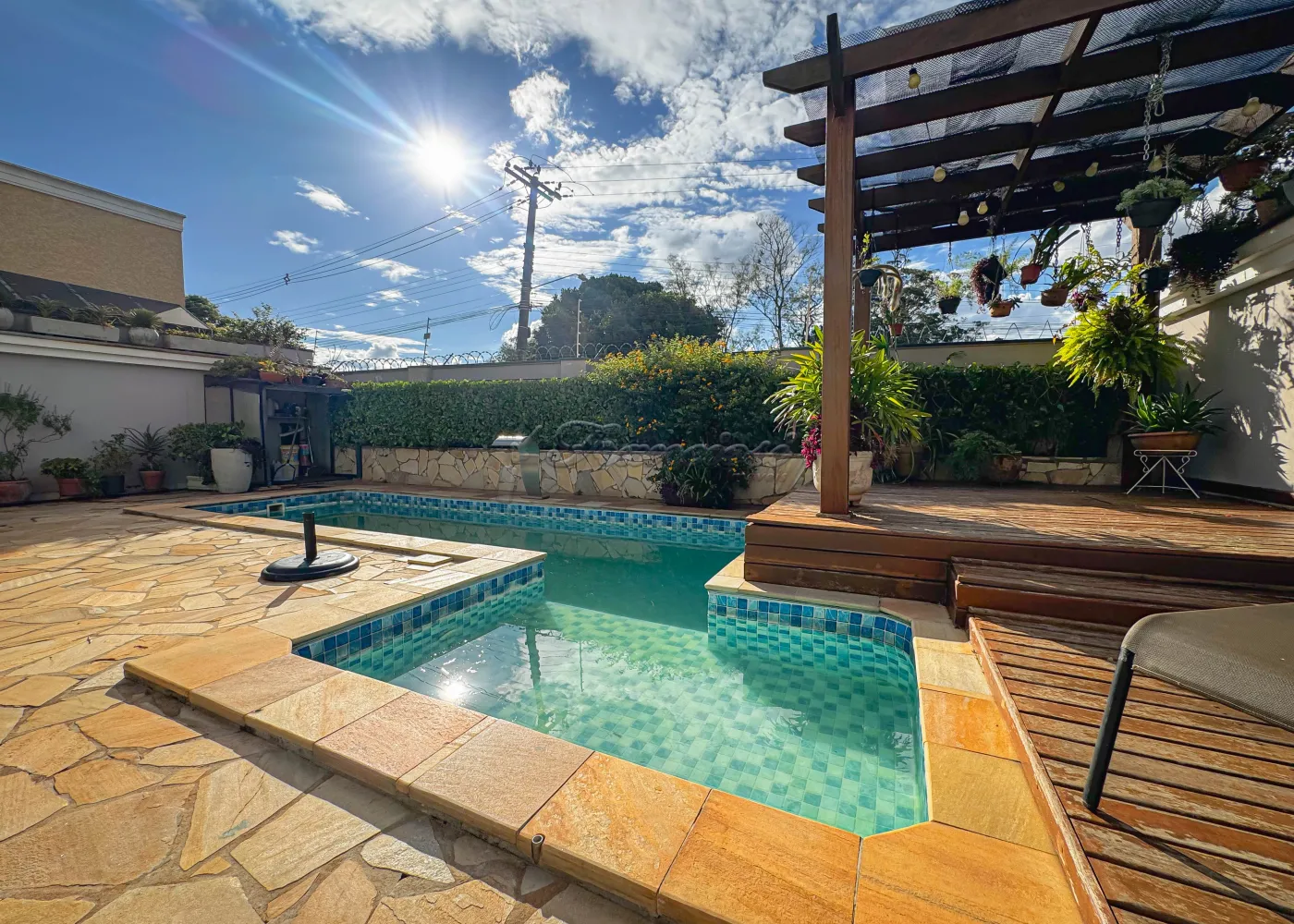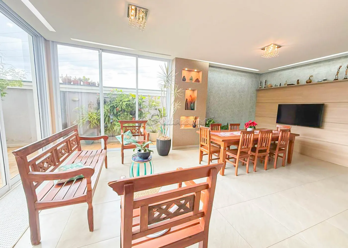 Imóvel localizado no Spazio Verde I, com 03 suítes, sendo 01 delas com amplo closet e hidromassagem, sala de estar, sala de TV, escritório, cozinha espaçosa e equipada, lavabo, lavanderia, além de uma área gourmet completa com churrasqueira, piscina, pergolado e garagem para 04 veículos.