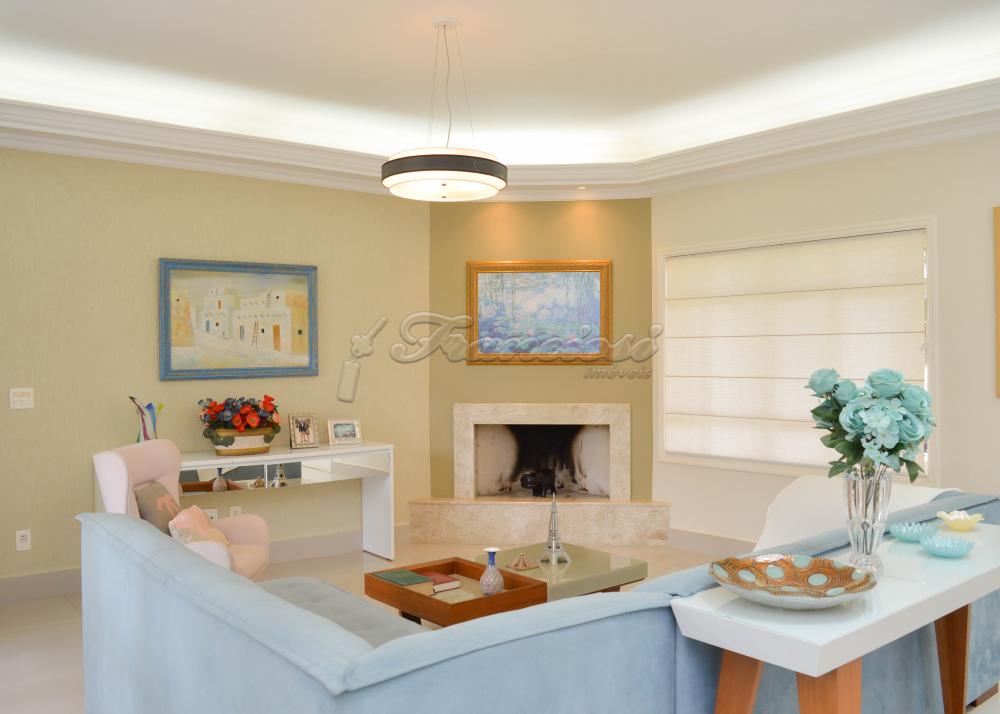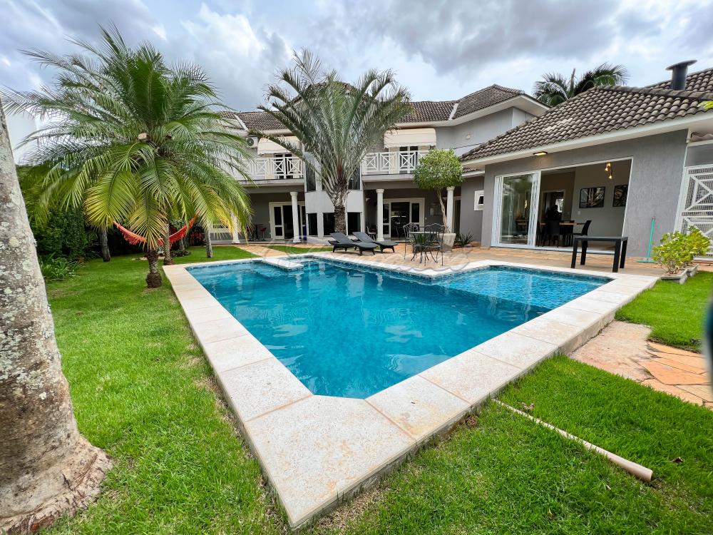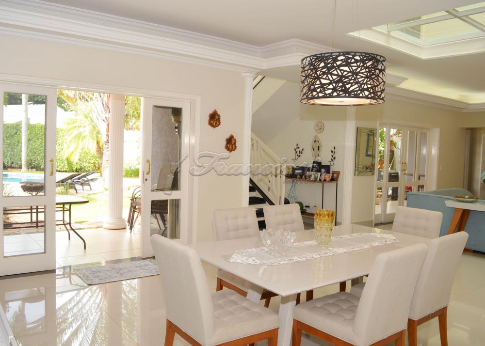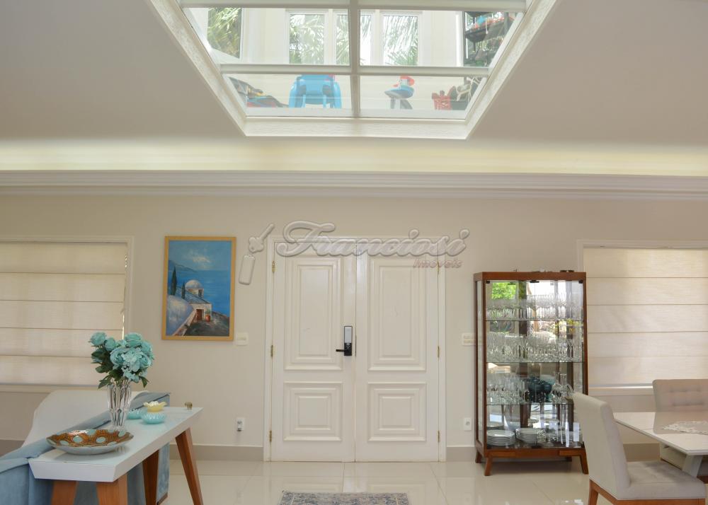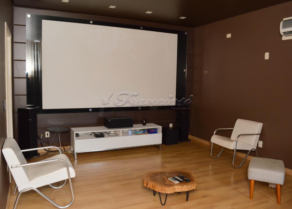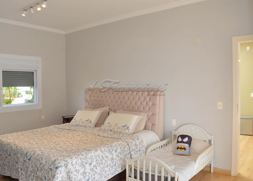 Casa com 4 dormitórios sendo 2 suítes, 1 master com closet e varanda, todos com ar condicionado e cortinas elétricas, sala ampla com lareira e tedo de vidro, cozinha planejada, lavabo, 1 banheiro social, 2 varandas térreas, lavanderia com 1 banheiro, coradouro, hall com piso de vidro, sala de cinema full hd com tela de 150" com ar condicionado, cortina elétrica, som embutidos no teto e parede, piscina com aquecimento solar, área gourmet e garagem para 6 carros, sendo 4 cobertas.