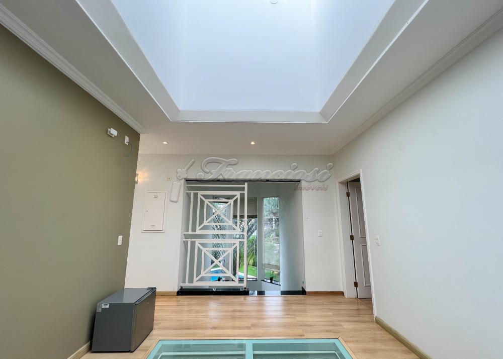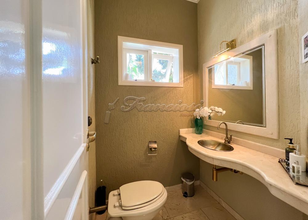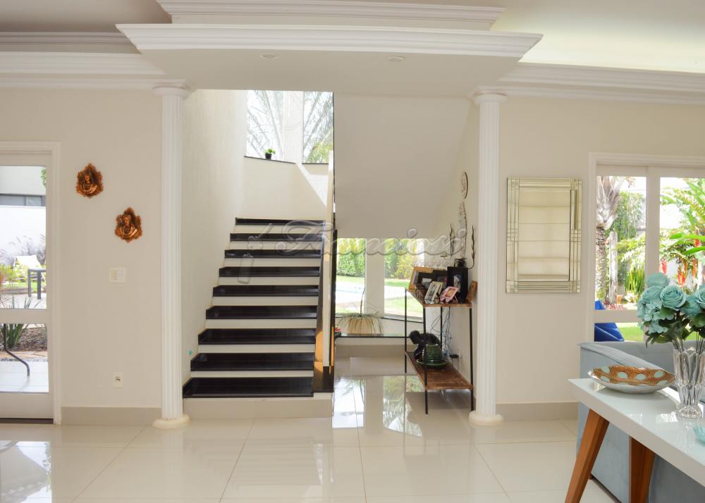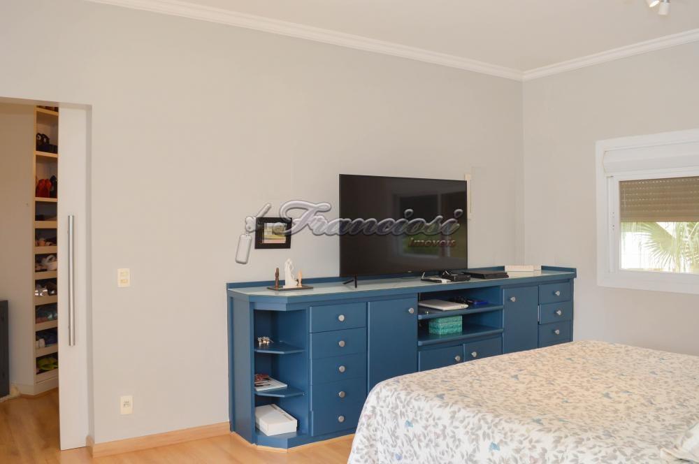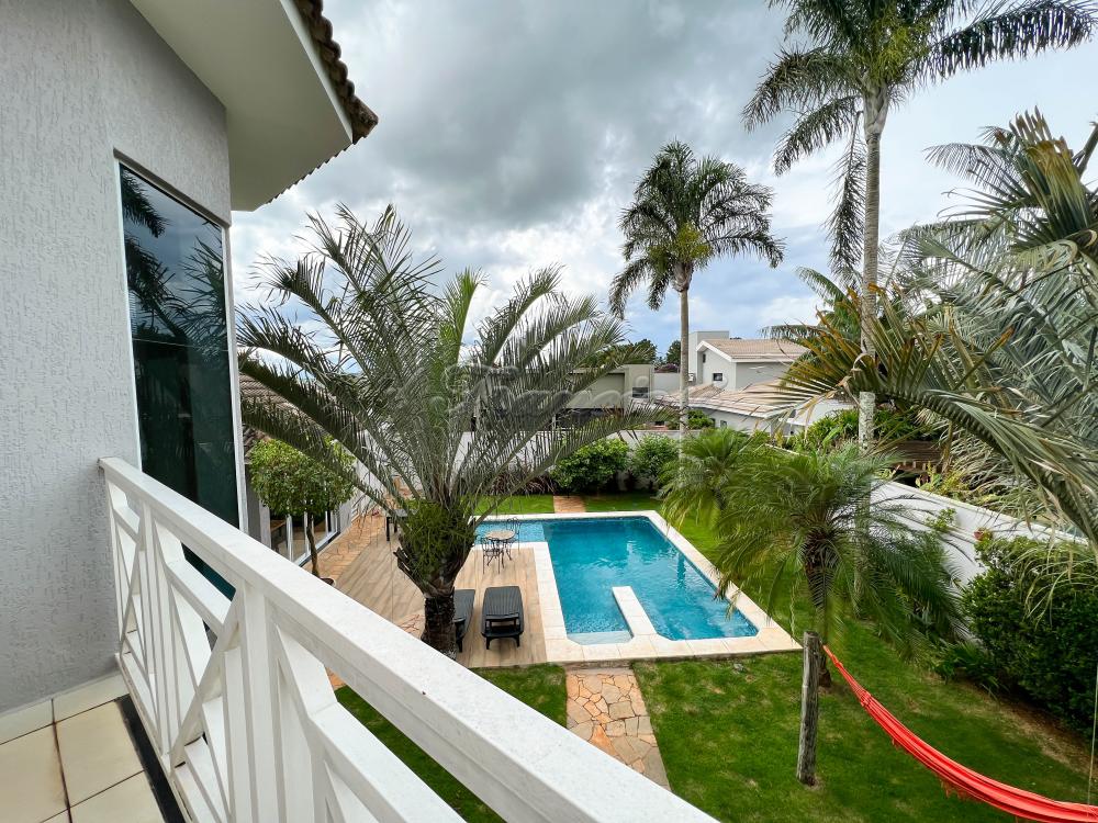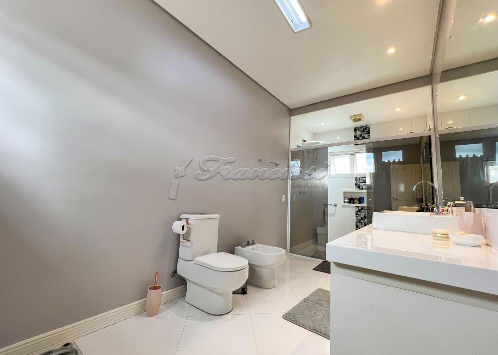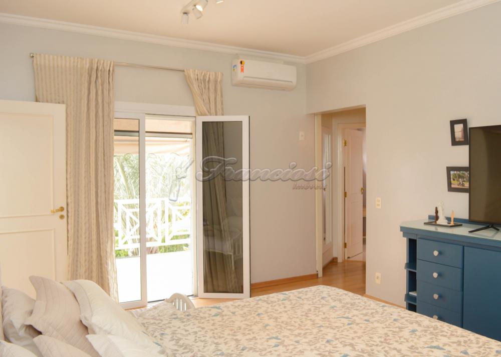 Casa com 4 dormitórios sendo 2 suítes, 1 master com closet e varanda, todos com ar condicionado e cortinas elétricas, sala ampla com lareira e tedo de vidro, cozinha planejada, lavabo, 1 banheiro social, 2 varandas térreas, lavanderia com 1 banheiro, coradouro, hall com piso de vidro, sala de cinema full hd com tela de 150" com ar condicionado, cortina elétrica, som embutidos no teto e parede, piscina com aquecimento solar, área gourmet e garagem para 6 carros, sendo 4 cobertas.