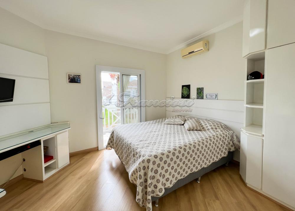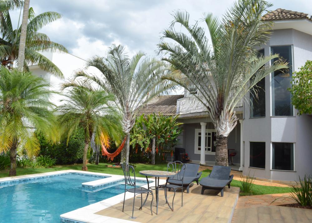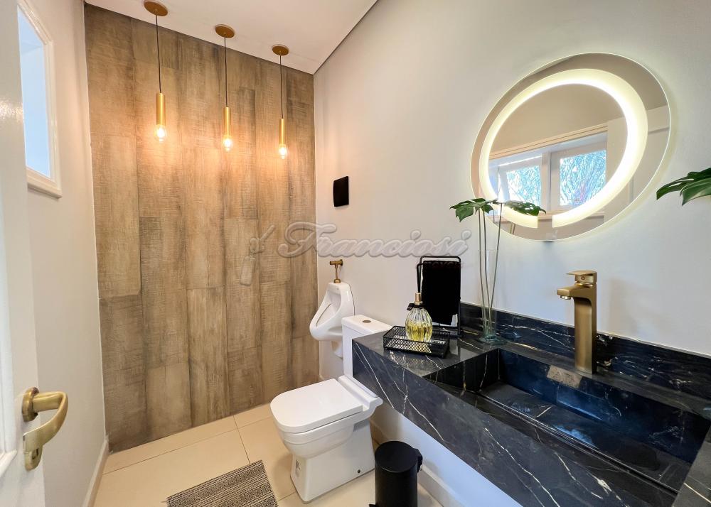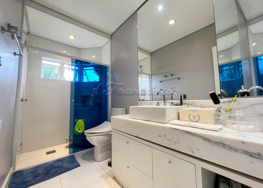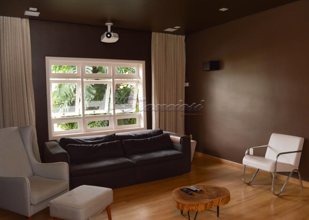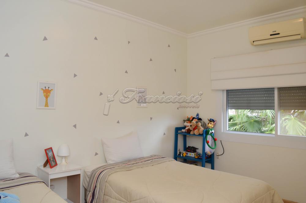Casa com 4 dormitórios sendo 2 suítes, 1 master com closet e varanda, todos com ar condicionado e cortinas elétricas, sala ampla com lareira e tedo de vidro, cozinha planejada, lavabo, 1 banheiro social, 2 varandas térreas, lavanderia com 1 banheiro, coradouro, hall com piso de vidro, sala de cinema full hd com tela de 150" com ar condicionado, cortina elétrica, som embutidos no teto e parede, piscina com aquecimento solar, área gourmet e garagem para 6 carros, sendo 4 cobertas.