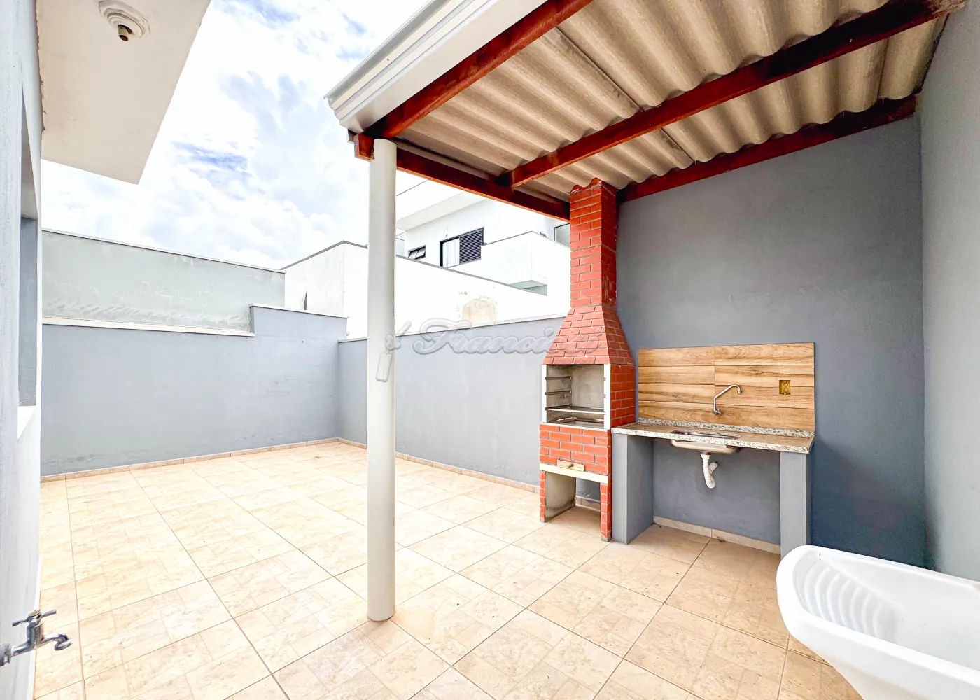 Este imóvel em condomínio apresenta dois dormitórios, sala, cozinha, dois banheiros, área gourmet com churrasqueira, área de serviço e garagem para 01 veículo.