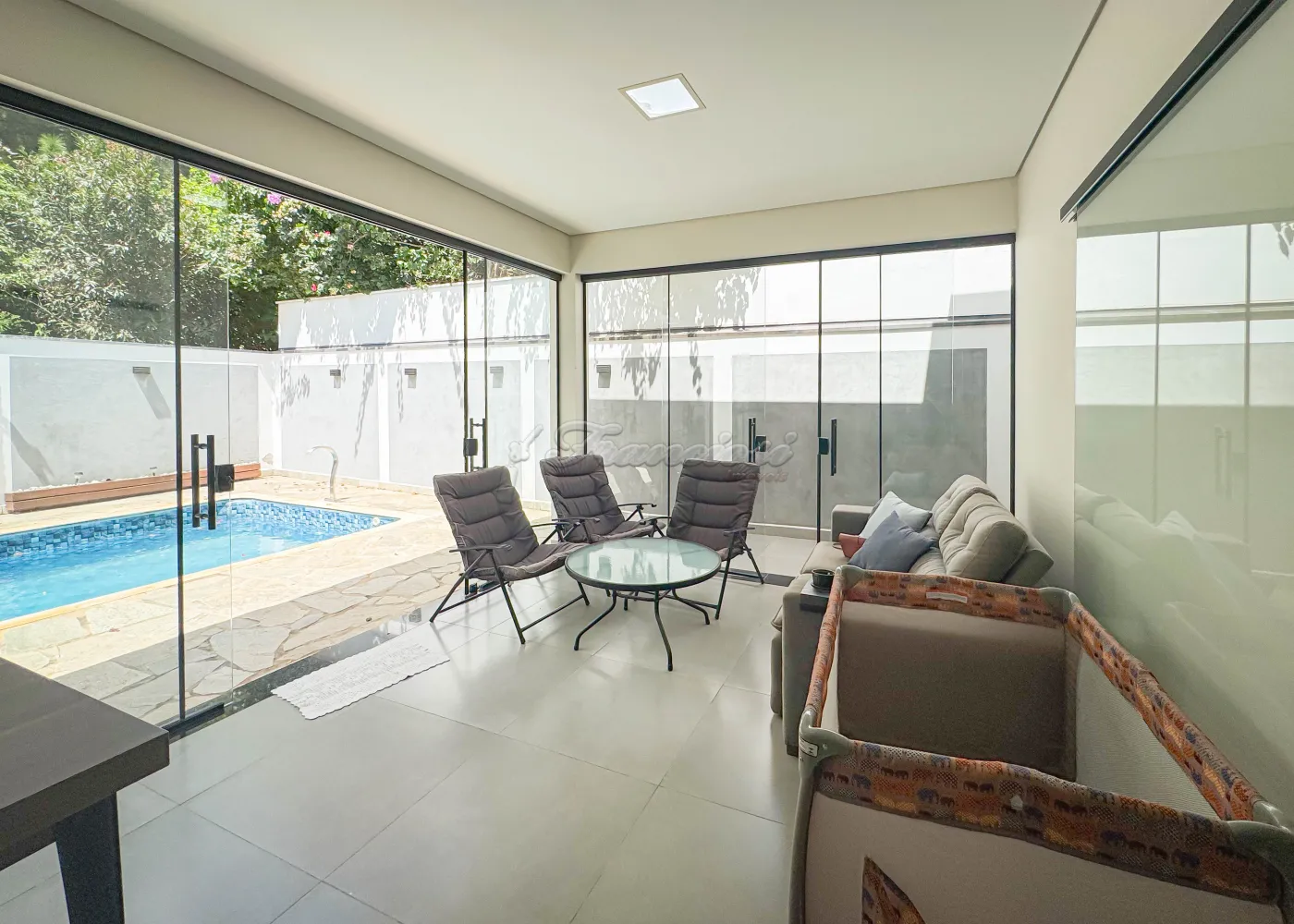 Imóvel no Residencial Ouroville, composto por 3 suítes com roupeiro, sala de estar, sala de jantar, cozinha totalmente equipada, lavabo, banheiro social, lavanderia, área gourmet e piscina aquecida e garagem 02 veículos.