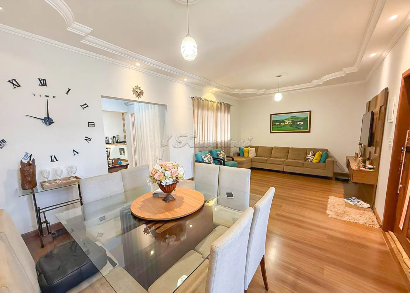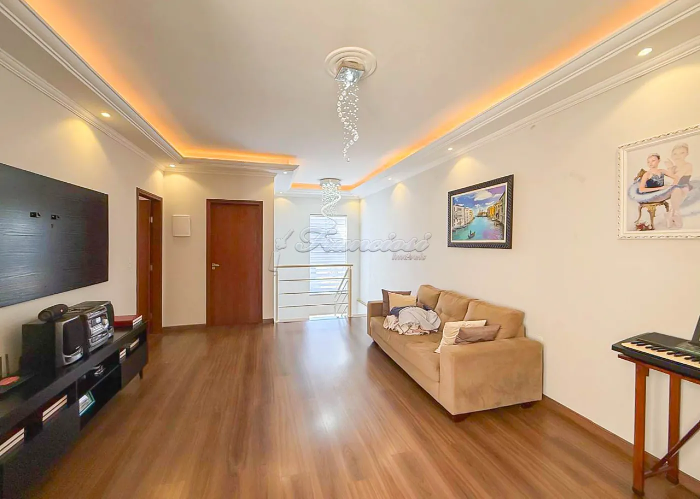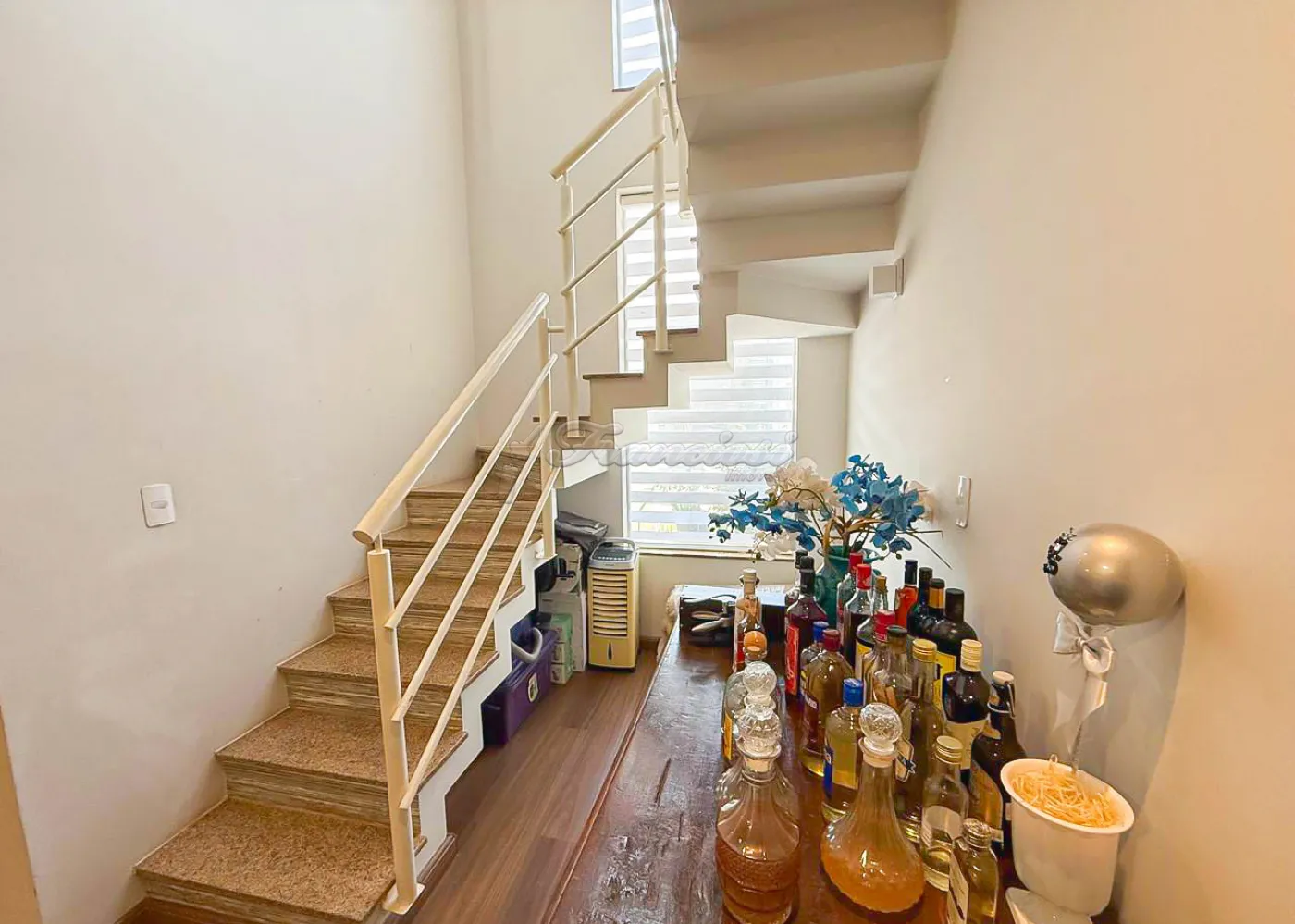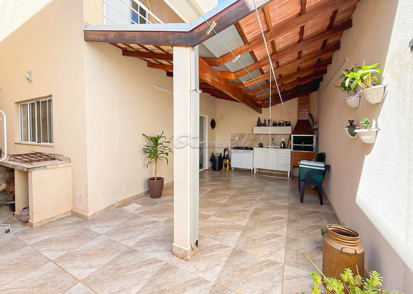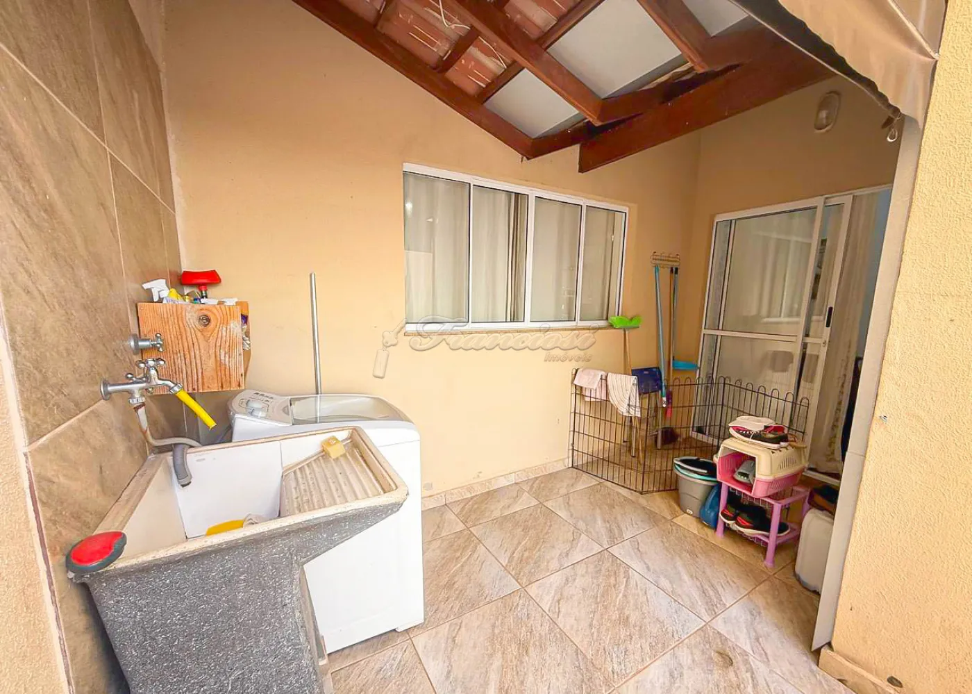 Sobrado em condomínio com 03 dormitórios, sendo 01 suíte com closet, sala de TV, sala de estar, cozinha, banheiro social, área gourmet com churrasqueira, quintal, lavanderia e garagem coberta para 2 veículos.