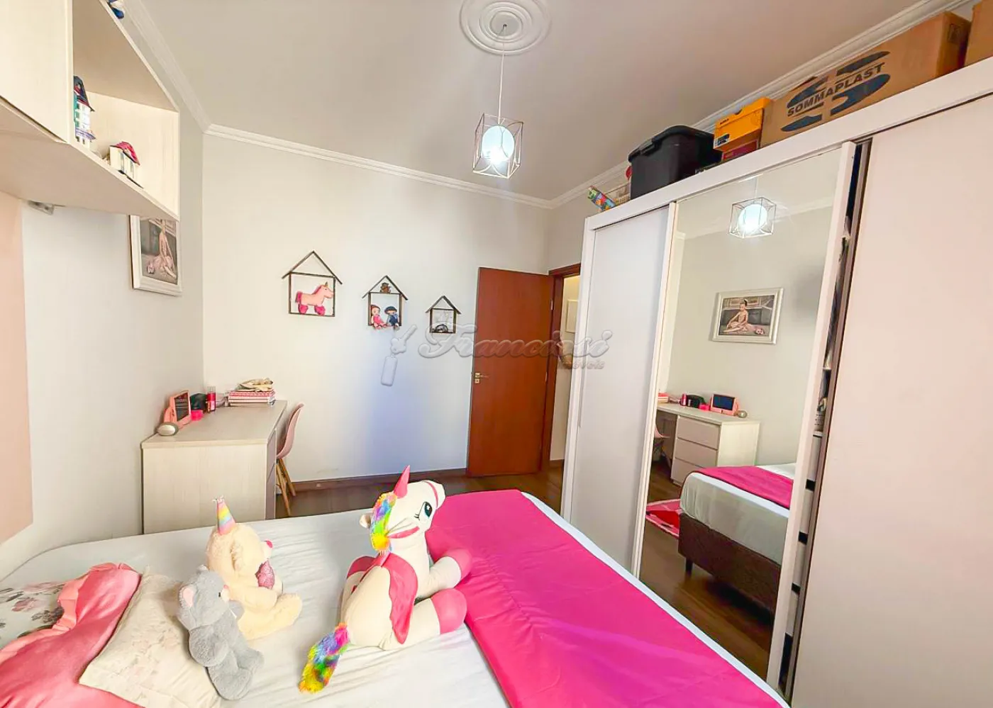 Acabamento: laje e piso laminado.