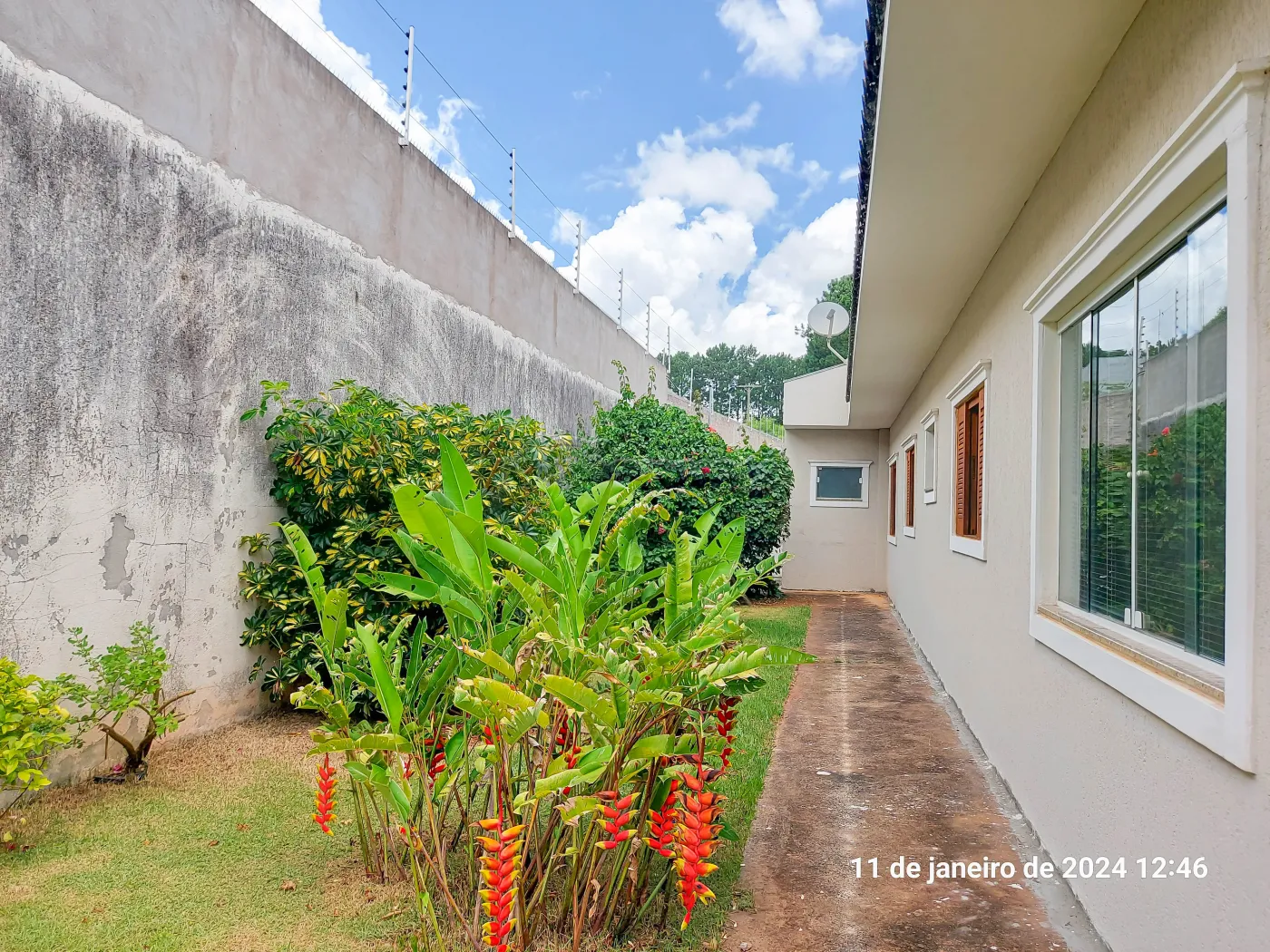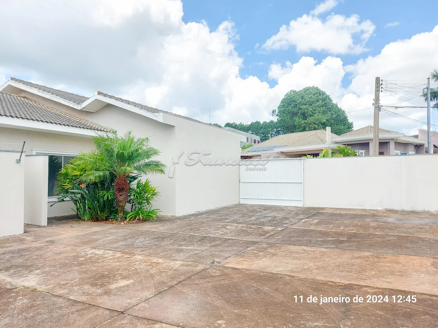 O imóvel conta com 3 dormitórios sendo 1 suíte, sala de estar, sala de tv, copa, cozinha modulada com fogão, 1 banheiro social com box blindex, escritório, varanda, quintal amplo com grama e árvores, área de lazer com churrasqueira e 1 banheiro, garagem coberta para 2 carros e entrada para vários carros.