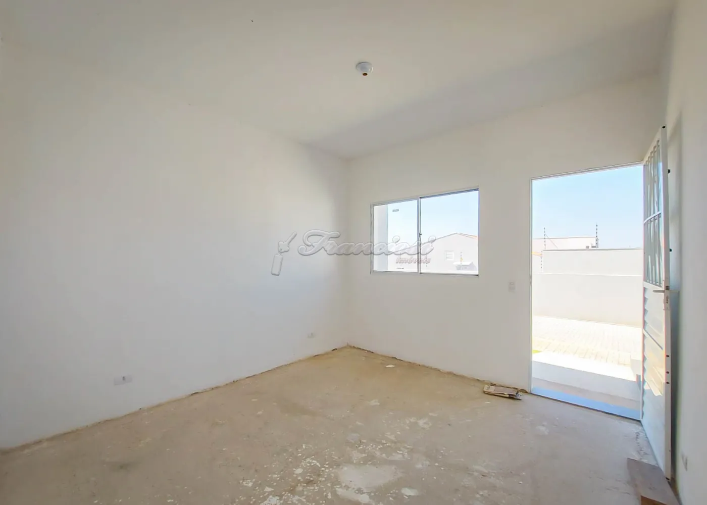 Sobrado novo situado no Residencial Aranca, com 02 dormitórios no piso superior, sendo 01 com varanda. No térreo, sala de estar, cozinha, banheiro com ventilação e iluminação natural por claraboia, lavanderia coberta e garagem para 01 veículo. Acabamento com corrimão na escada, claraboia em vidro e piso frio à escolha do comprador.
