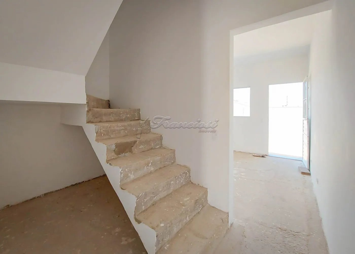 Sobrado novo situado no Residencial Aranca, com 02 dormitórios no piso superior, sendo 01 com varanda. No térreo, sala de estar, cozinha, banheiro com ventilação e iluminação natural por claraboia, lavanderia coberta e garagem para 01 veículo. Acabamento com corrimão na escada, claraboia em vidro e piso frio à escolha do comprador.
