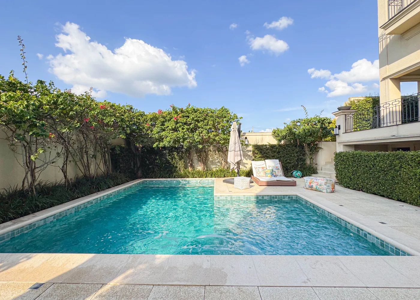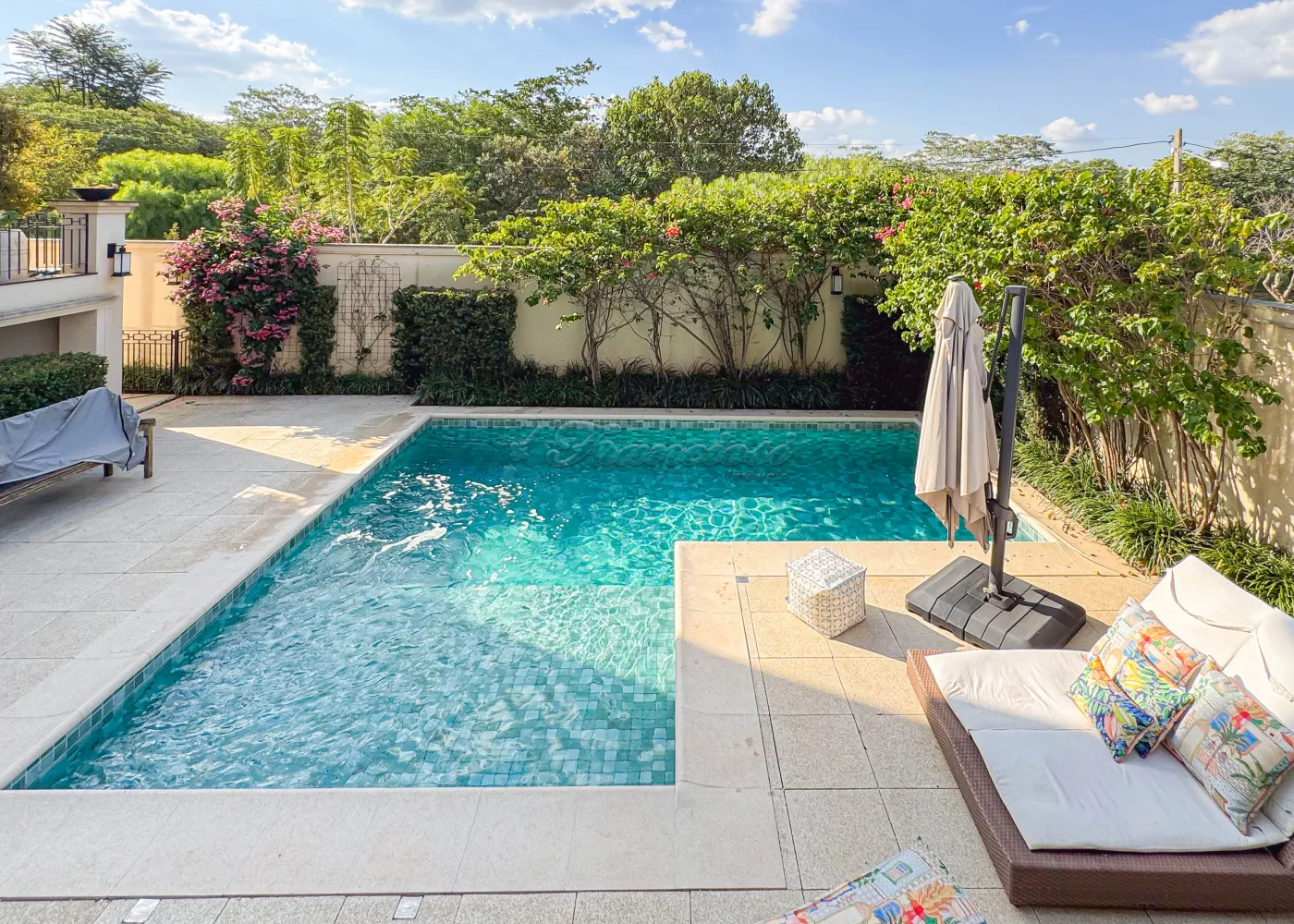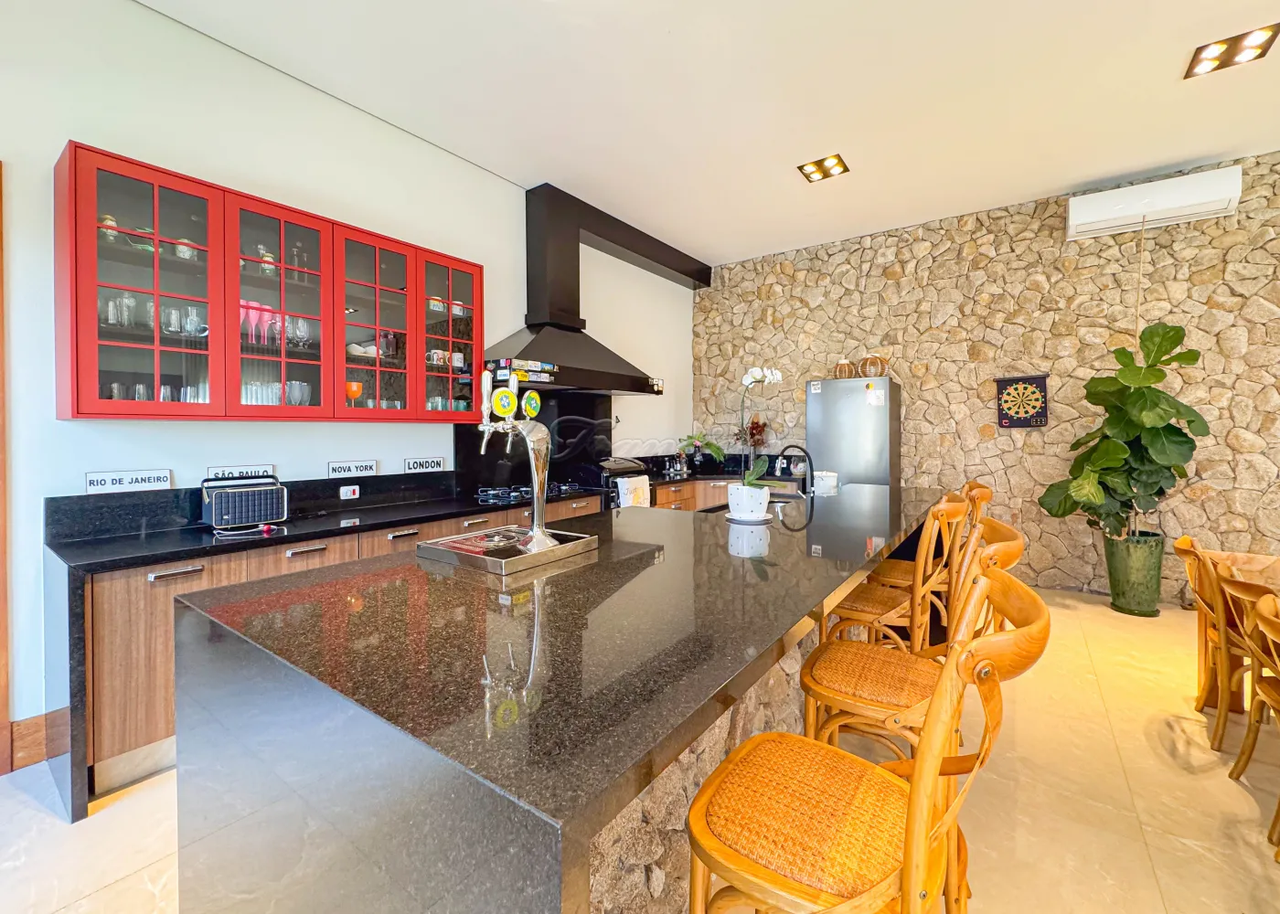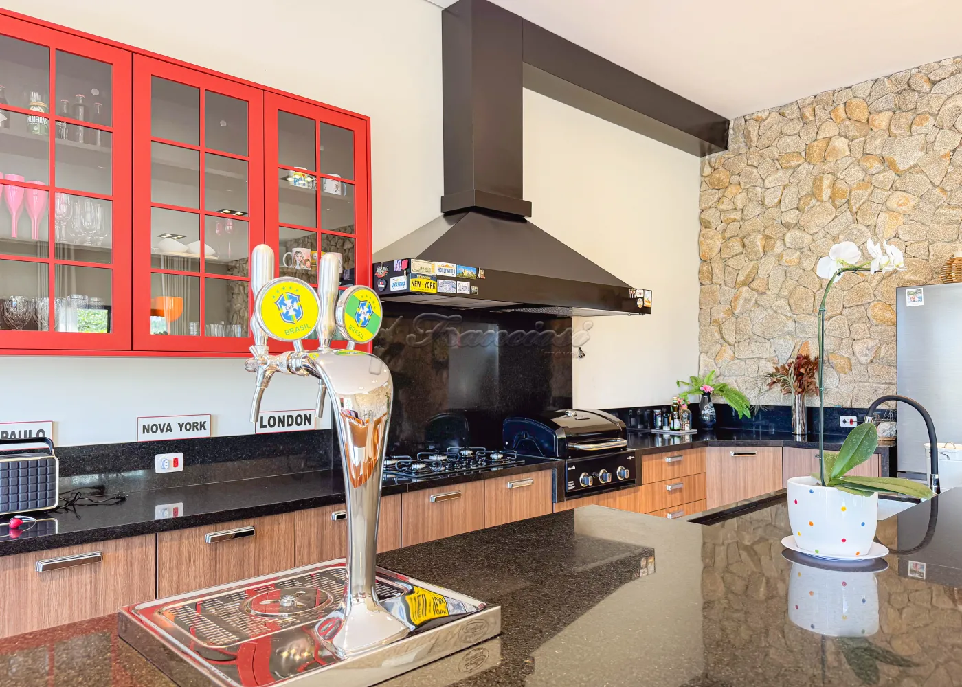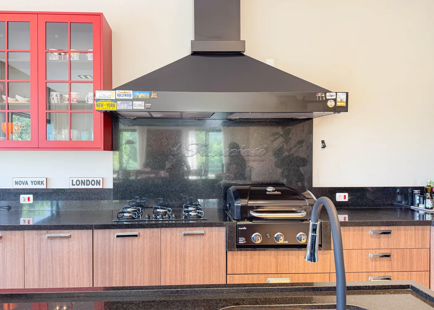 Área gourmet completa com vista privilegiada para o paisagismo e a natureza ao redor, ideal para momentos inesquecíveis com família e amigos; e piscina charmosa, integrada à área externa, proporcionando lazer e relaxamento com estilo.