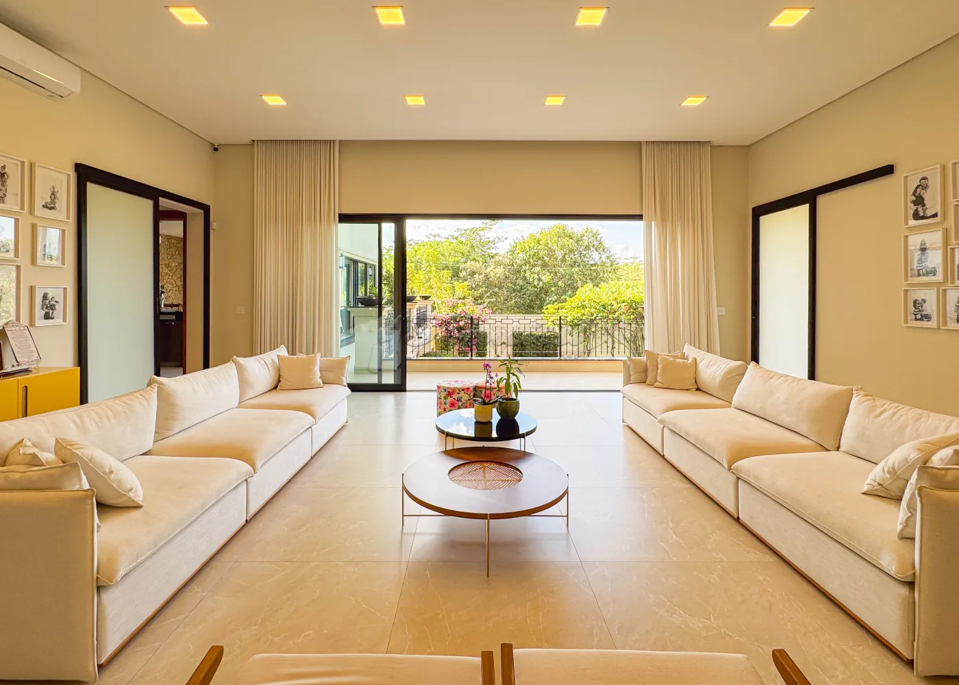 Com uma fachada imponente de 24 metros e paisagismo cuidadosamente planejado, esta residência é o equilíbrio perfeito entre sofisticação, conforto e contato com a natureza.