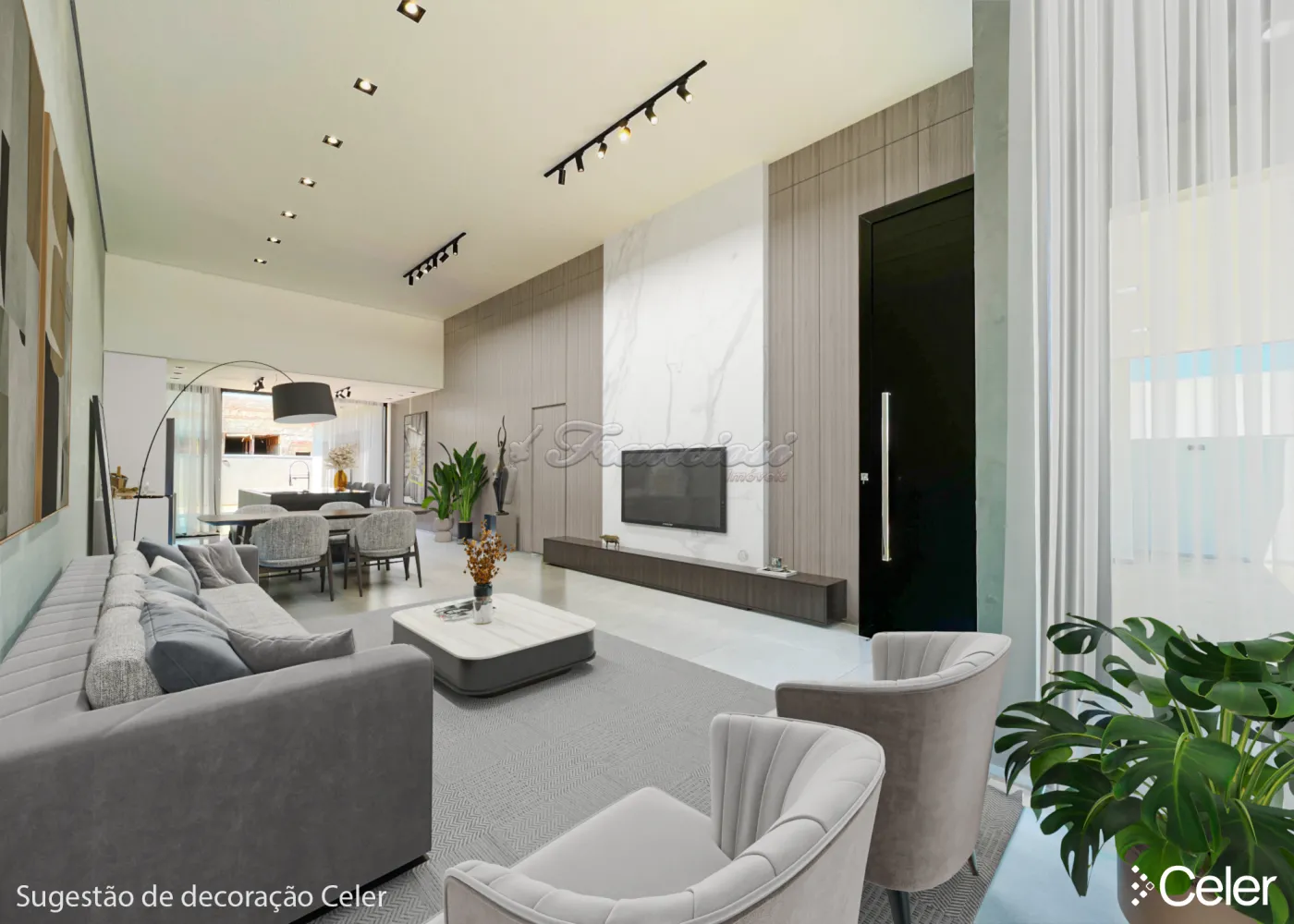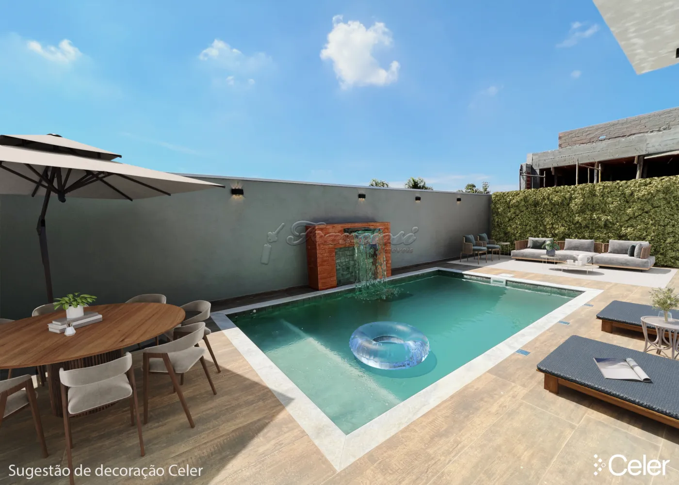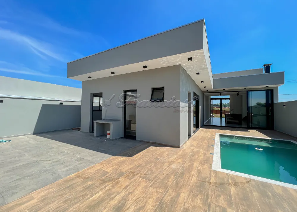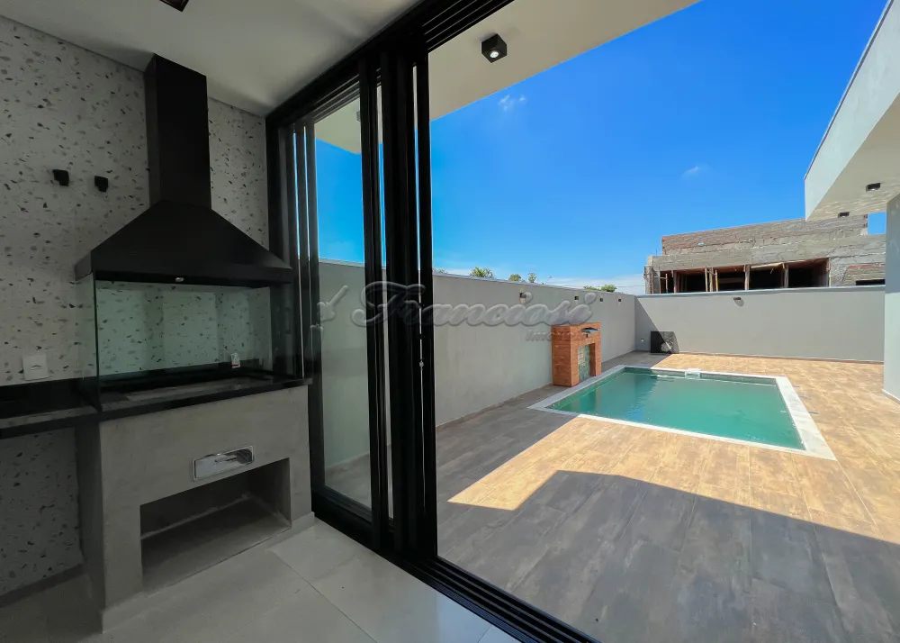 Casa em condomínio, possui 3 suítes com closet, 1 lavabo, sala de estar integrada com a cozinha, área gourmet com churrasqueira, 1 banheiro externo, piscina, despensa, lavanderia, quintal grande e garagem.
