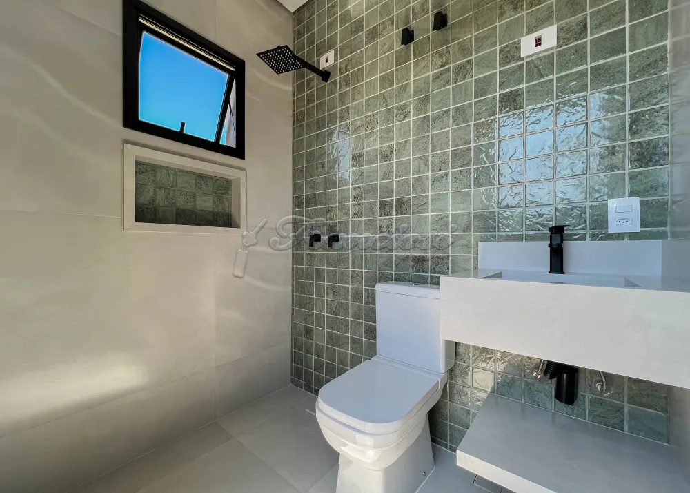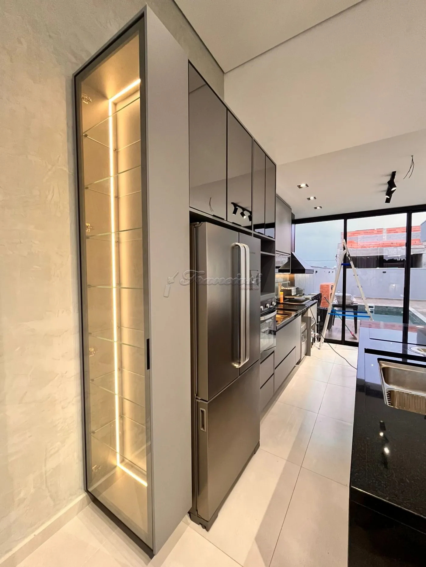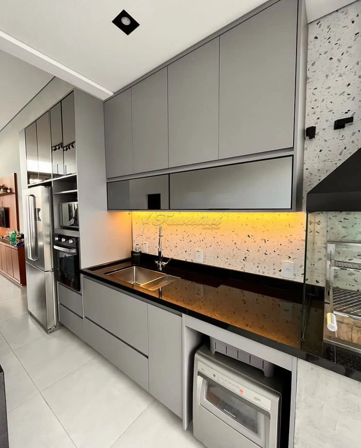 Casa em condomínio, possui 3 suítes com closet, 1 lavabo, sala de estar integrada com a cozinha, área gourmet com churrasqueira, 1 banheiro externo, piscina, despensa, lavanderia, quintal grande e garagem.