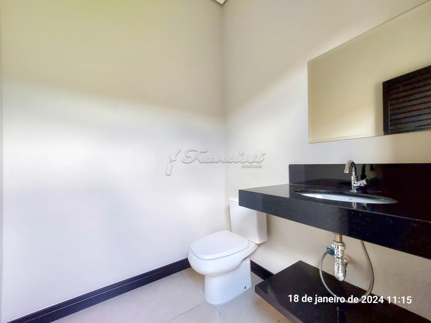 Piso inferior: 1 suíte com closet, armário e painel, sala ampla, cozinha modulada, ilha com fogão de 5 bocas, lavabo, lavanderia, hidro e garagem coberta para 2 carros.