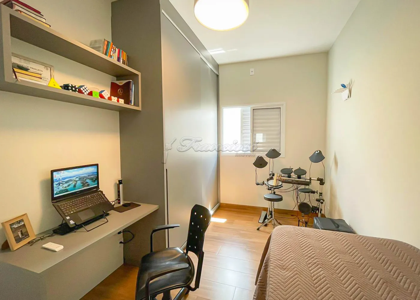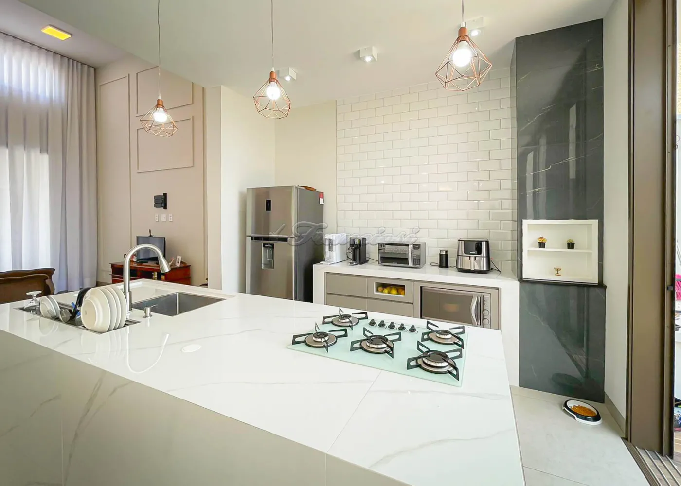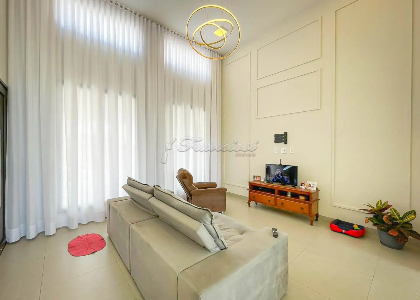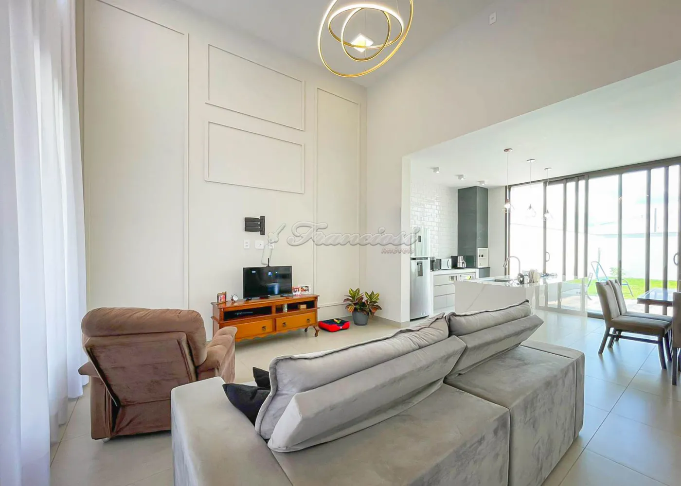 Imóvel localizado no Condomínio Golden Ville, com 3 dormitórios, sendo 2 suítes, uma delas com closet e banheiro equipado com hidromassagem, conta também com sala de estar, sala de jantar, cozinha planejada com ilha, lavabo, lavanderia isolada e um amplo quintal. Acabamento é de alta qualidade, com esquadrias de alumínio, móveis planejados e telhado com estrutura em steel frame, garantindo resistência e modernidade.