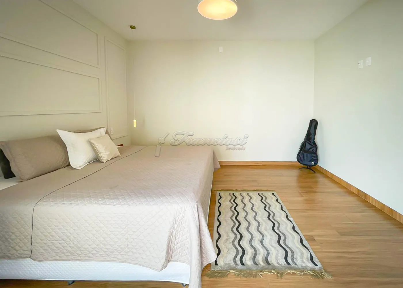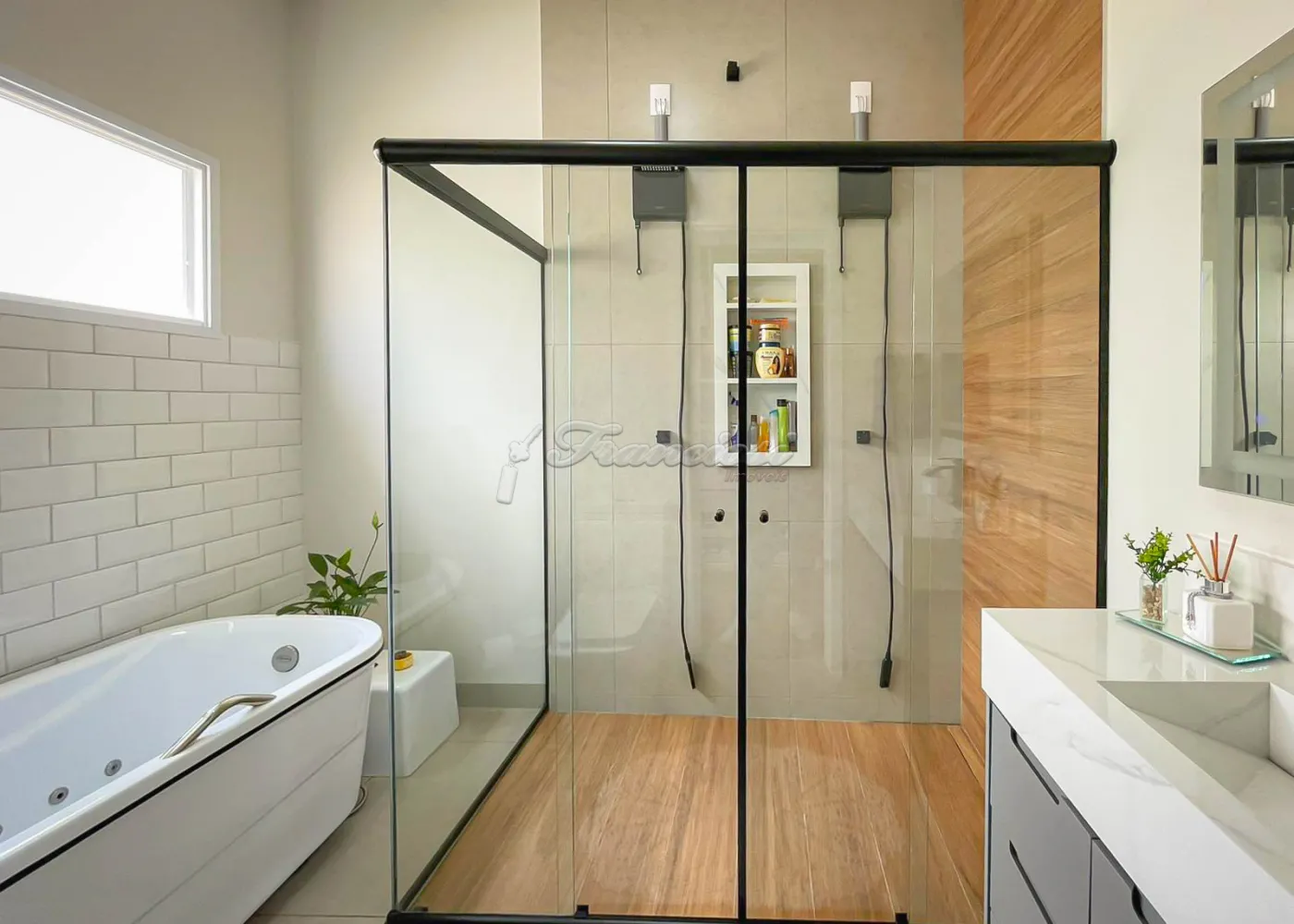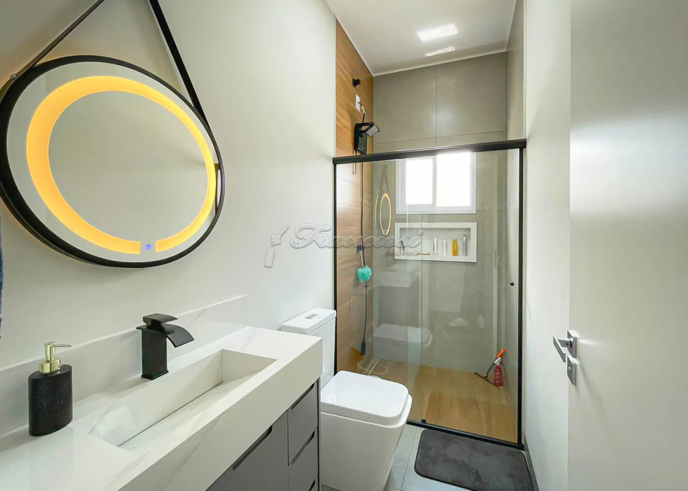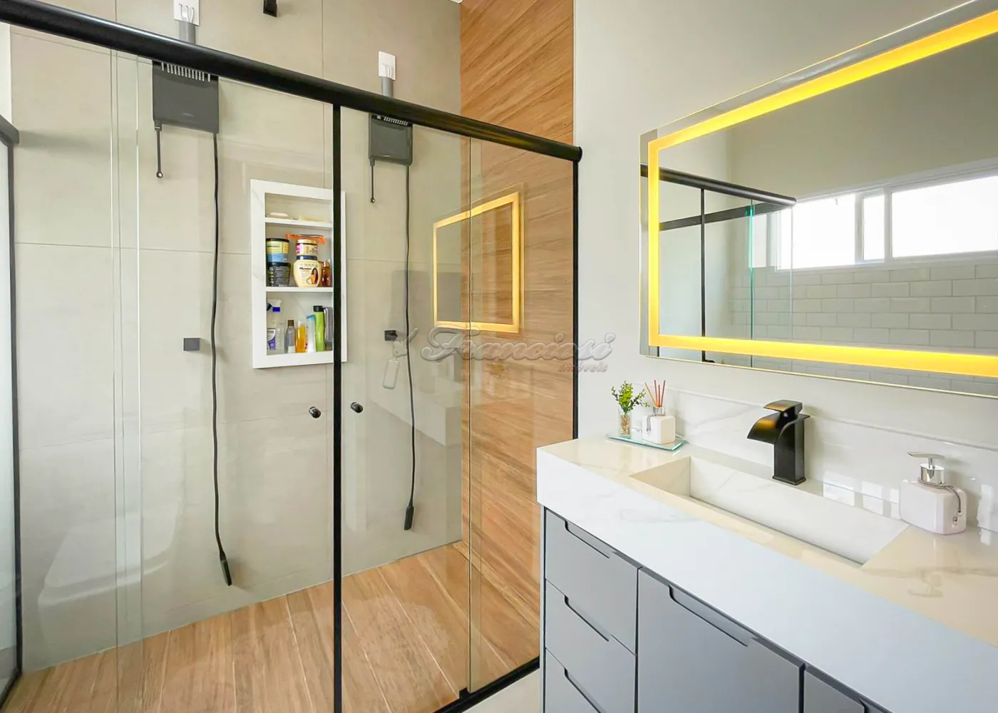 Imóvel localizado no Condomínio Golden Ville, com 3 dormitórios, sendo 2 suítes, uma delas com closet e banheiro equipado com hidromassagem, conta também com sala de estar, sala de jantar, cozinha planejada com ilha, lavabo, lavanderia isolada e um amplo quintal. Acabamento é de alta qualidade, com esquadrias de alumínio, móveis planejados e telhado com estrutura em steel frame, garantindo resistência e modernidade.