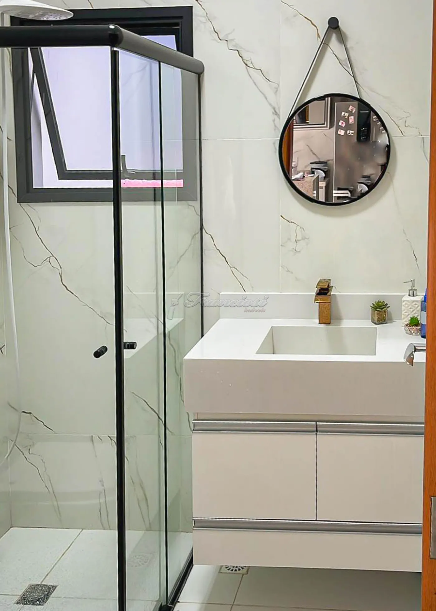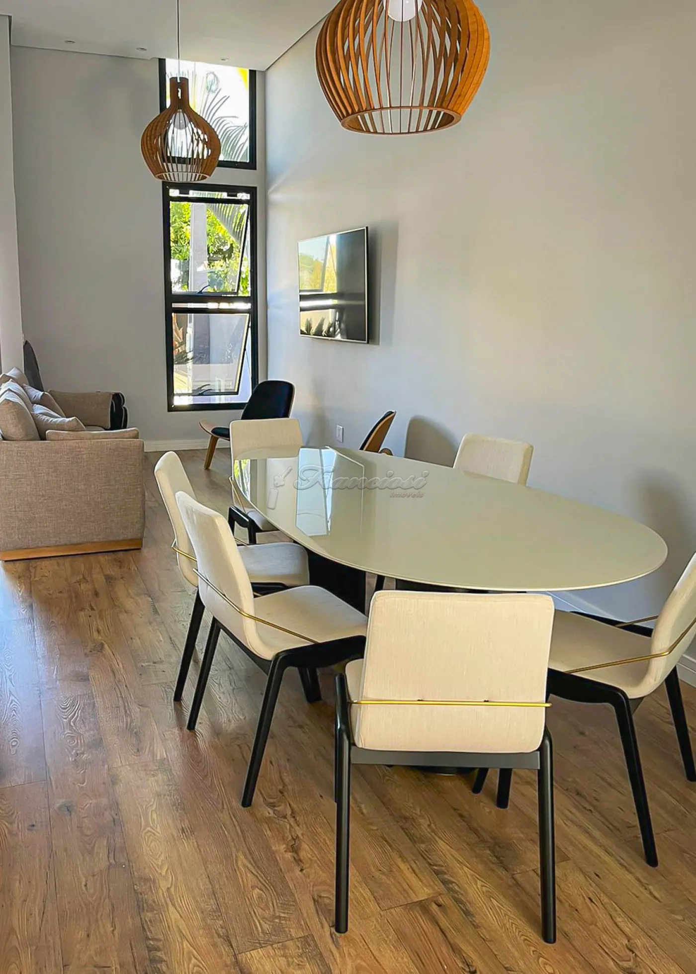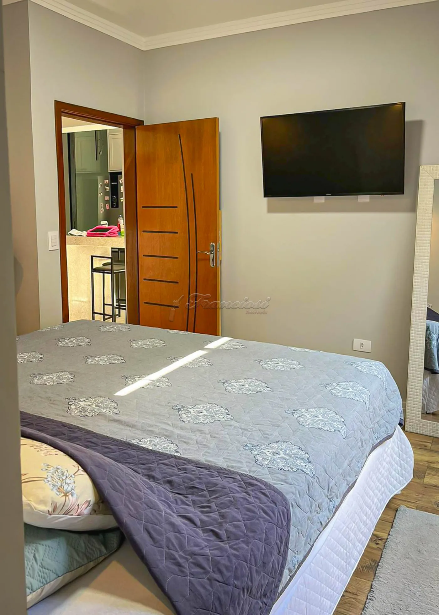O imóvel oferece armários planejados e ar condicionado nos dormitórios, piso laminado, porcelanato, gesso, iluminação embutida e venezianas automatizadas.
