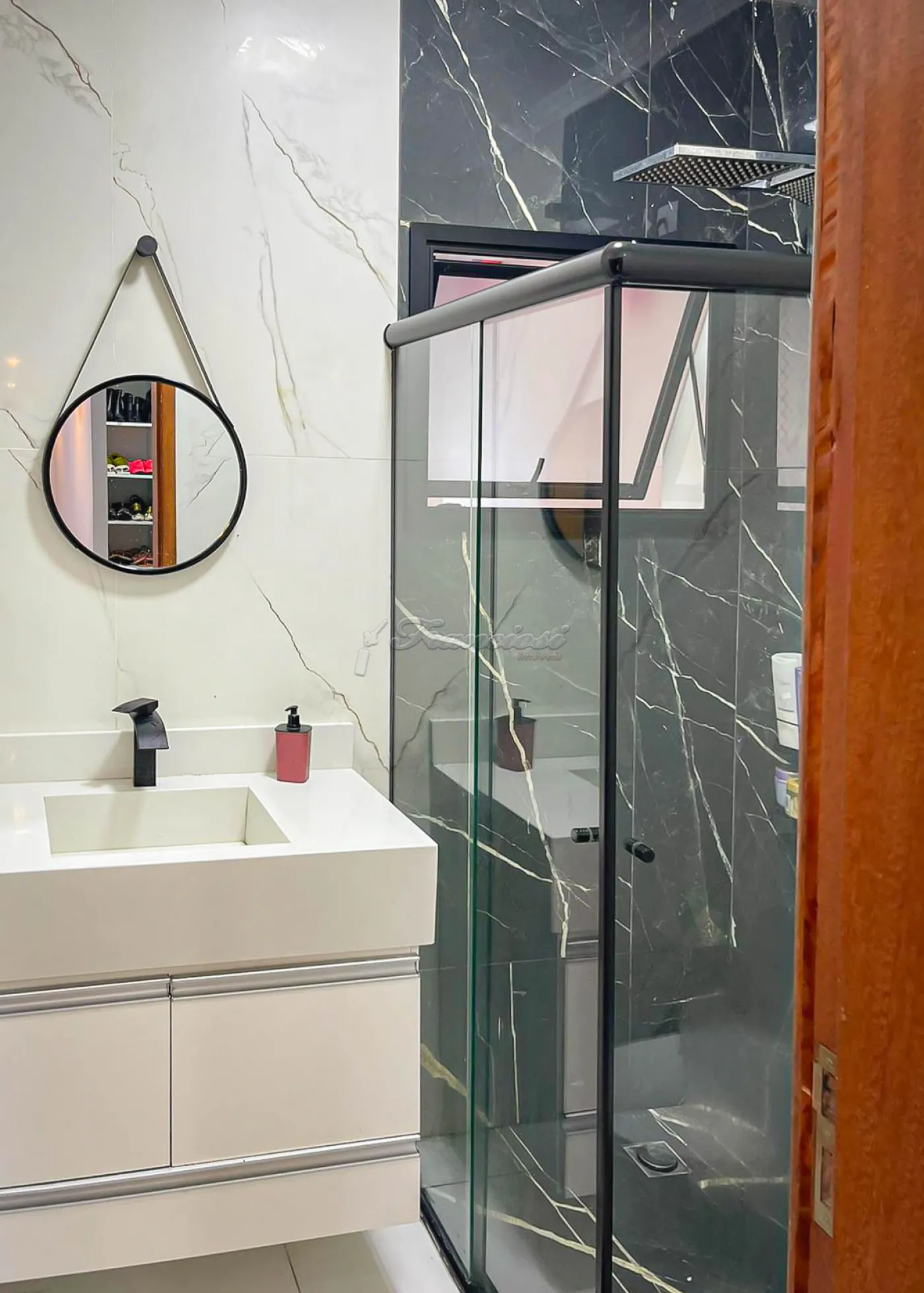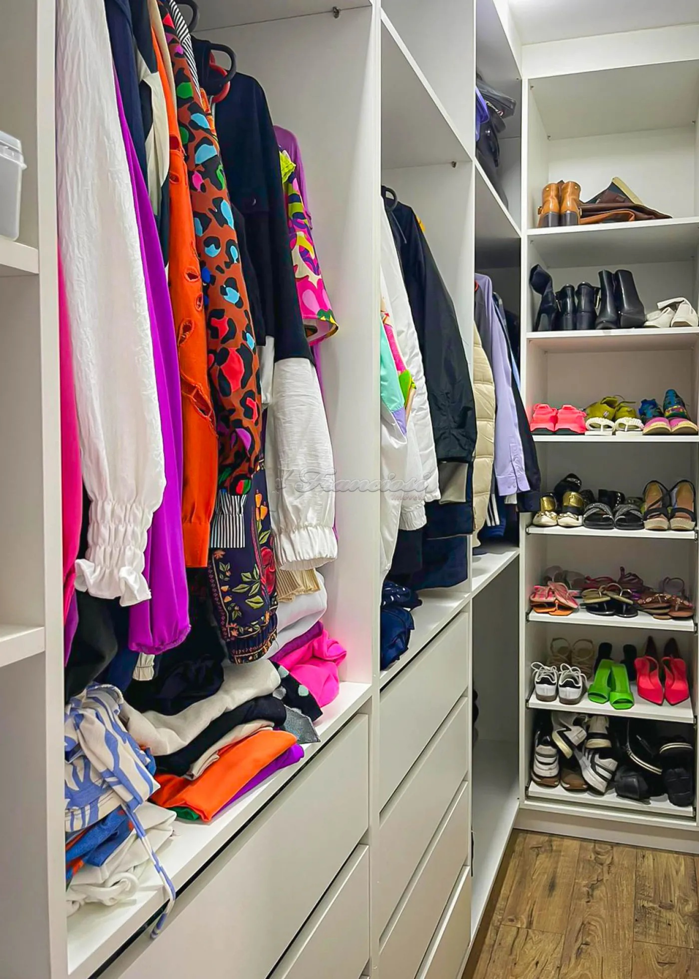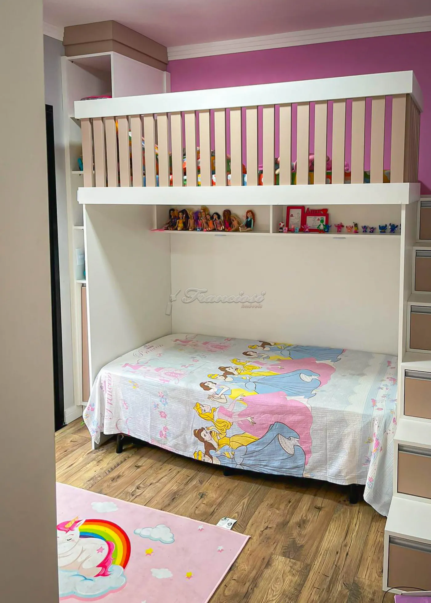 O imóvel oferece armários planejados e ar condicionado nos dormitórios, piso laminado, porcelanato, gesso, iluminação embutida e venezianas automatizadas.