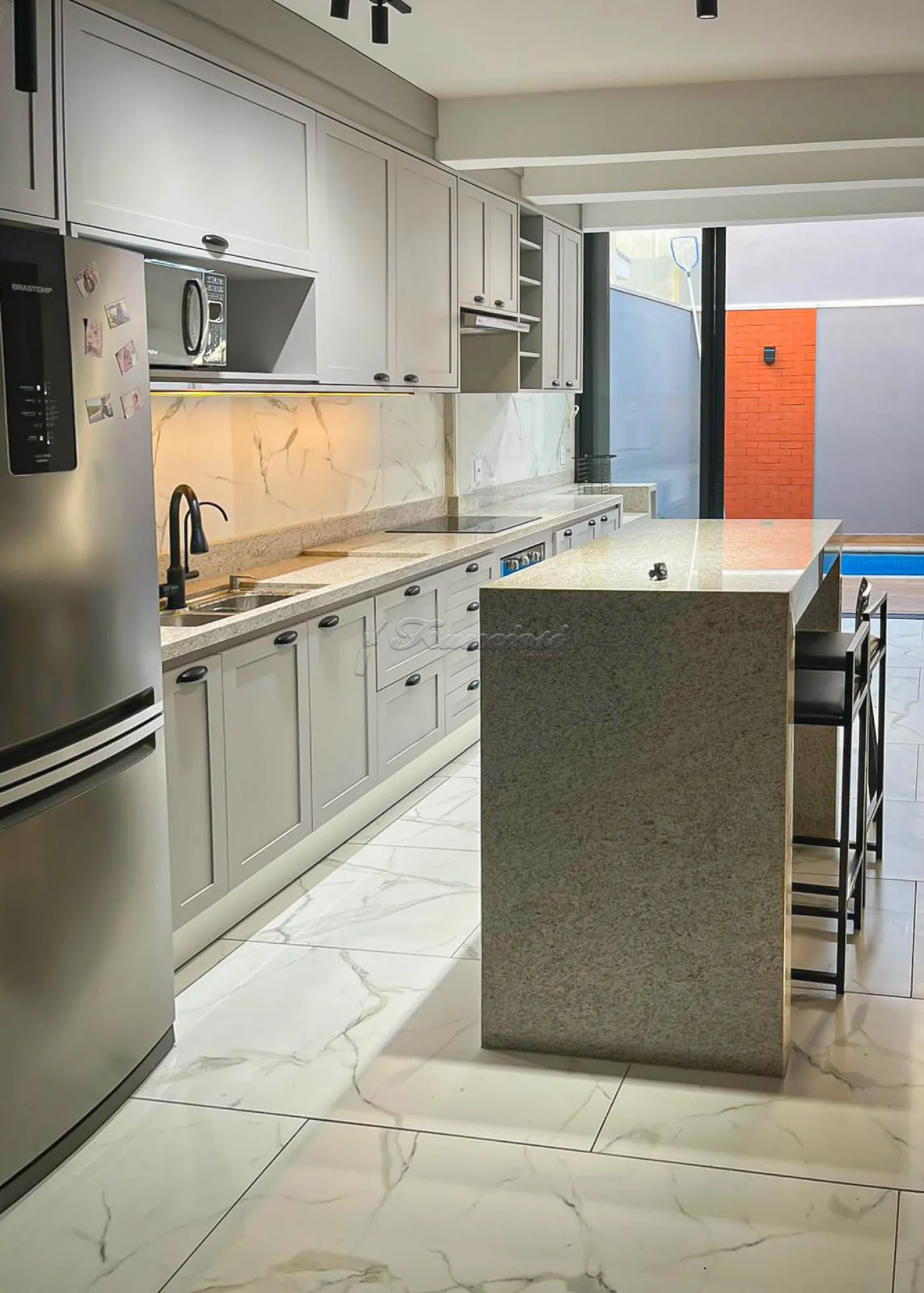 Imóvel no condomínio Marina composto por 03 dormitórios, sendo 01 suíte com closet, sala de TV, sala de jantar, cozinha com móveis planejados, banheiro social, lavanderia coberta, quintal amplo, piscina aquecida e hidro e garagem para 01 veículo.