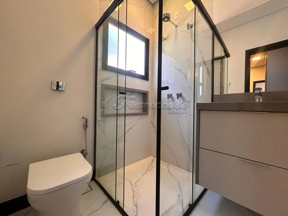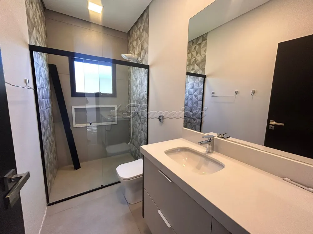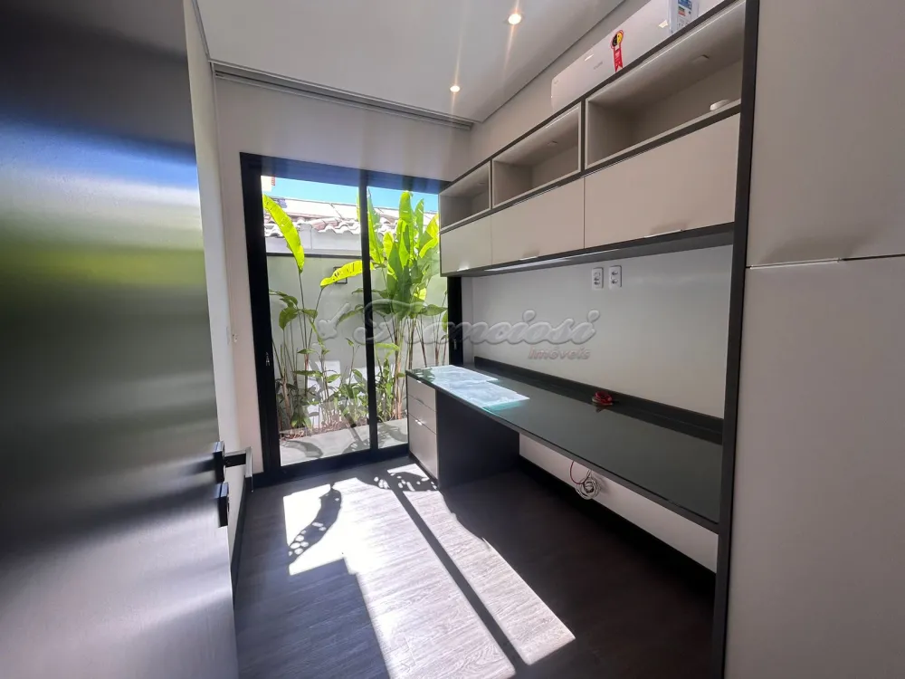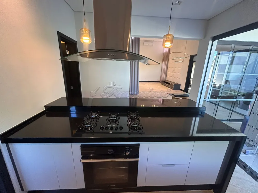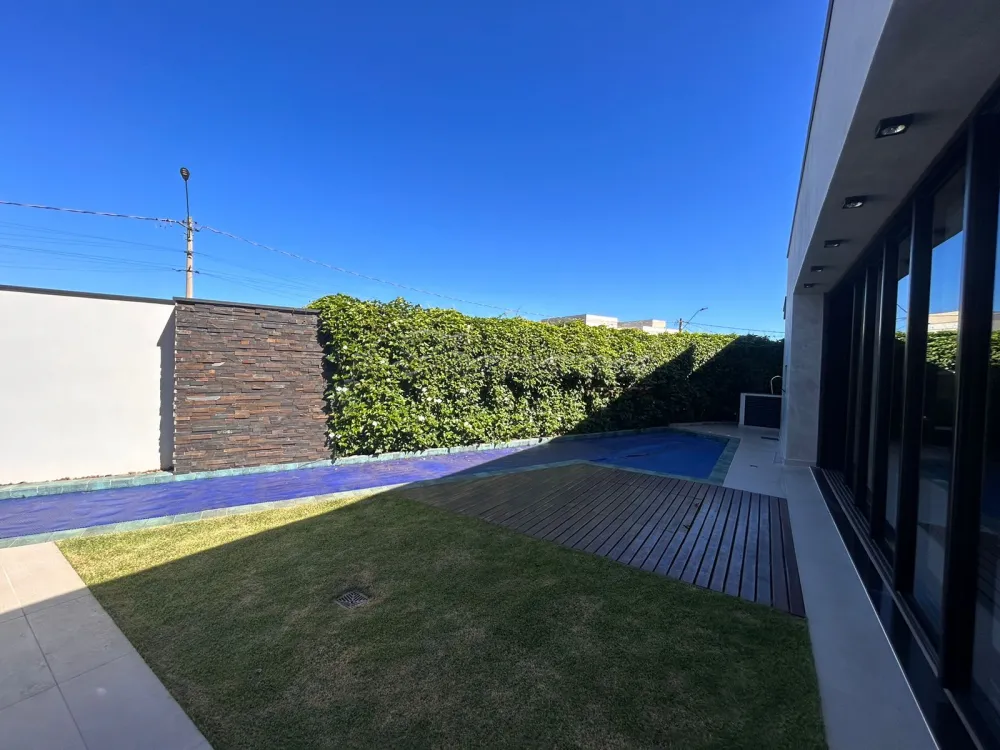 Casa em condomínio com 3 Suítes sendo uma com closet, sala ampla com pé direito, 1 lavabo, cozinha planejada com ilha/forno e cooktop, despensa, lavanderia com armários, escritório, 1 banheiro externo, piscina de alvenaria estilo raia com revestimento Porto Bello, garagem para 2 carros. Com Ar condicionado em todos os ambientes.