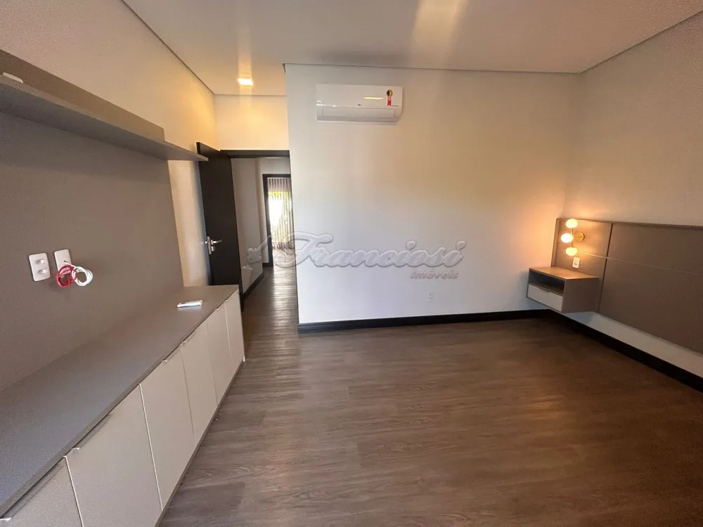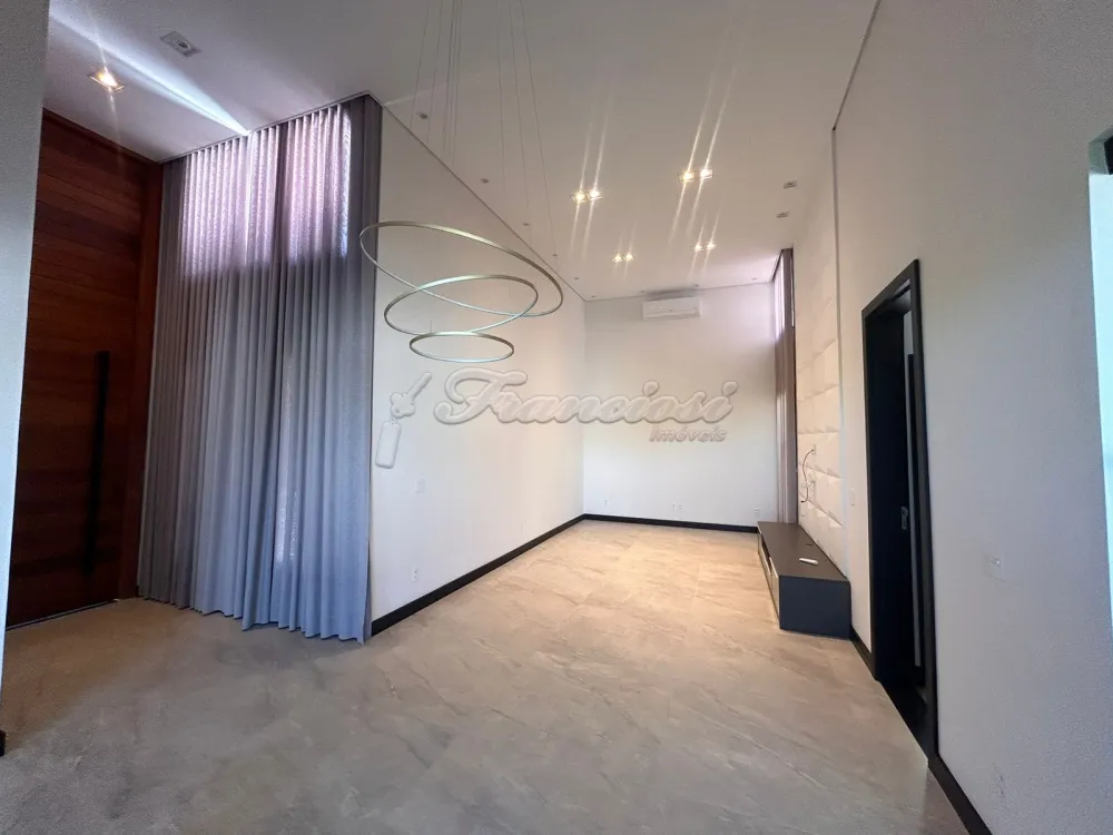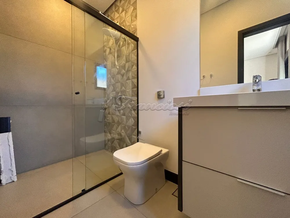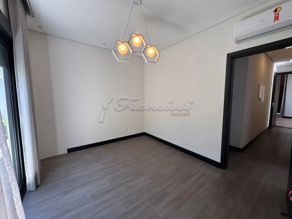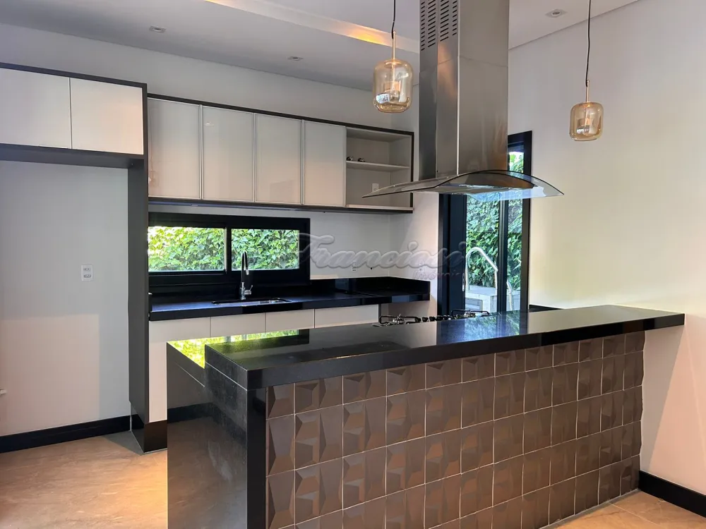 Casa em condomínio com 3 Suítes sendo uma com closet, sala ampla com pé direito, 1 lavabo, cozinha planejada com ilha/forno e cooktop, despensa, lavanderia com armários, escritório, 1 banheiro externo, piscina de alvenaria estilo raia com revestimento Porto Bello, garagem para 2 carros. Com Ar condicionado em todos os ambientes.