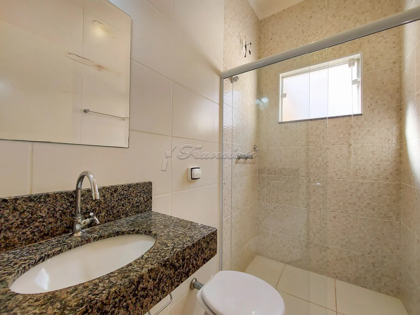 Casa com 2 suítes com box blindex, sala de estar ampla, lavabo, sala de jantar, cozinha, área de serviço coberta, área de lazer com churrasqueira, 1 banheiro externo, quintal com piso e garagem coberta para 1 carro.