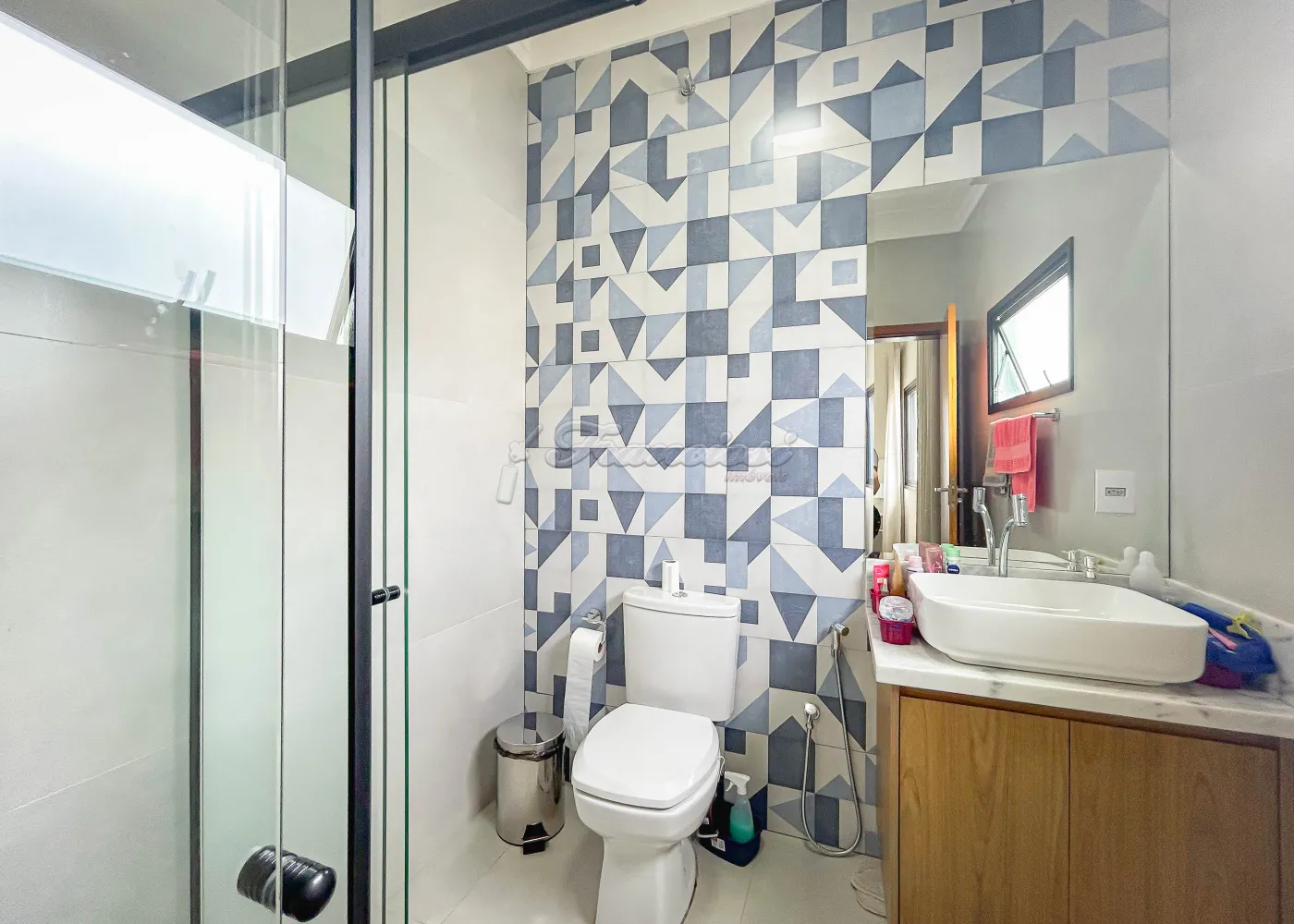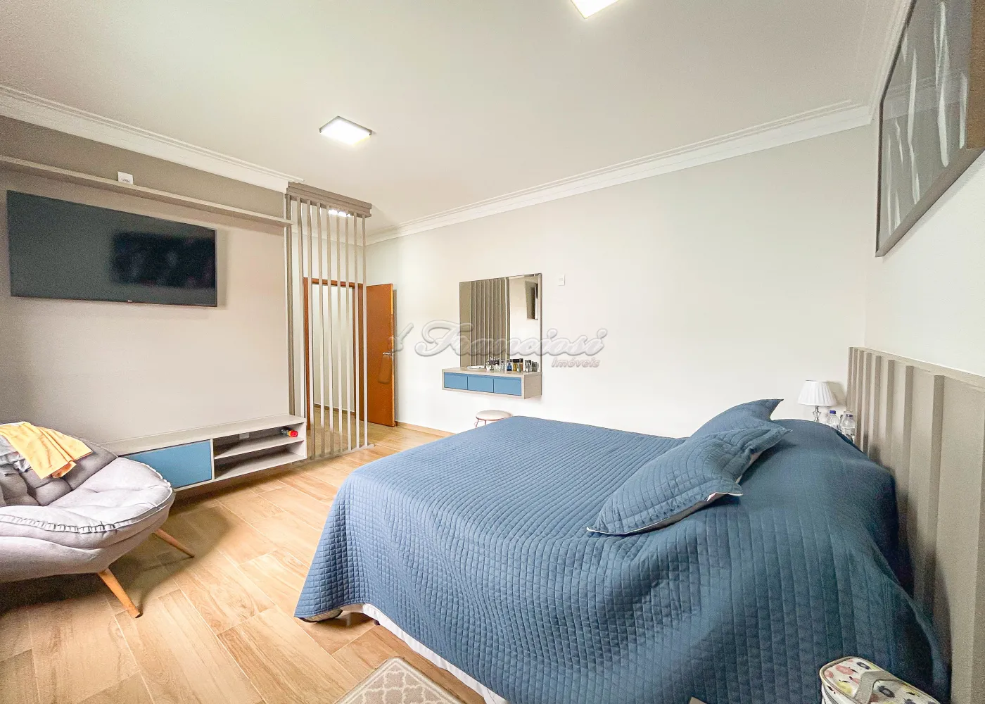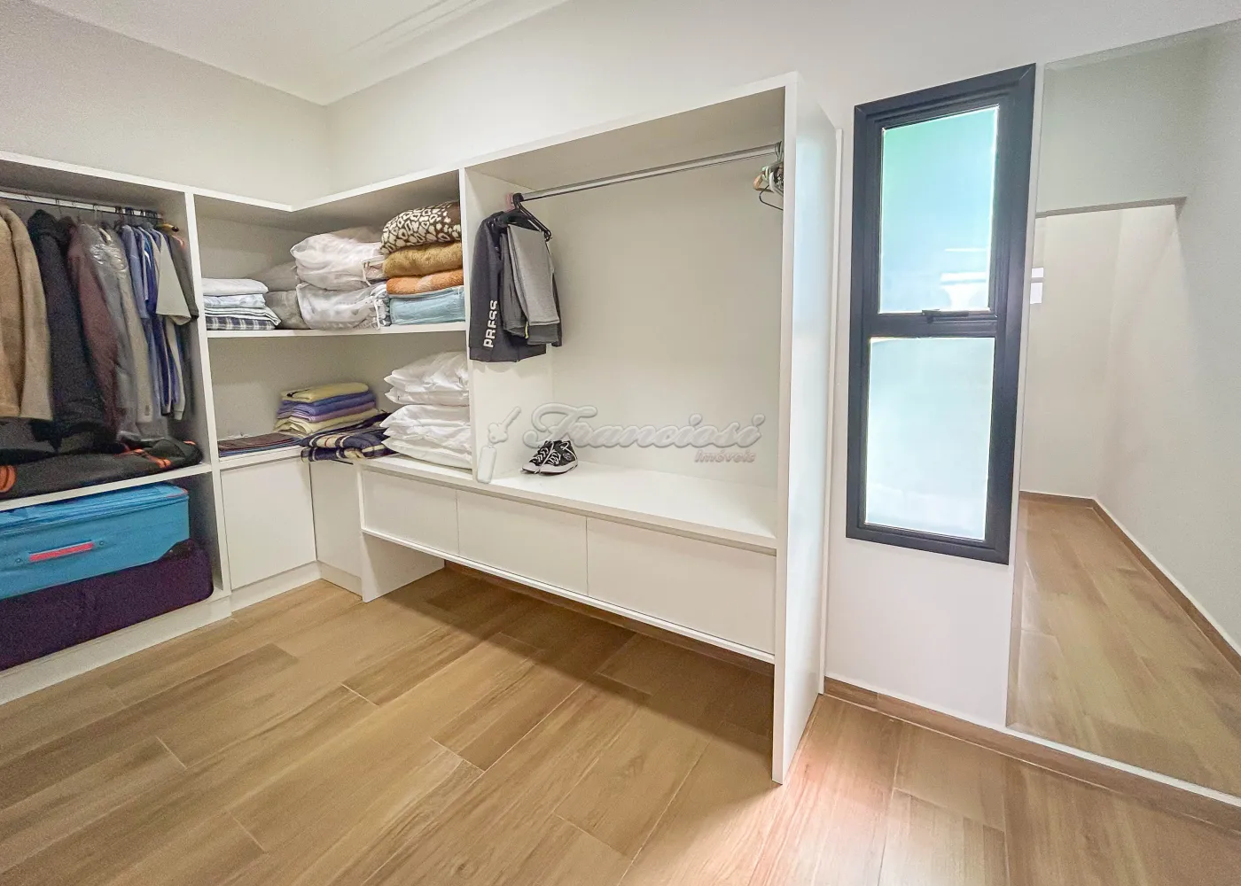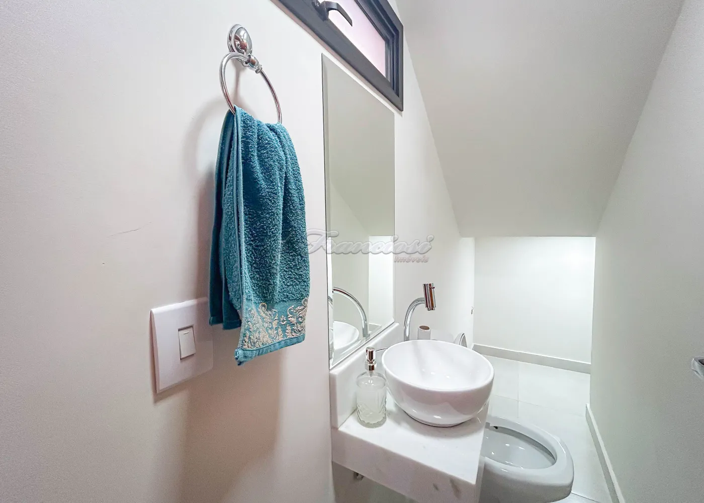 Imóvel em condomínio com 03 dormitórios, sendo todos eles suítes com armários embutidos. Sala de estar, lavabo, copa e cozinha com churrasqueira e forno a lenha. Escritório, lavabo de apoio e lavanderia coberta, além de garagem para 02 carros.