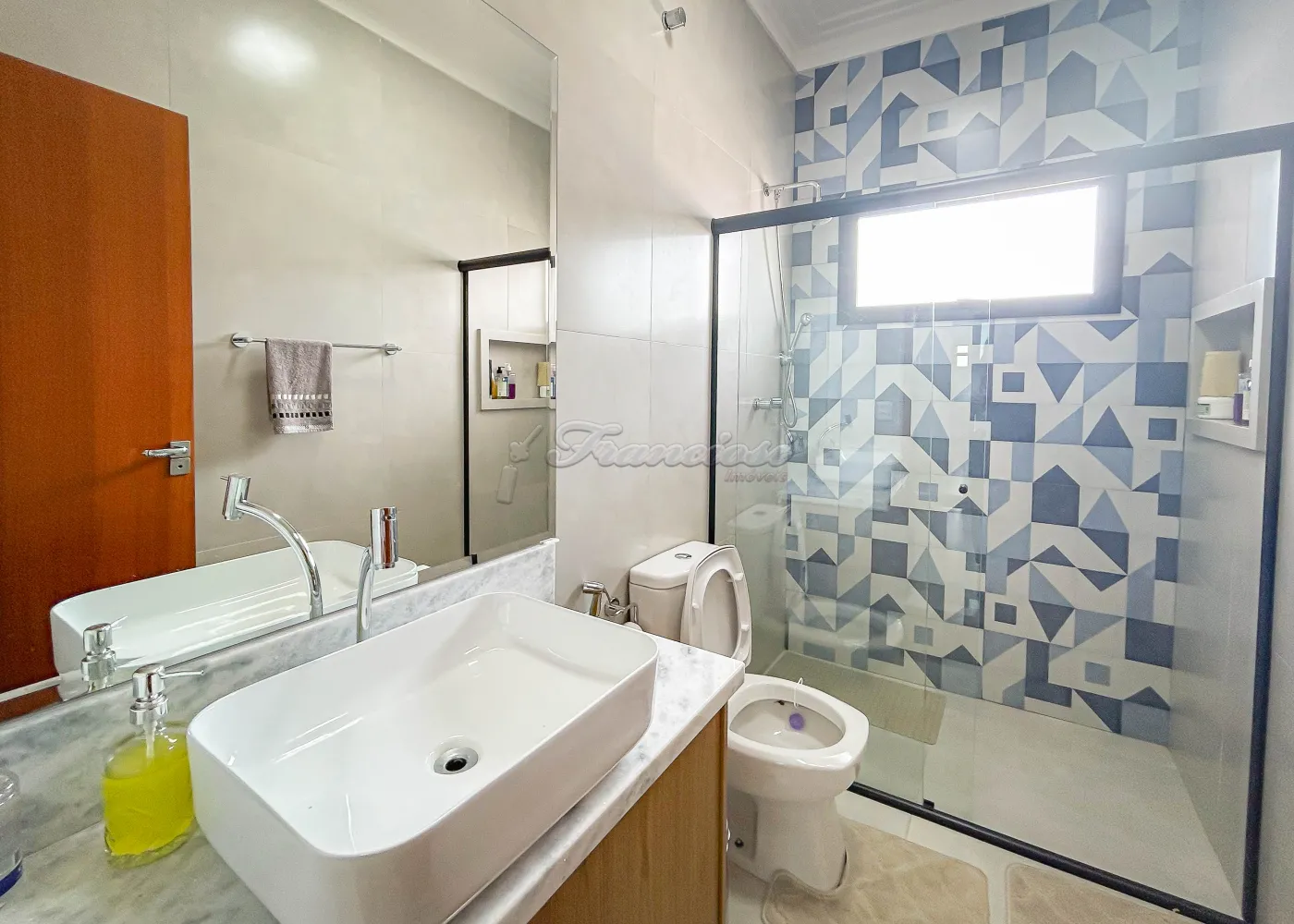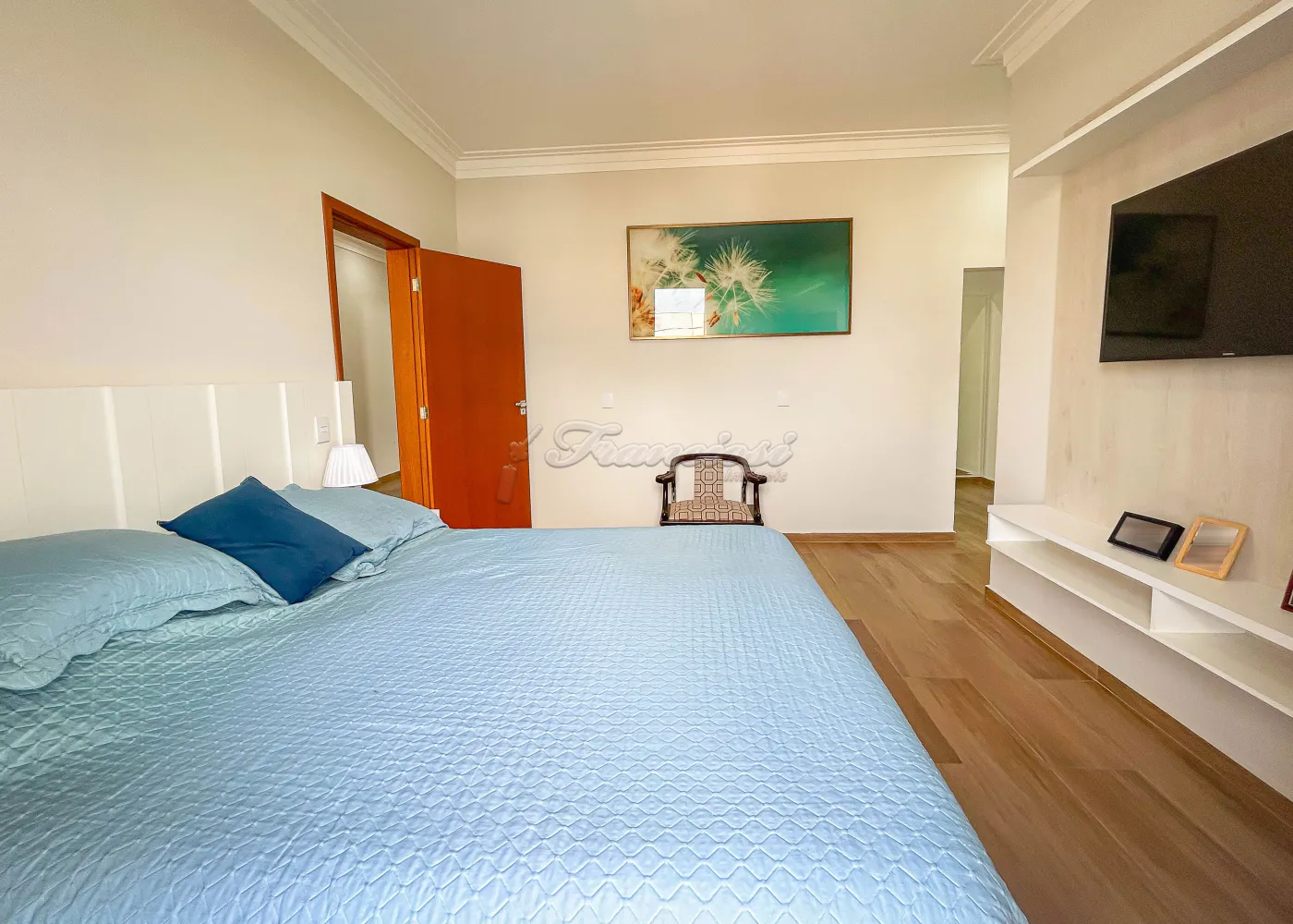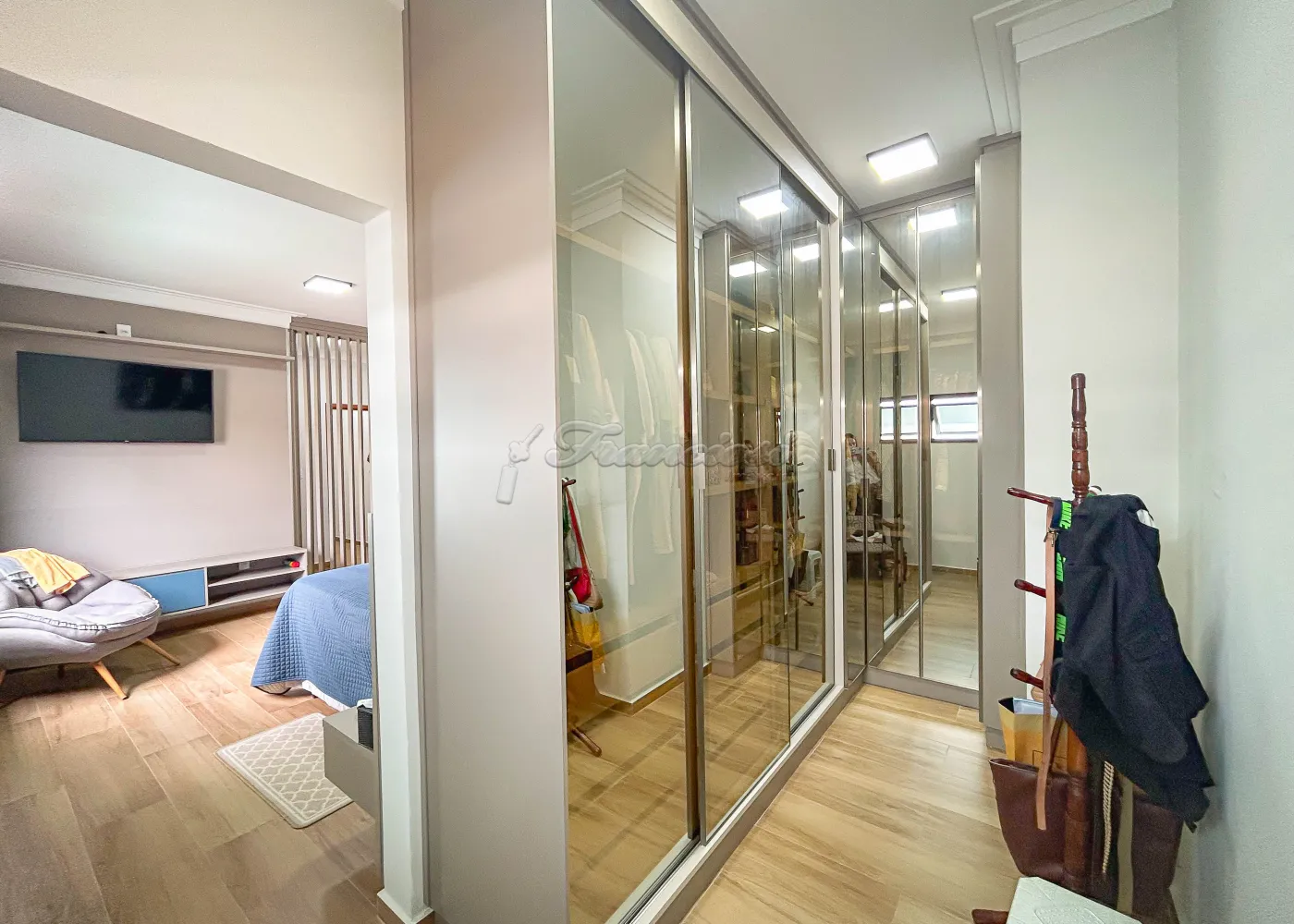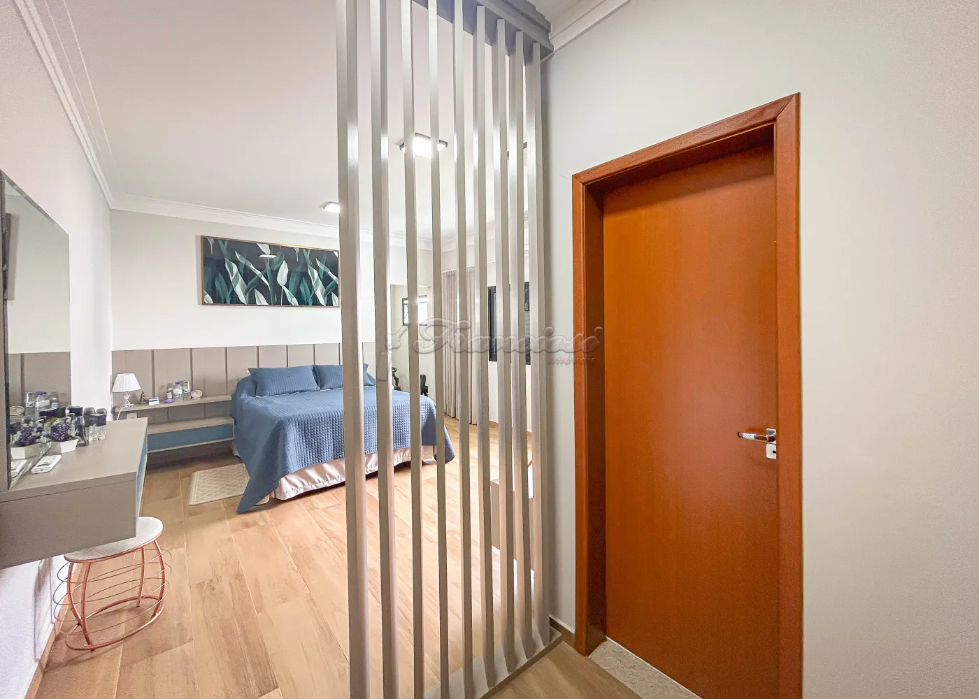 Imóvel em condomínio com 03 dormitórios, sendo todos eles suítes com armários embutidos. Sala de estar, lavabo, copa e cozinha com churrasqueira e forno a lenha. Escritório, lavabo de apoio e lavanderia coberta, além de garagem para 02 carros.