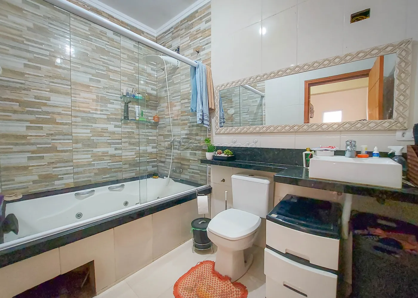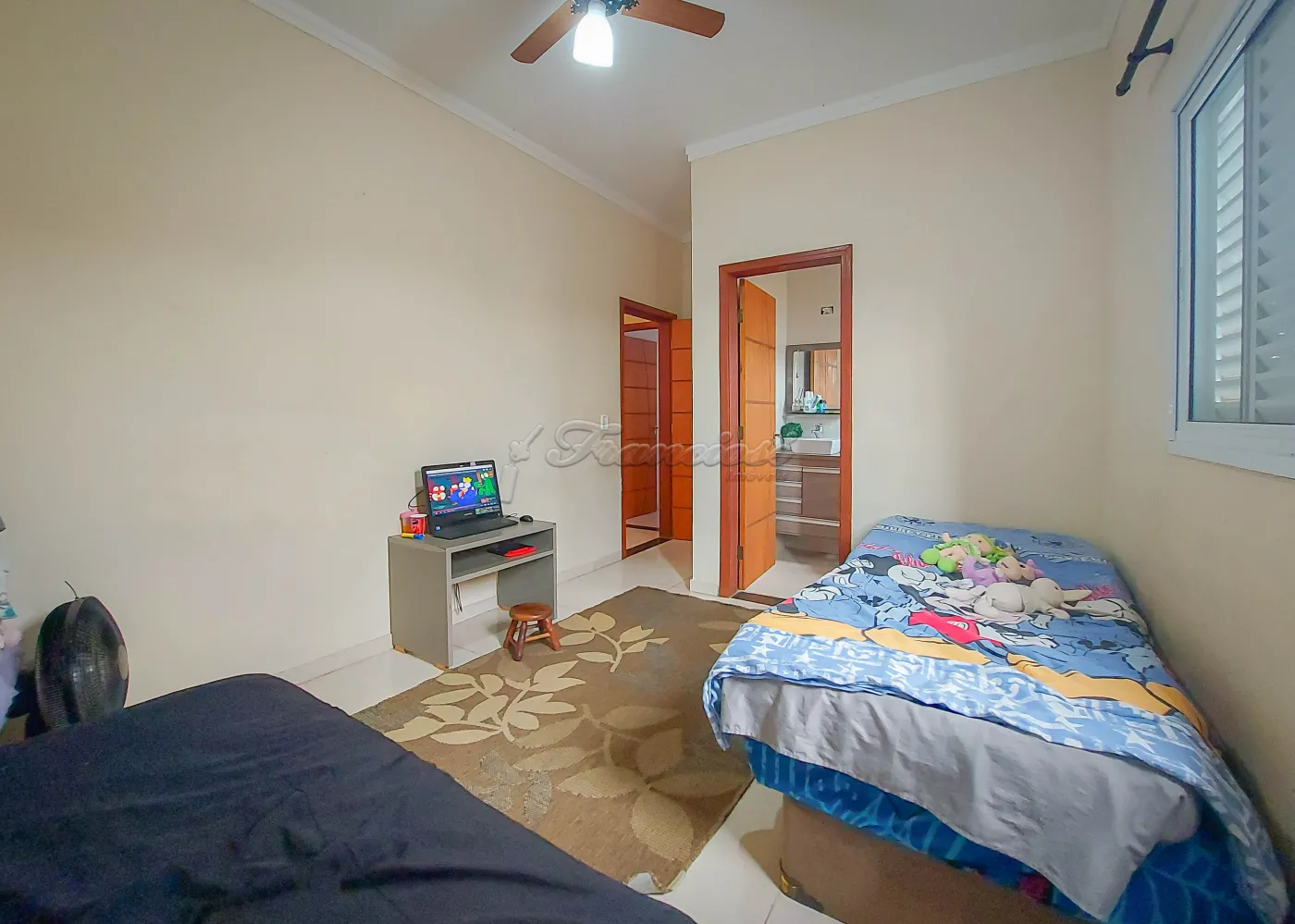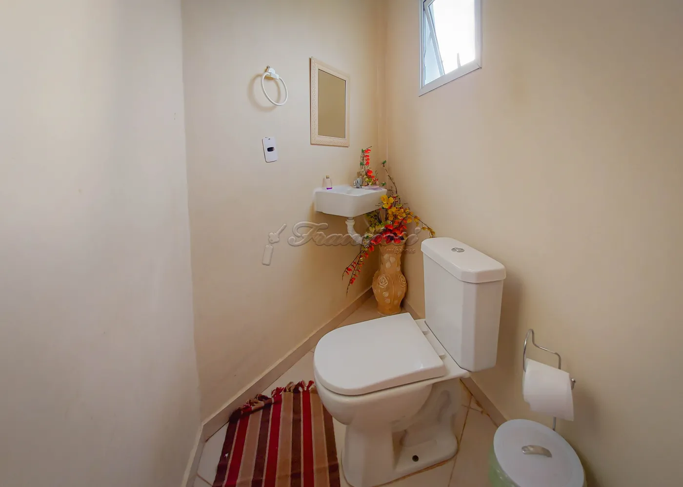 Casa com 3 dormitórios sendo 2 suíte, sala de jantar com sala de TV, cozinha americana com mármore e modelados, 1 banheiro social, lavabo, edícula e garagem sem cobertura para 3 carros.