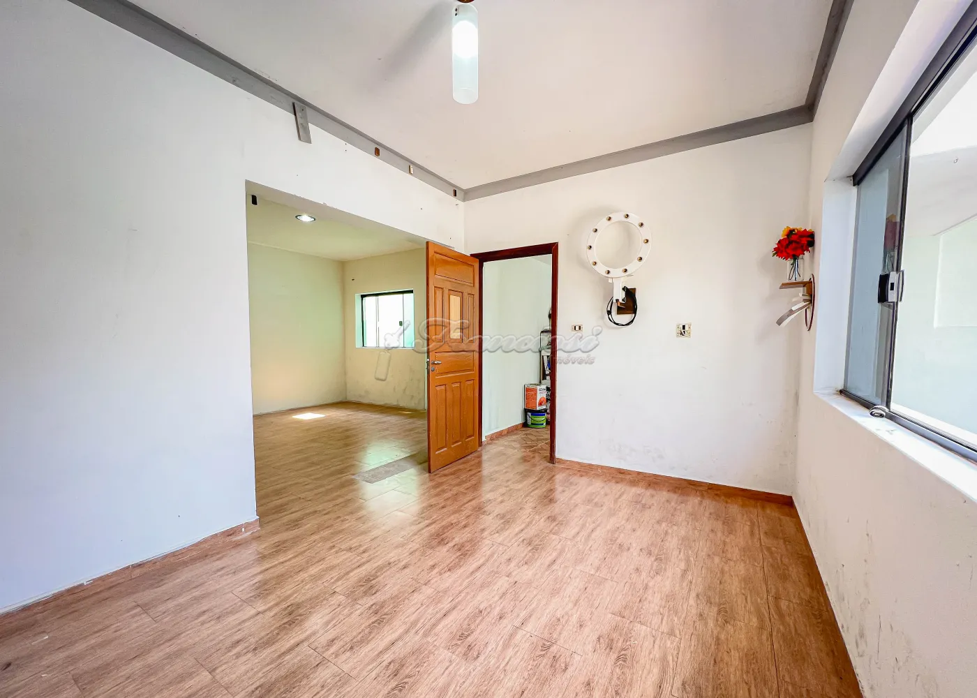 Casa com 2 Dormitórios, 1 Banheiro com box, Sala de Estar, Cozinha, Quintal e Garagem coberta para 1 carro.
