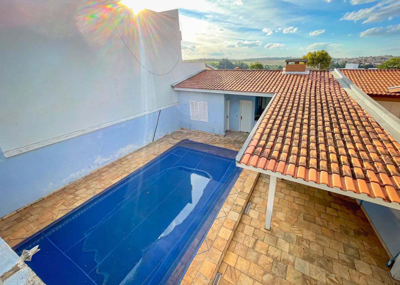 Edícula com 1 dormitório, cozinha, 1 banheiro, churrasqueira, espaço coberto, piscina com motor, bomba para limpeza em abrigo.