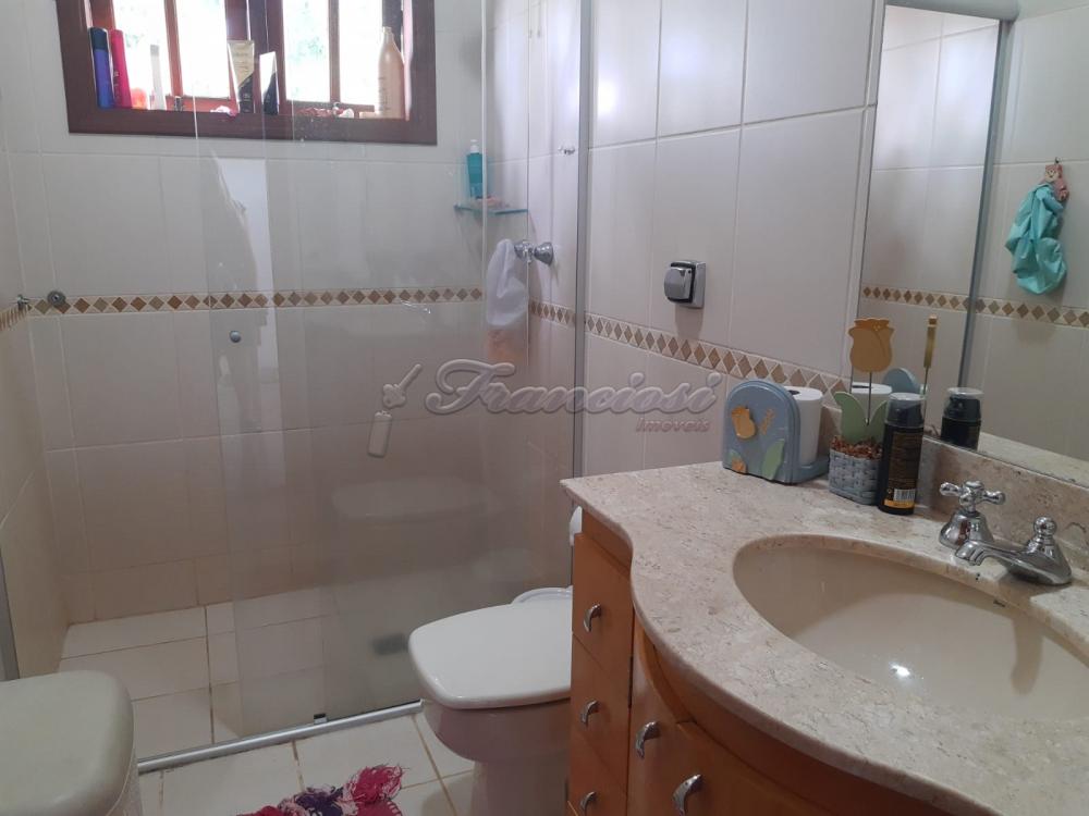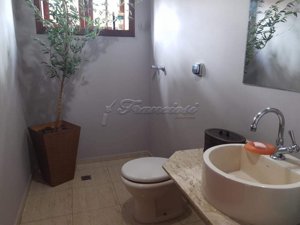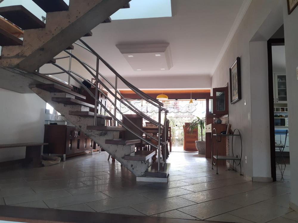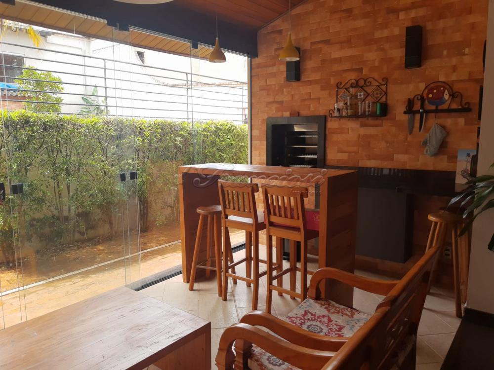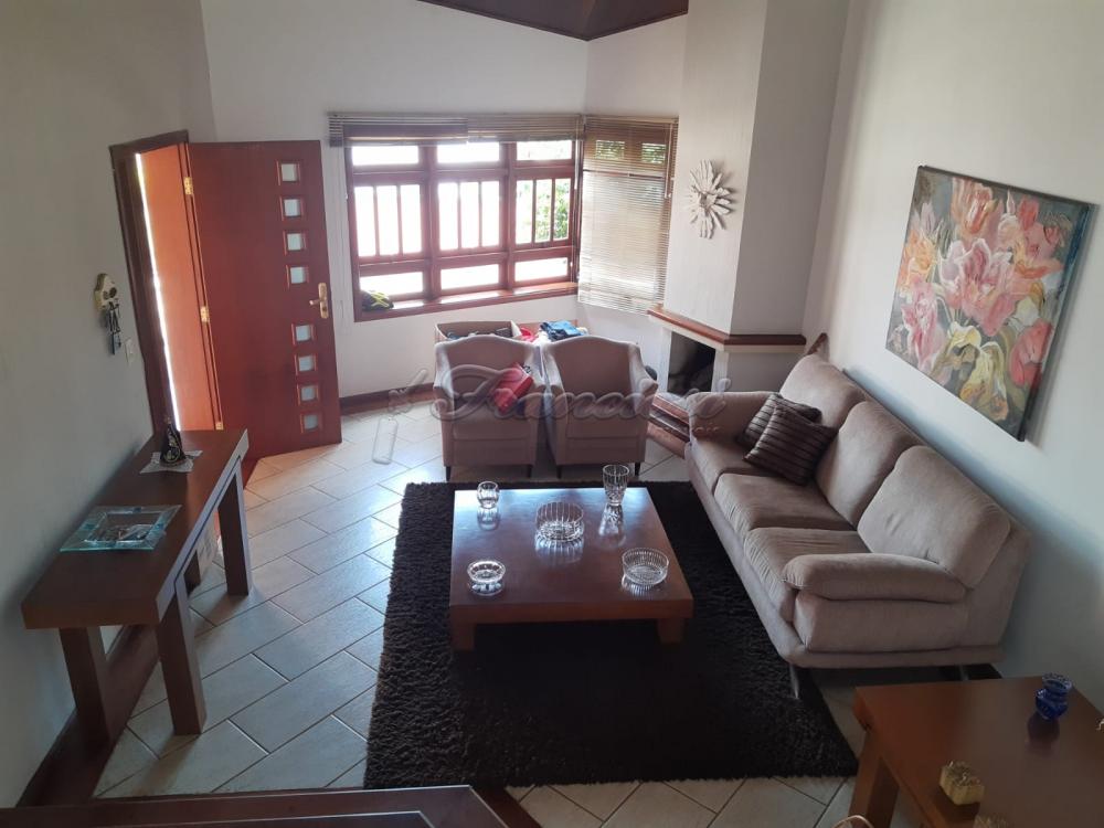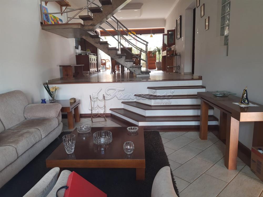 Parte inferior: garagem para 2 carros, sala de estar com lareira, sala de tv, lavabo, cozinha, lavanderia, área gourmet com churrasqueira, 1 banheiro externo.
