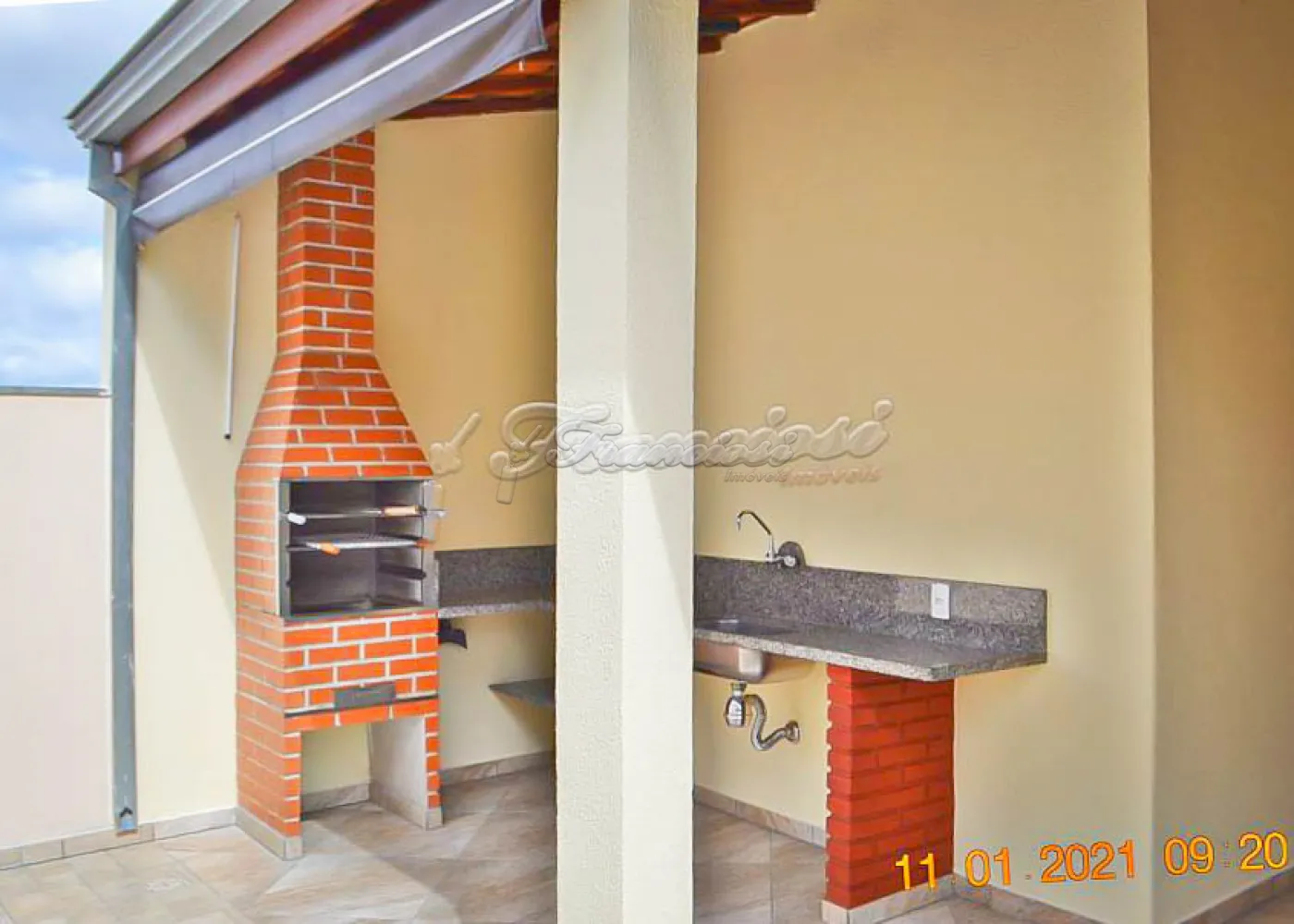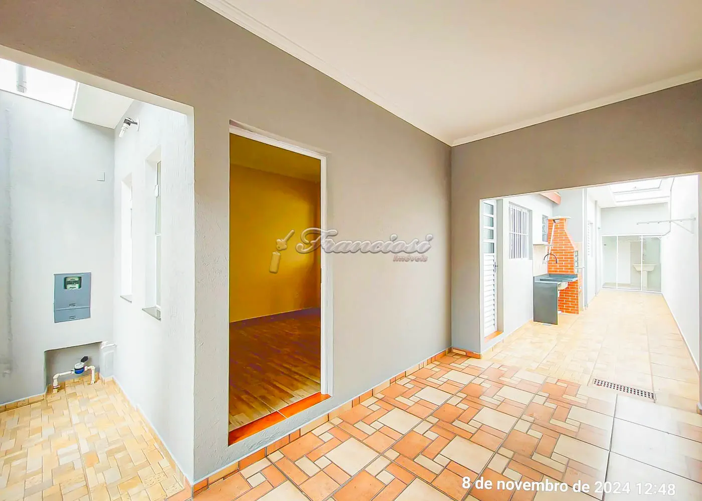 Possui 02 dormitórios, sala de estar, cozinha, 01 banheiro com box blindex, lavanderia e quintal com churrasqueira. Conta ainda com garagem coberta para 01 veículo, equipada com portão eletrônico. O acabamento inclui laje, piso frio e azulejo, garantindo funcionalidade e conforto.