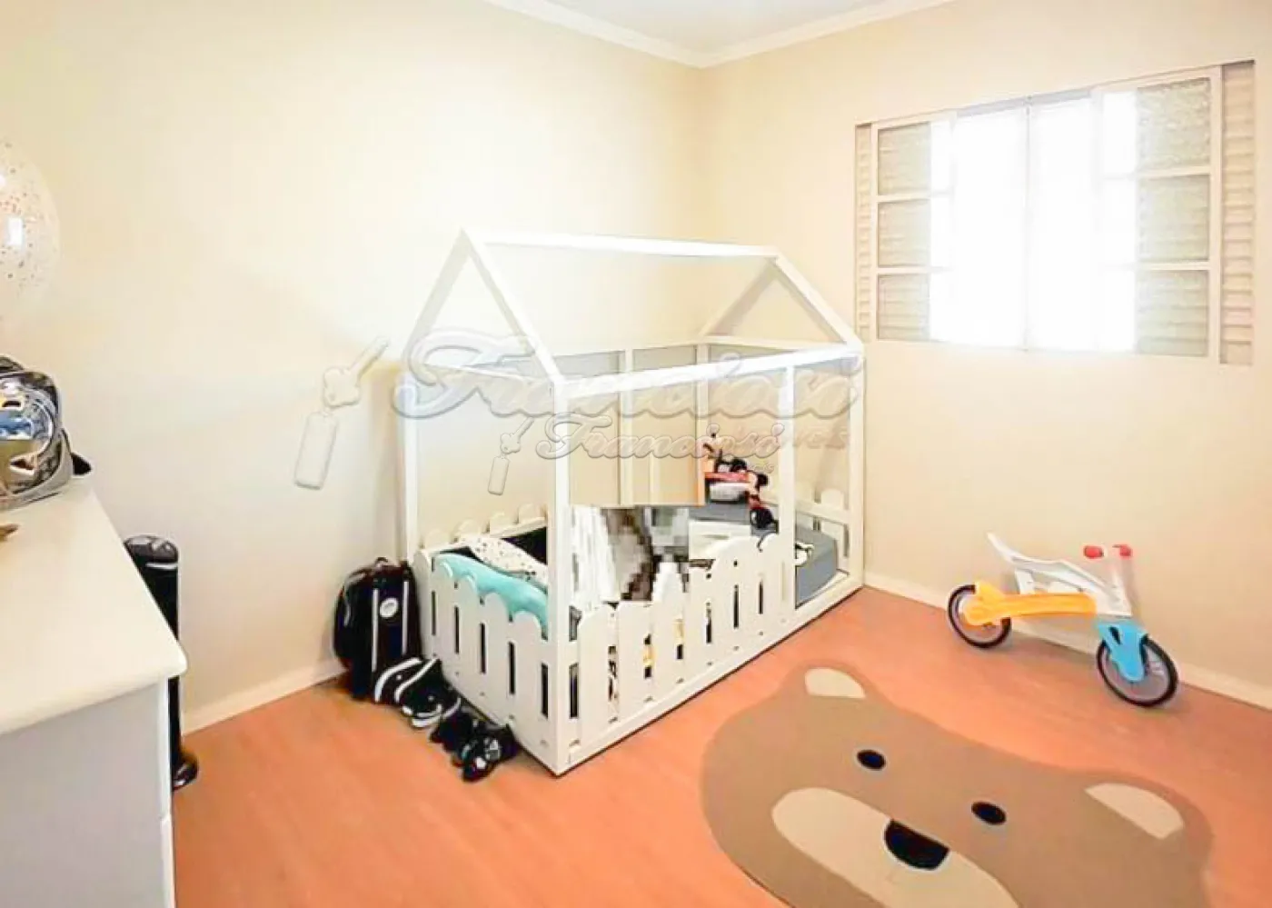 A segunda casa conta com 03 dormitórios, sendo 01 suíte, 02 banheiros, sala de estar, cozinha, despensa, área de serviço coberta, quintal pequeno e garagem coberta para 01 carro com portão eletrônico.