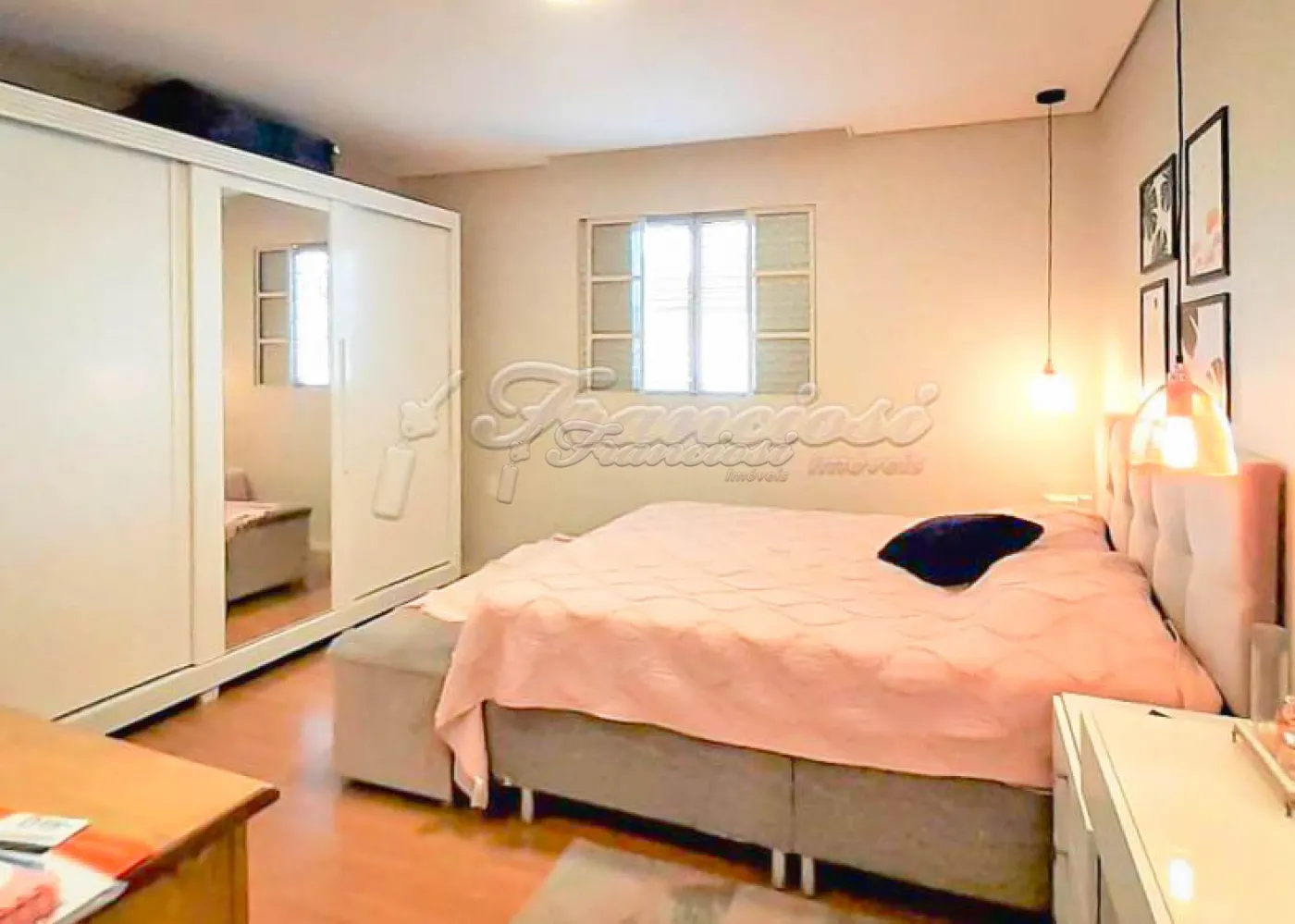 A primeira casa possui 03 dormitórios, sendo 01 suíte, 01 banheiro, sala de estar, cozinha ampla, área de serviço coberta, quintal grande com piso, garagem coberta para 01 carro e entrada para mais 02 carros.