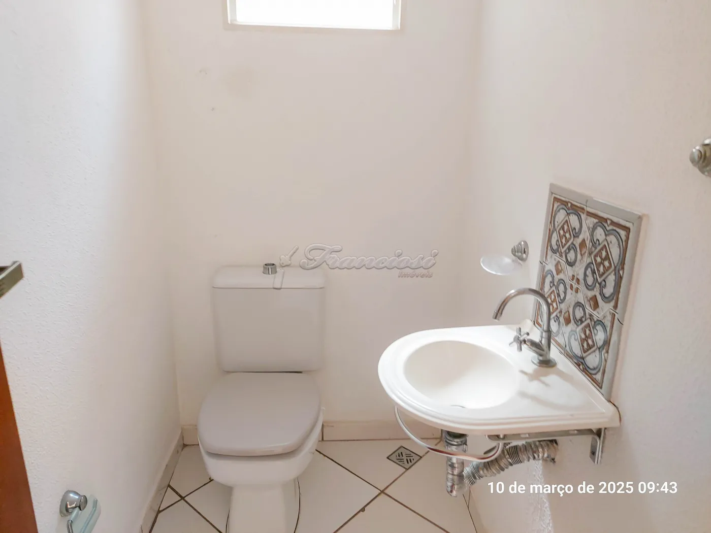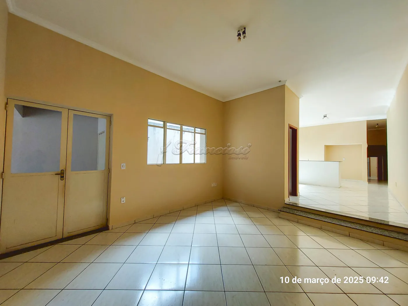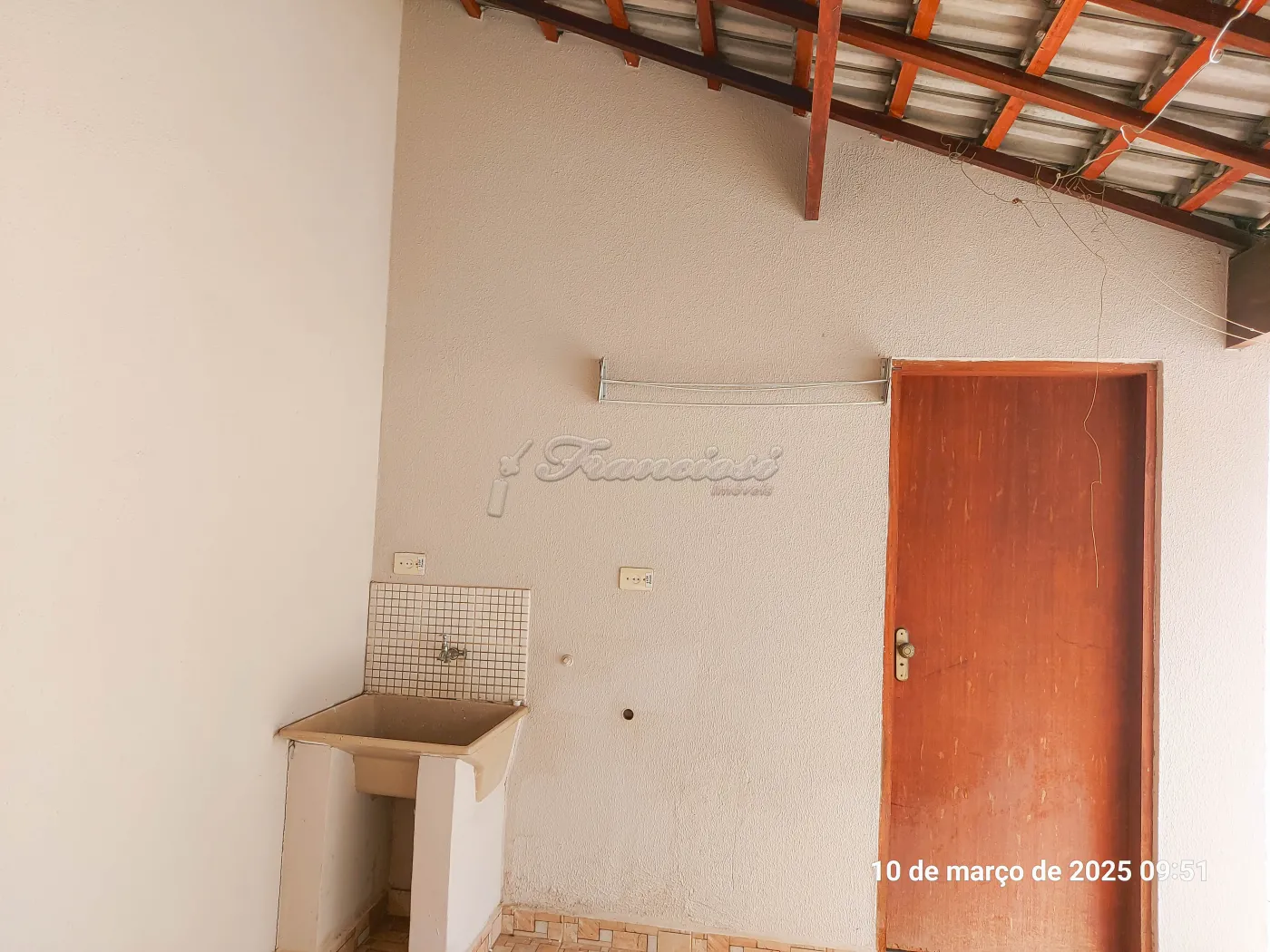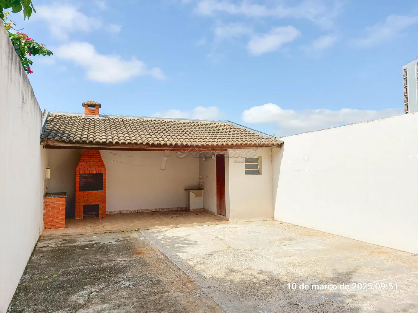 Casa com 3 dormitórios sendo 1 suíte com box acrílico, 1 banheiro social com box acrílico, sala de estar ampla, cozinha, lavabo, área de serviço, quintal grande cimentado, churrasqueira, 1 banheiro externo e garagem coberta para 2 carros.