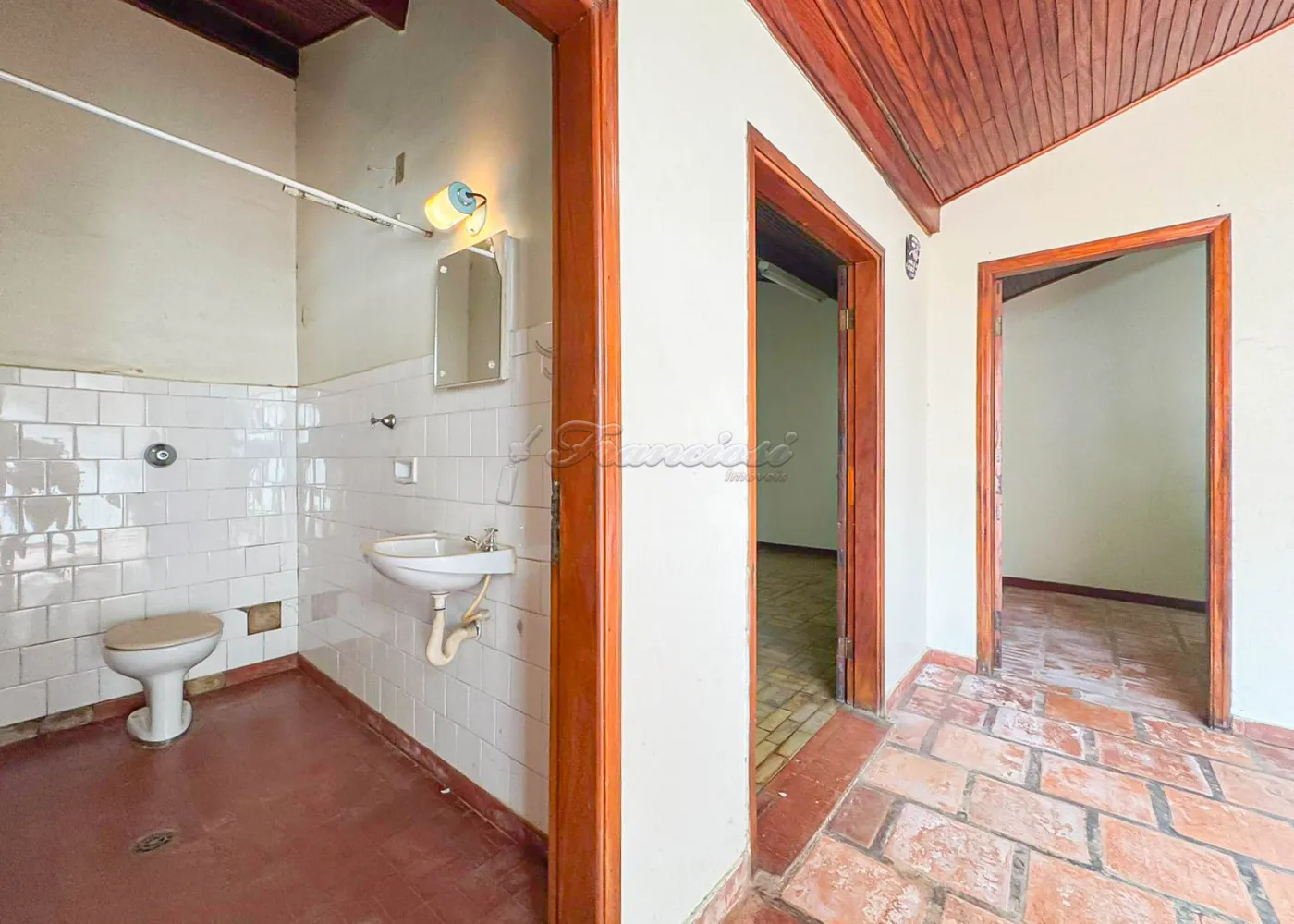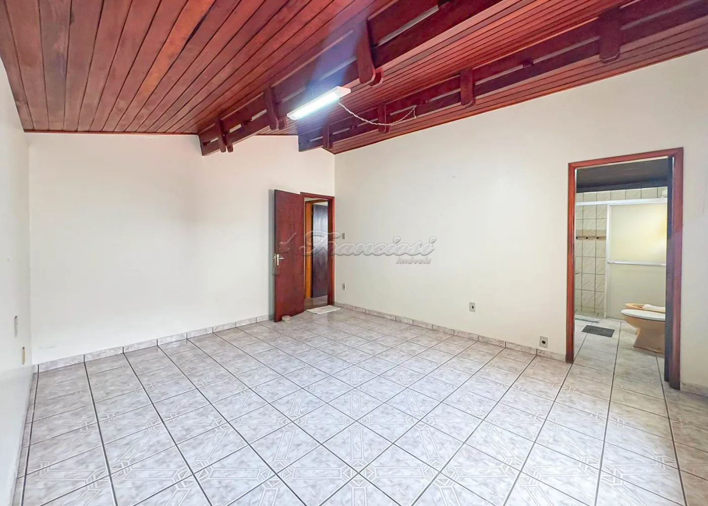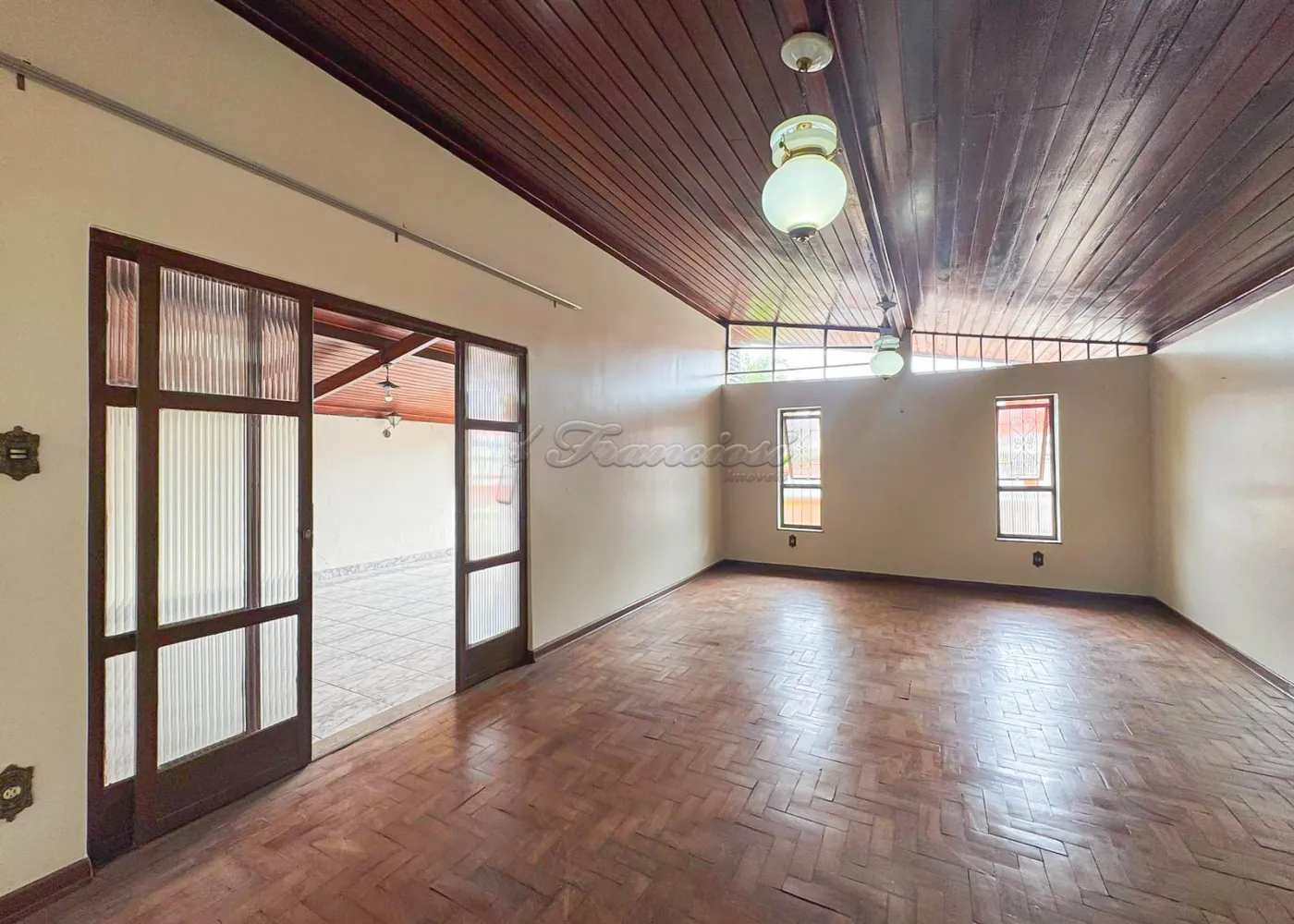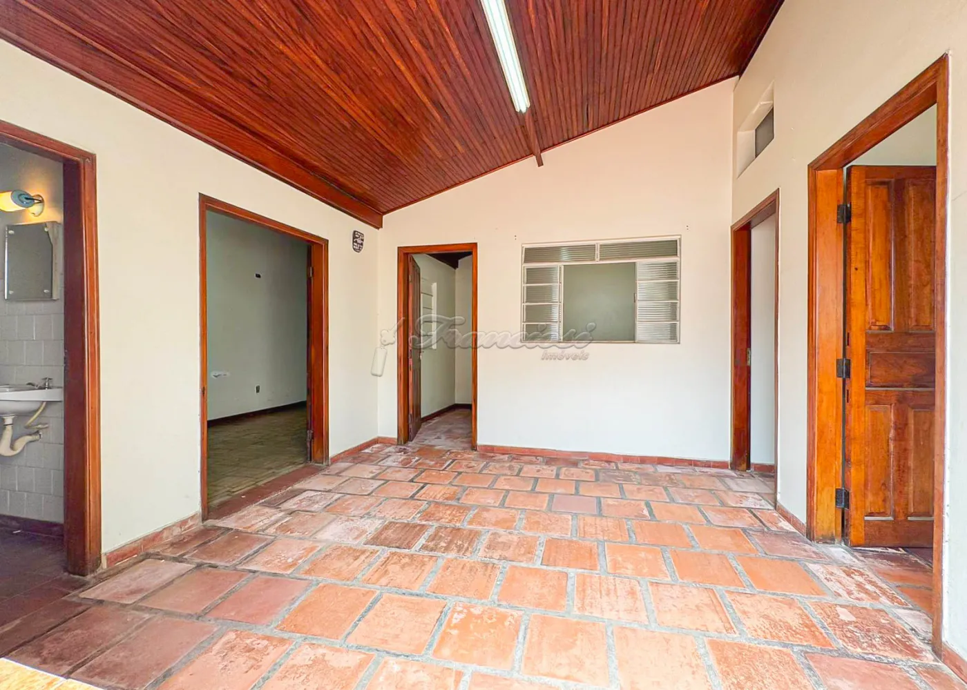 Acabamento: forro de madeira e piso frio.