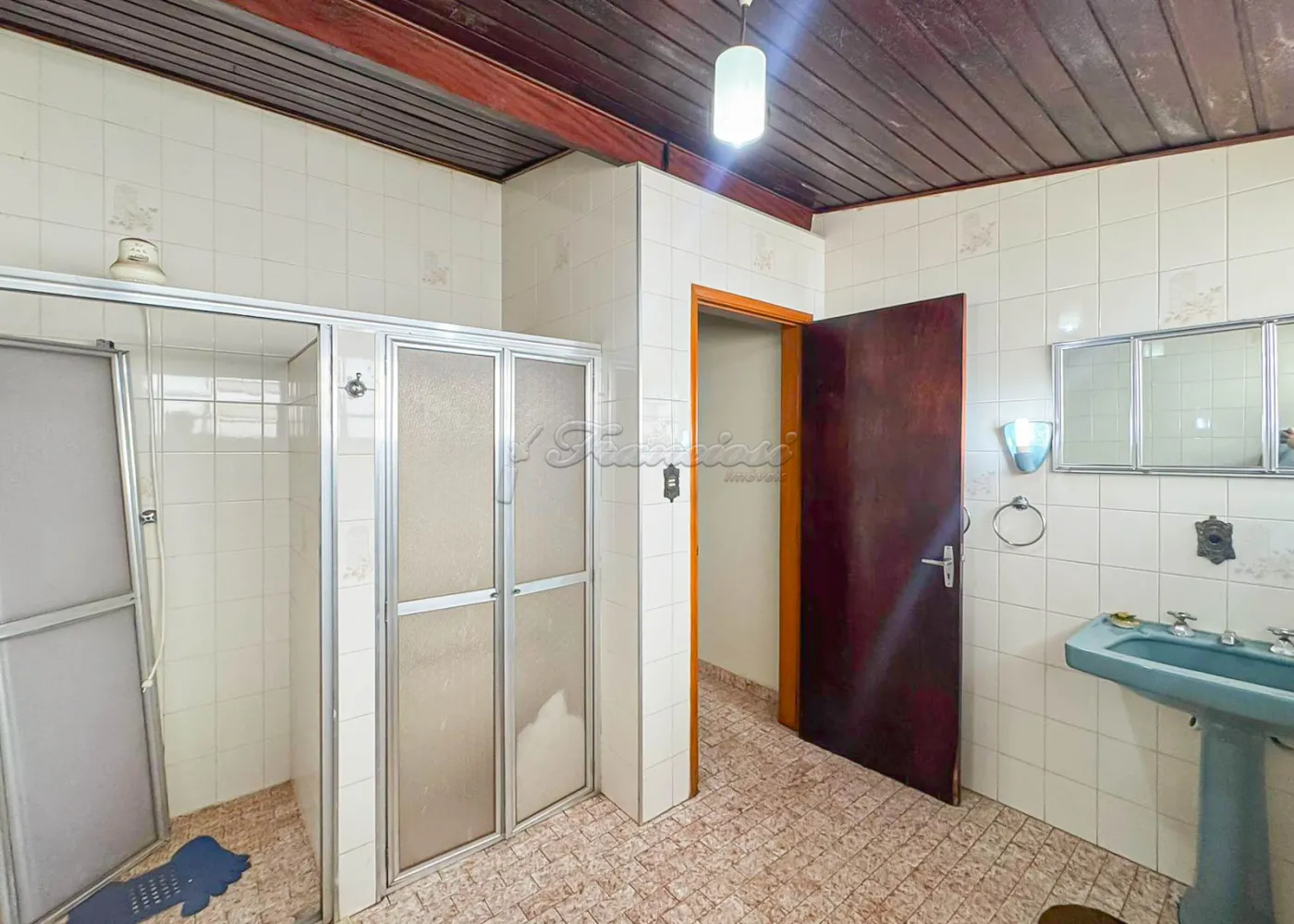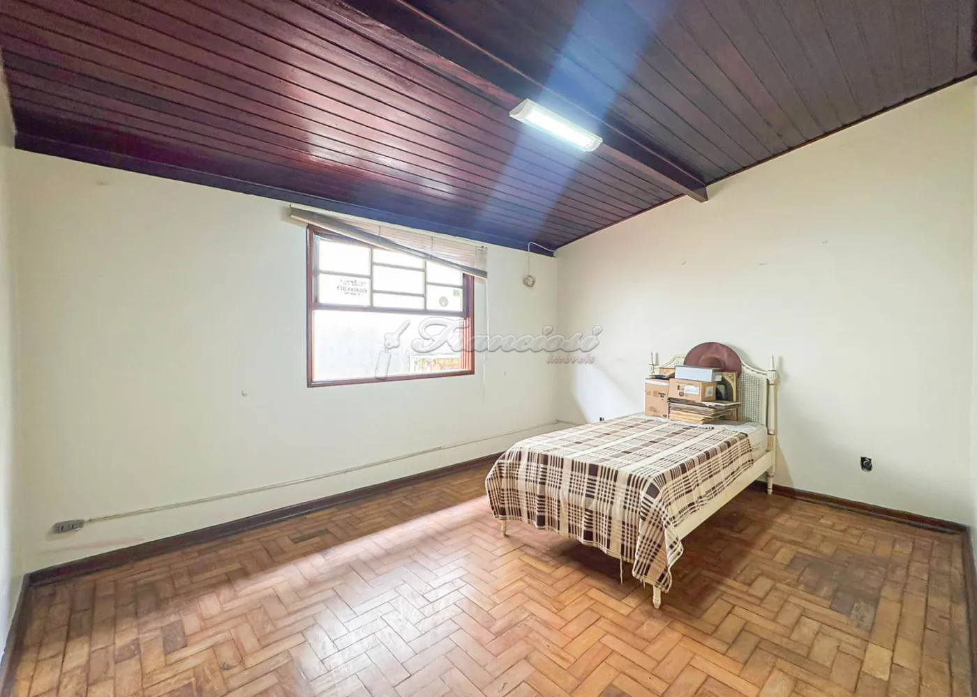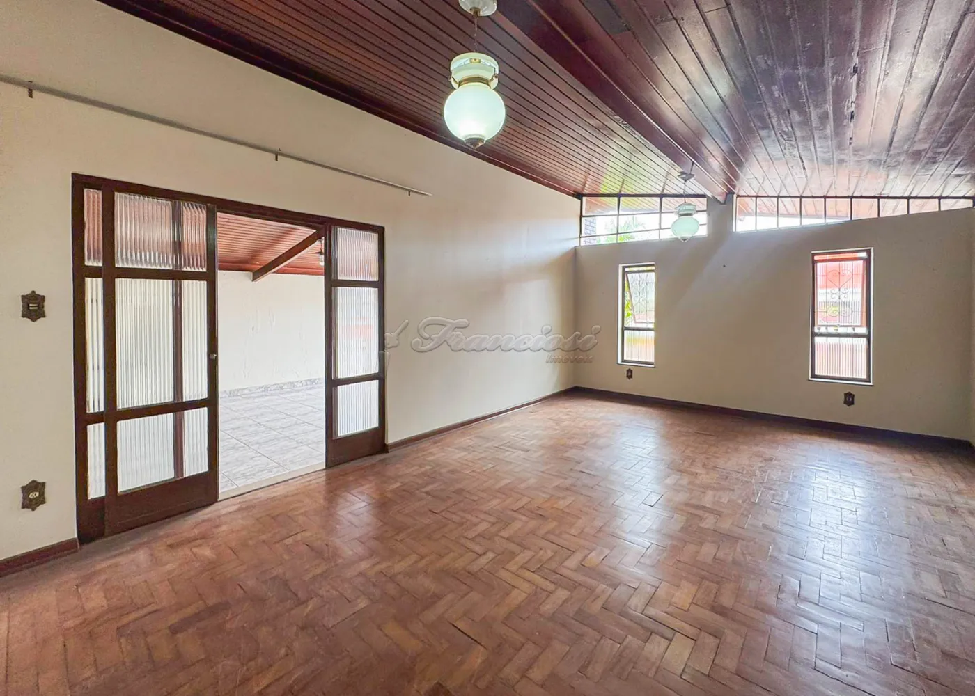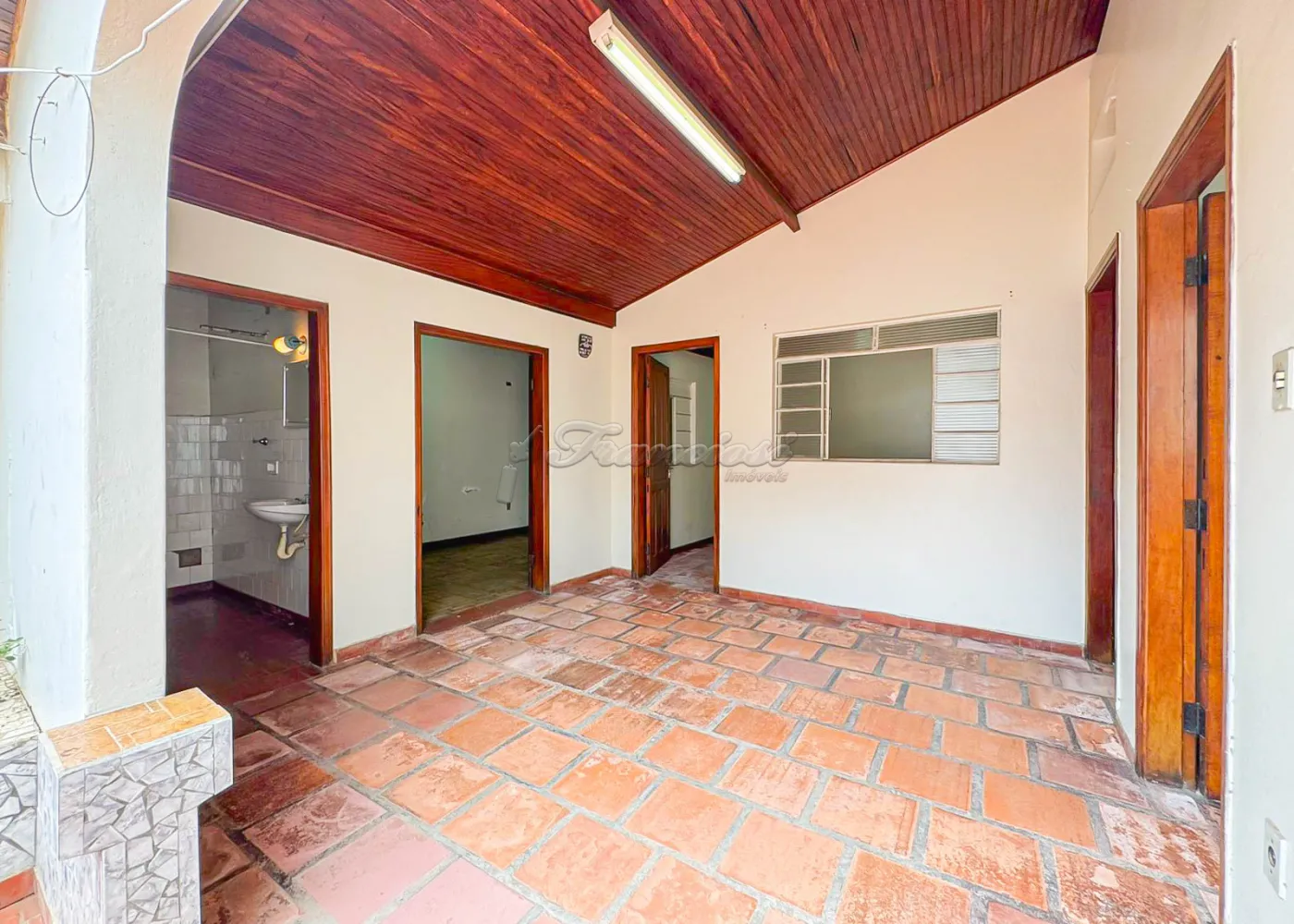 Acabamento: forro de madeira e piso frio.
