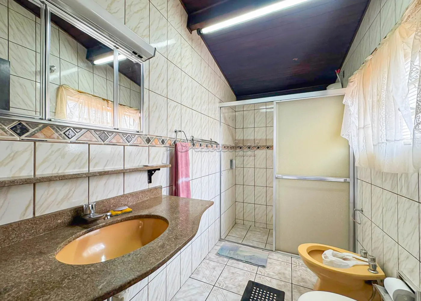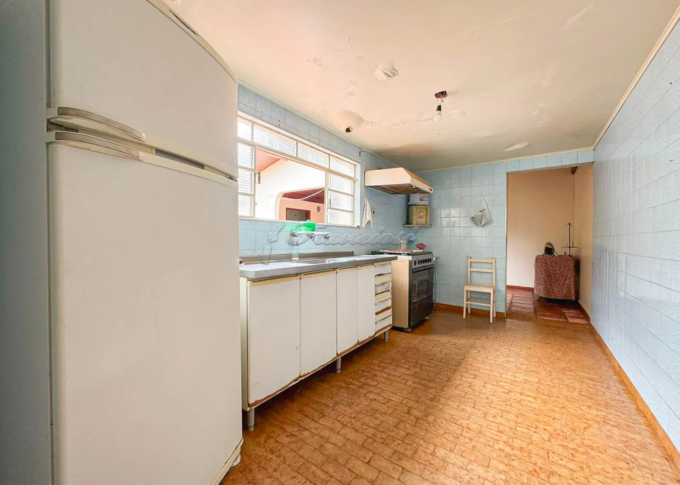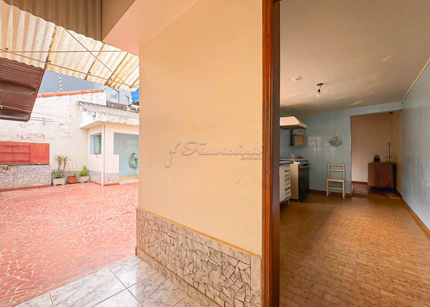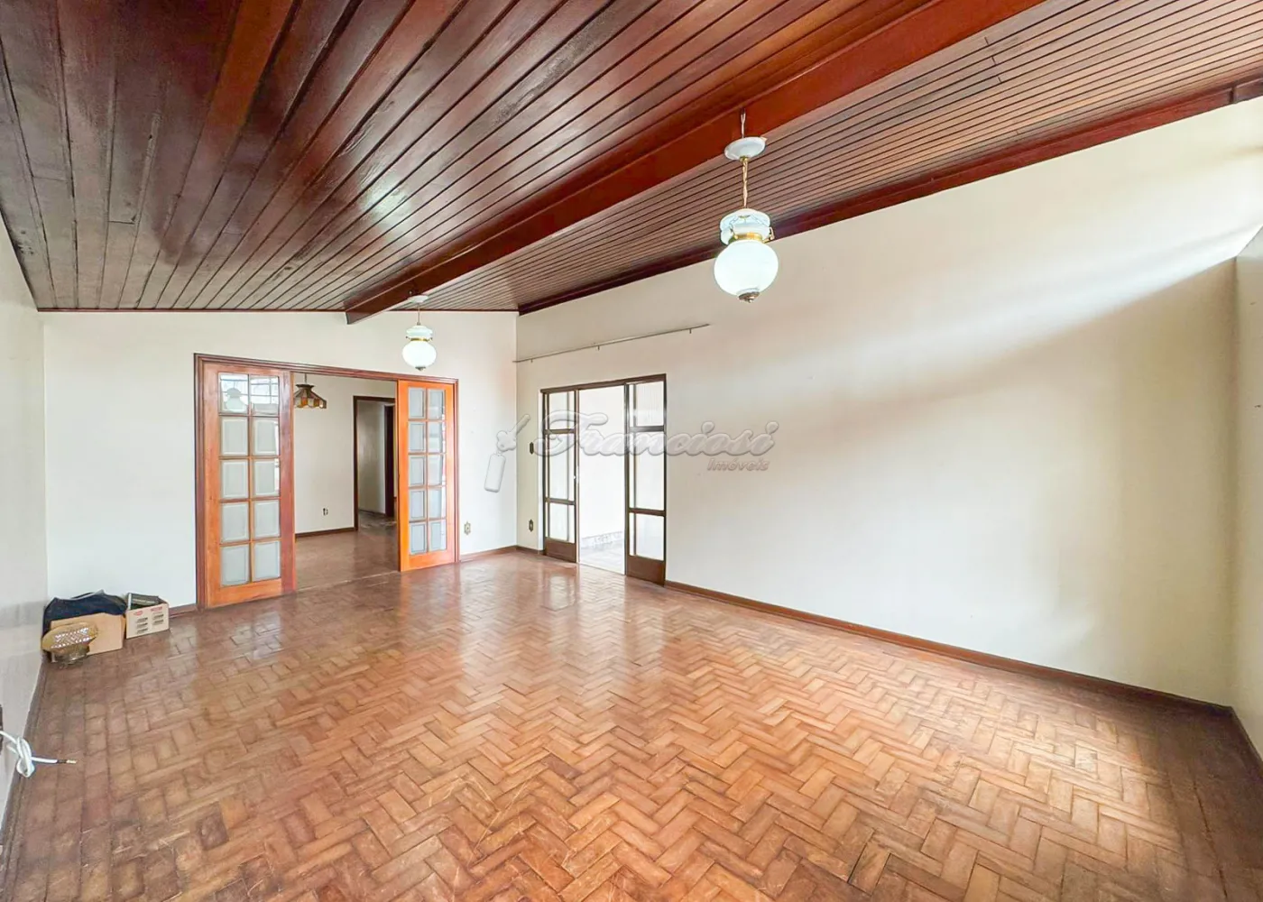 Acabamento: forro de madeira e piso frio.
