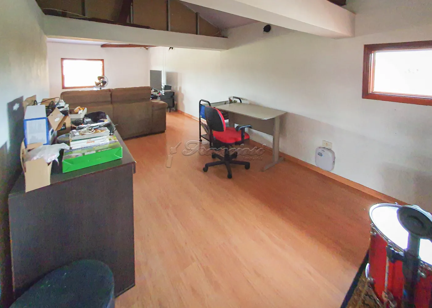 Sobrado com 03 dormitório sendo 01 suíte, sala de estar, sala de jantar, cozinha, banheiro social, lavanderia, canil, edícula com 01 suíte e espaço gourmet com churrasqueira e fogão à lenha, mezanino no piso superior (stúdio), com aproximadamente 60,00m² e garagem coberta para 02 veículos.