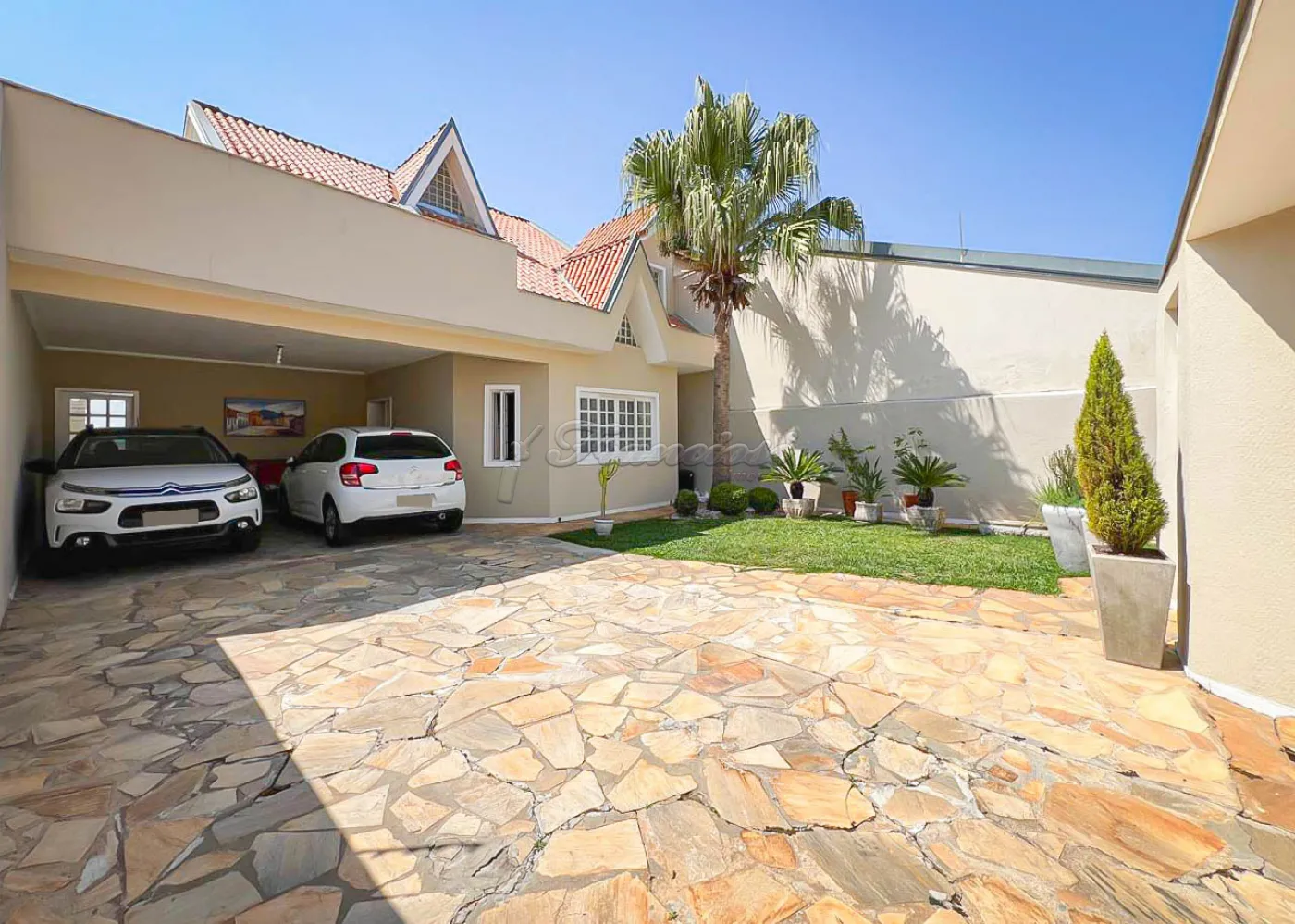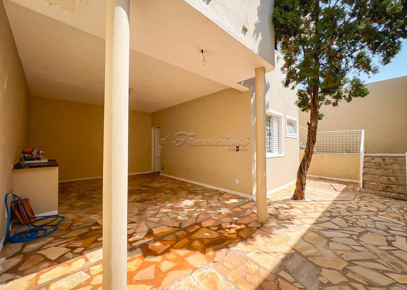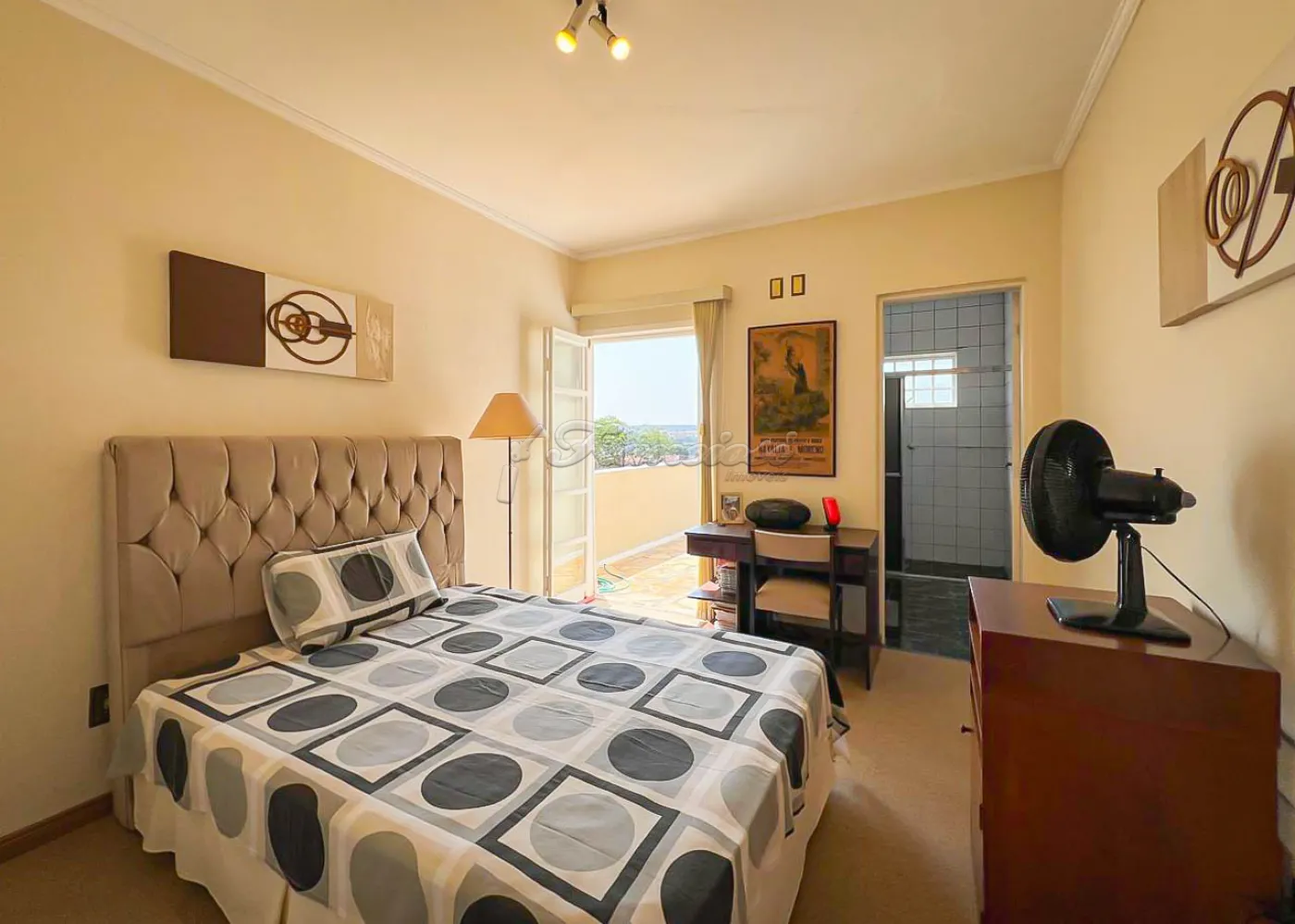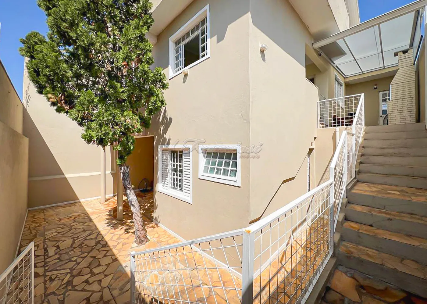 Sobrado localizado no Jardim Alvorada. No térreo, o imóvel dispõe de 01 dormitório, sendo suíte com varanda, sala de TV, sala de jantar, lavabo e lavanderia coberta. O quintal oferece churrasqueira, despensa e banheiro externo. A garagem é ampla, com 02 vagas cobertas e 02 descobertas. No andar superior, encontram-se 02 dormitórios suítes com varandas e um mezanino. O imóvel conta com portão eletrônico, acabamento em laje, piso frio, carpete e detalhes em pedra São Tomé.