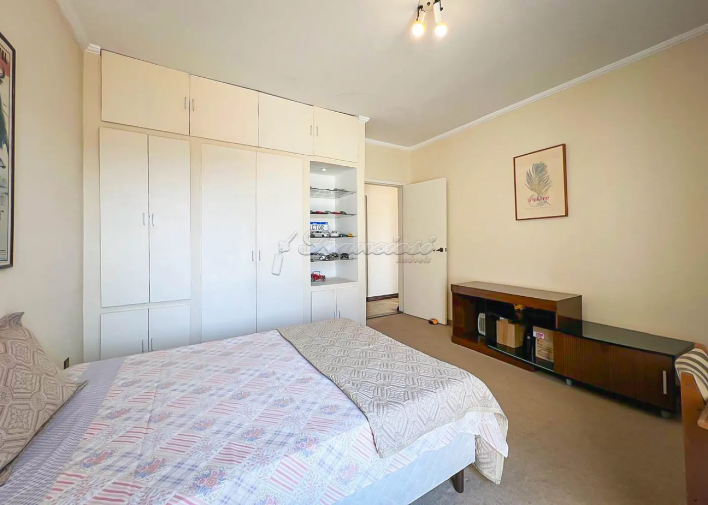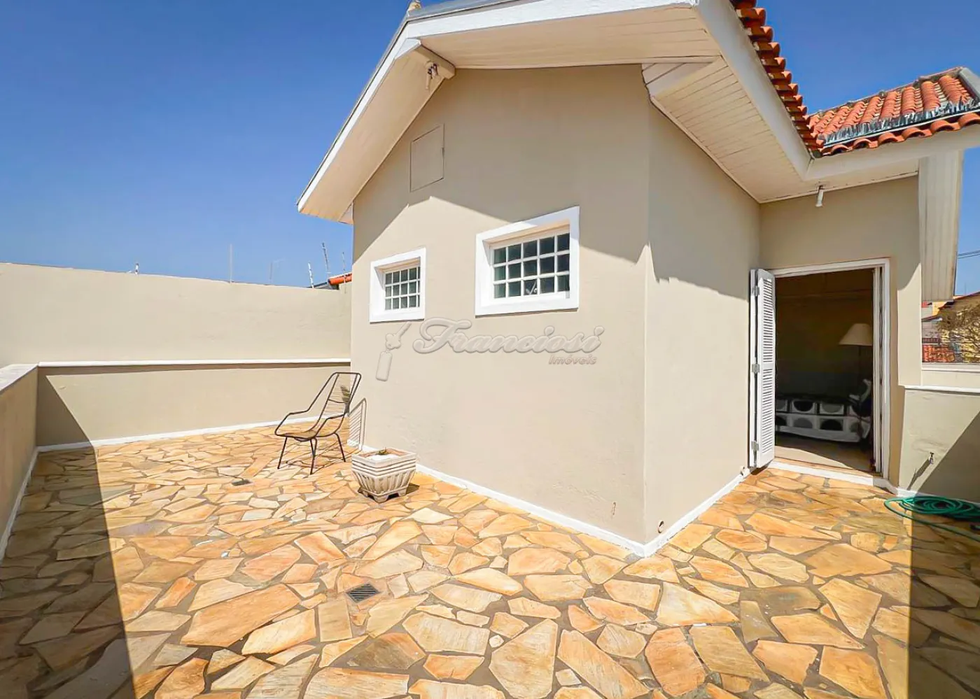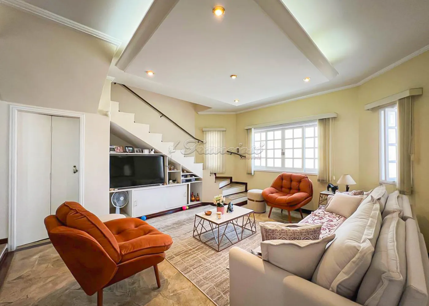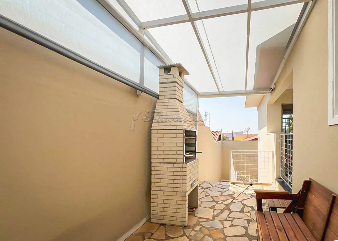 Sobrado localizado no Jardim Alvorada. No térreo, o imóvel dispõe de 01 dormitório, sendo suíte com varanda, sala de TV, sala de jantar, lavabo e lavanderia coberta. O quintal oferece churrasqueira, despensa e banheiro externo. A garagem é ampla, com 02 vagas cobertas e 02 descobertas. No andar superior, encontram-se 02 dormitórios suítes com varandas e um mezanino. O imóvel conta com portão eletrônico, acabamento em laje, piso frio, carpete e detalhes em pedra São Tomé.