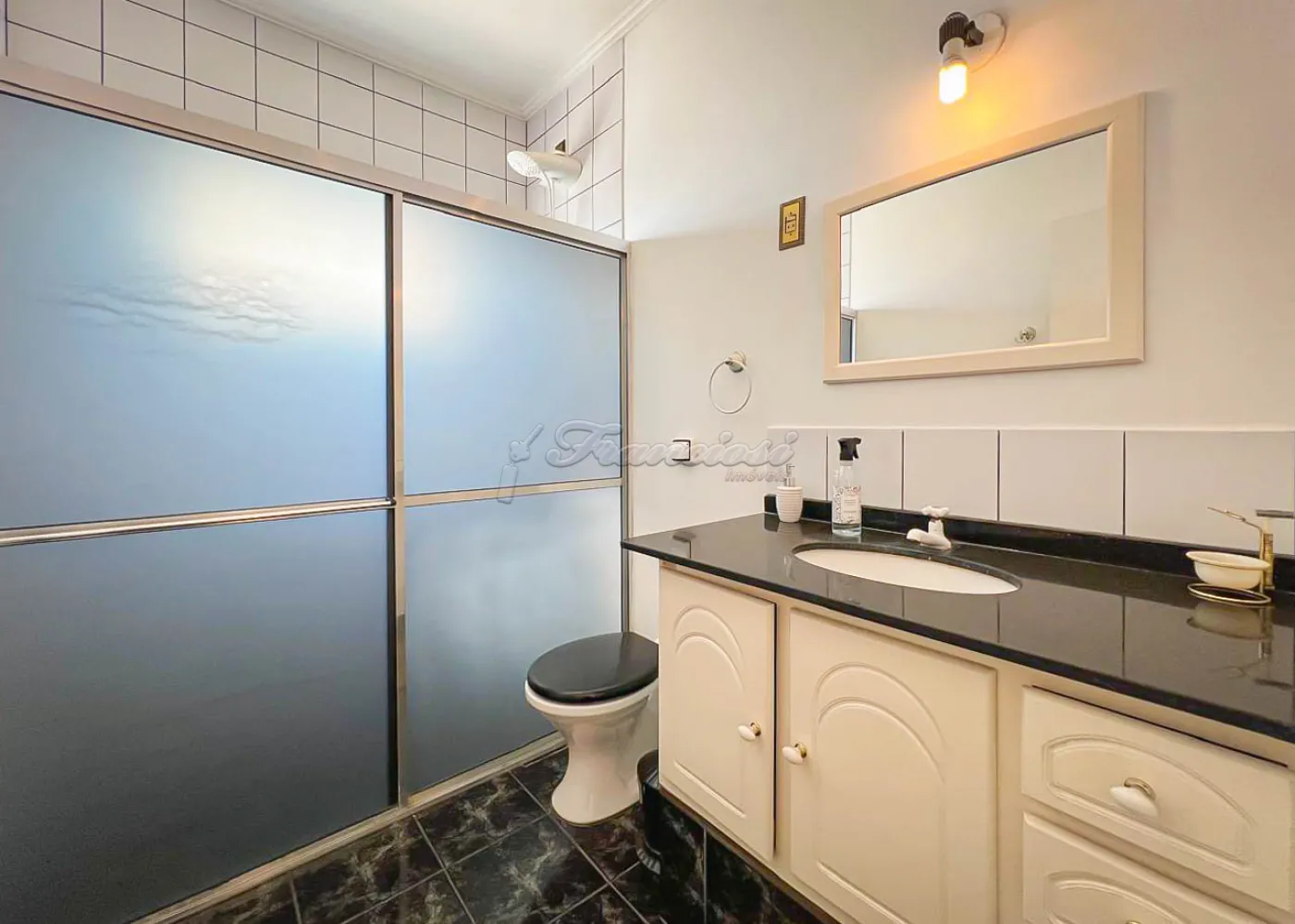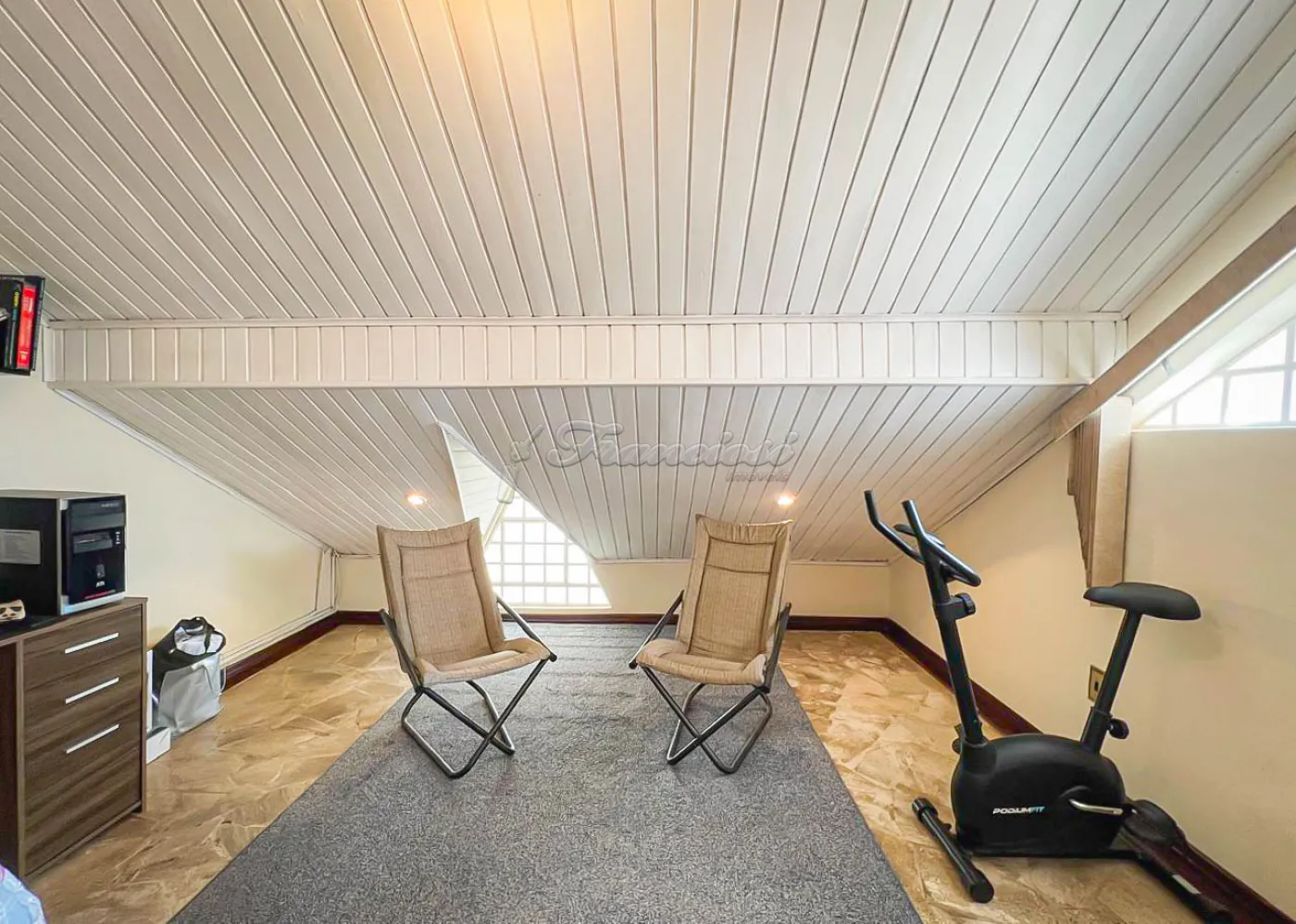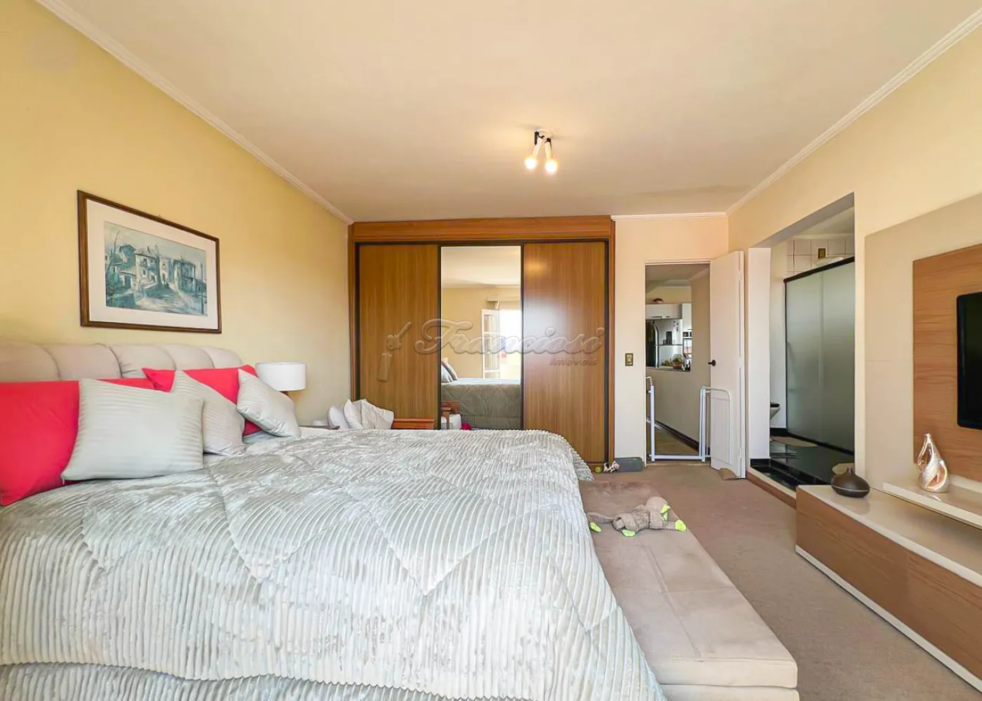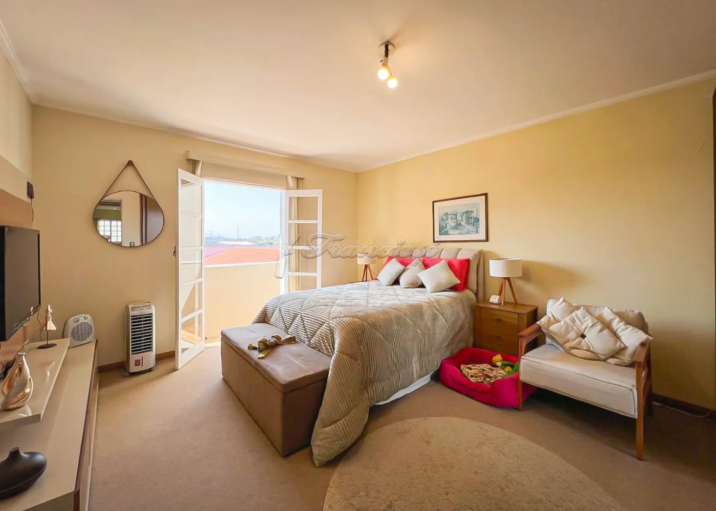 Sobrado localizado no Jardim Alvorada. No térreo, o imóvel dispõe de 01 dormitório, sendo suíte com varanda, sala de TV, sala de jantar, lavabo e lavanderia coberta. O quintal oferece churrasqueira, despensa e banheiro externo. A garagem é ampla, com 02 vagas cobertas e 02 descobertas. No andar superior, encontram-se 02 dormitórios suítes com varandas e um mezanino. O imóvel conta com portão eletrônico, acabamento em laje, piso frio, carpete e detalhes em pedra São Tomé.