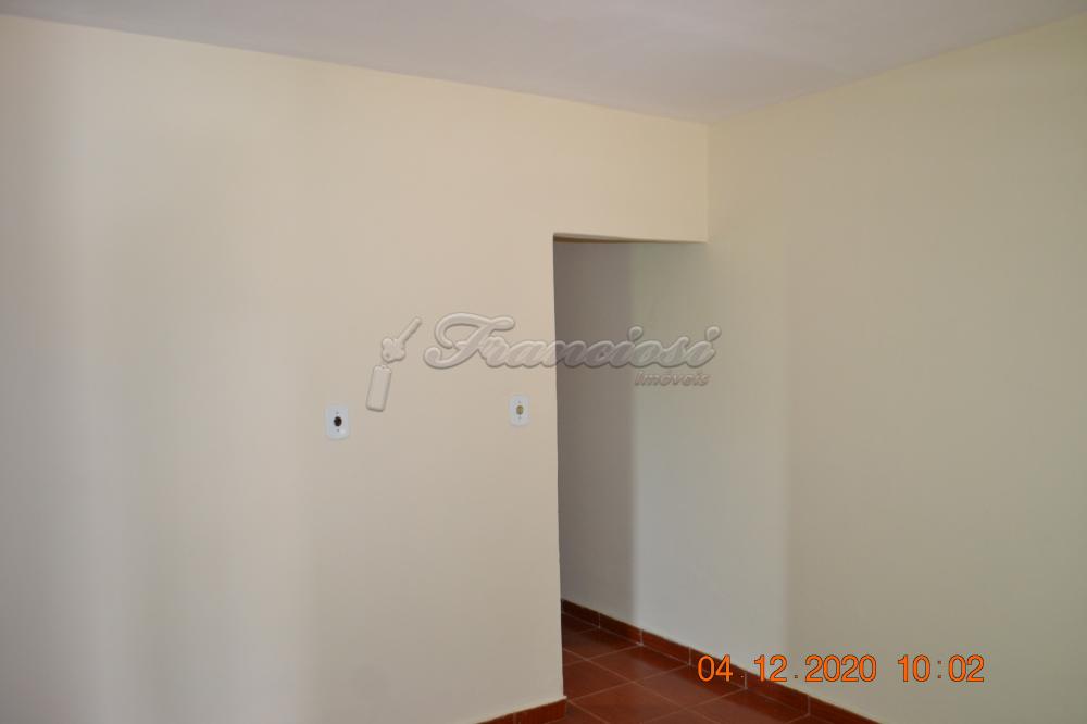Casa com 3 dormitórios, sala de estar, cozinha, 1 banheiro social, área de serviço, quintal, 1 cômodo externo e garagem para 2 carros.