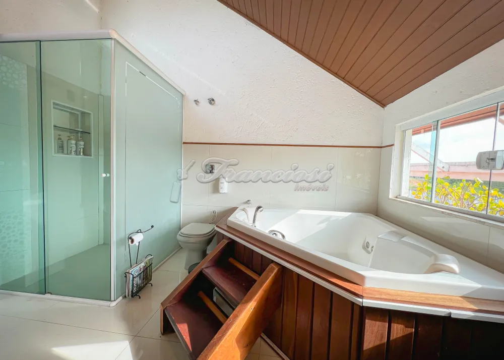 Casa com 3 dormitórios sendo 2 suítes, sala de estar, sala de jantar, 1 lavabo, cozinha com móveis planejados, 1 banheiro social, lavanderia coberta, despensa, coradouro, quintal grande, canil, piscina com cascata e bar molhado, ducha, área gourmet com churrasqueiras e 2 banheiros, 1 lavabo, varanda, banheira com hidromassagem.