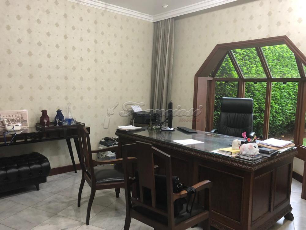 Casa com 05 suítes, 01 lavabo, 01 banheiro, área gourmet, sala com lareira, cozinha, piscina, forno pizza, pergolado coberto, sala de TV, sala de jantar, despensa para empregada, escritório, lavabo e 04 vagas de garagem.