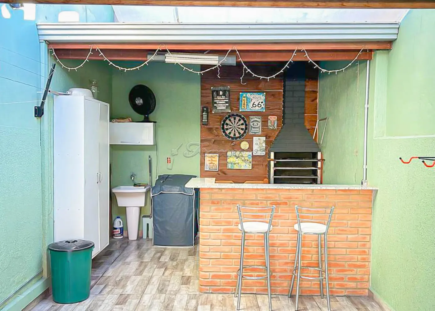 Casa com 02 dormitórios,(sendo 1 suite), sala de estar, cozinha americana, 01 banheiro social, área de serviço, quintal, espaço gourmet com churrasqueira e garagem para 02 carros com portão eletrônico.