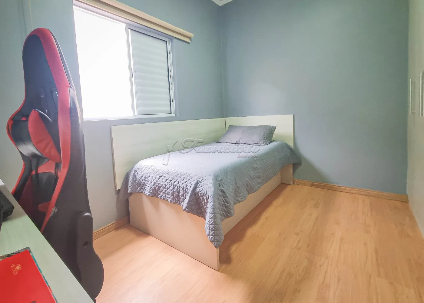 Acabamento: laje, piso laminado (sala e quartos), piso frio (cozinha, banheiros e quintal).